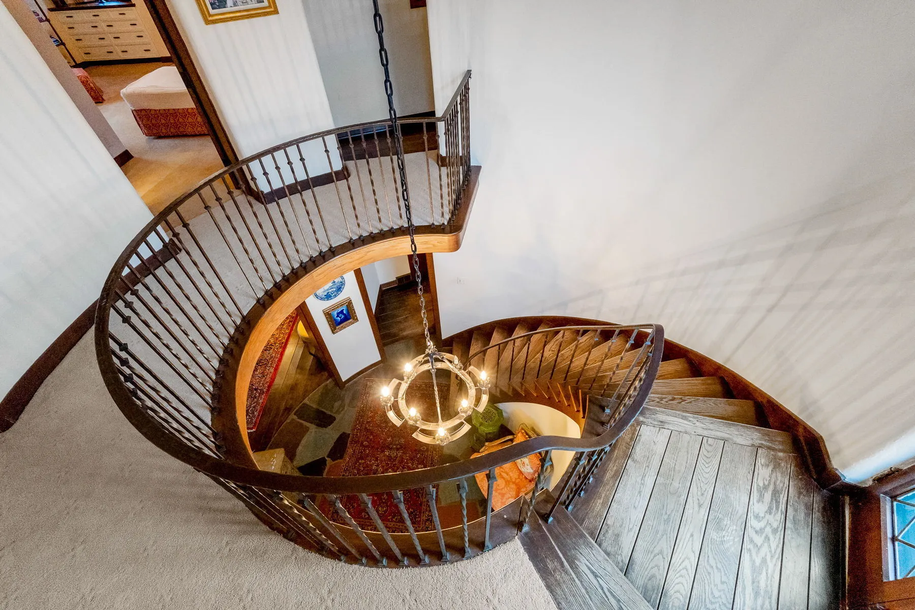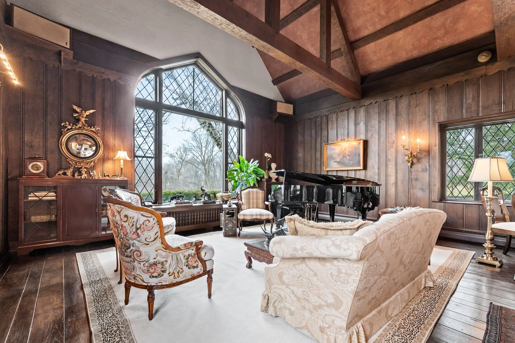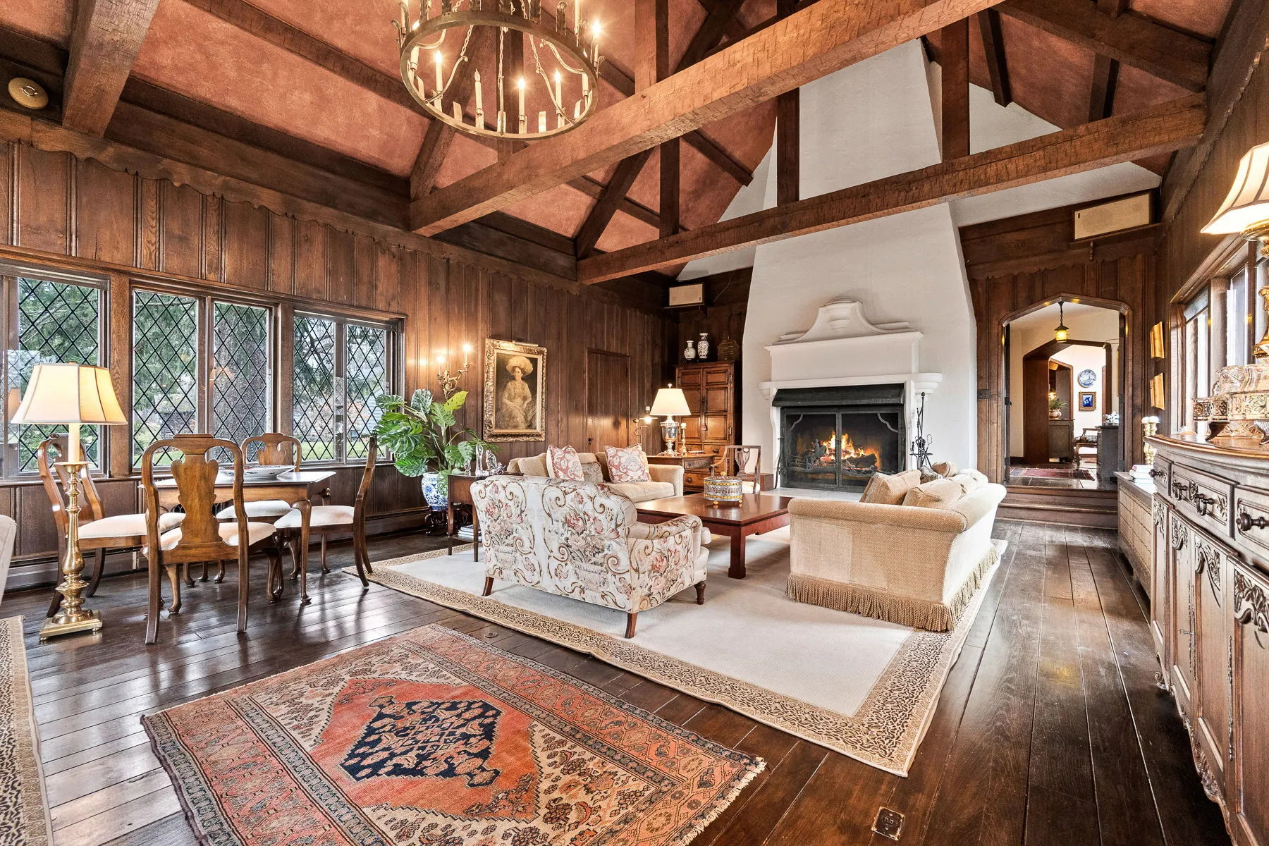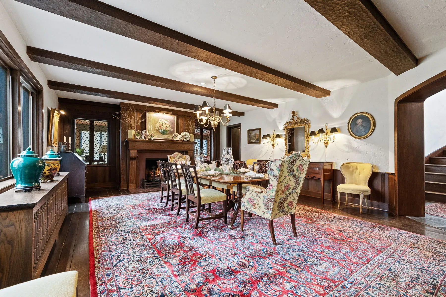 Covington Manor Farms is an elegant luxury estate and distinctive country home seated on over 63 acres of prestigious Southwest Fort Wayne landscape. A 6,846 sqft. English Tudor home sits at the end of a long tree-lined drive just beyond two ponds. Endless possibilities await a new owner, as the property also includes a workshop/three car garage in addition to the attached 2 car, horse arena and stables, a separate business office and a party barn. The historic stone-wrapped landmark home sits secluded atop a hill with pristine landscaping. The grand 2 story entry features a circular stairwell that wraps up towards the Juliet window on the front of the home. Entertainment awaits in the elegant and spacious living room, with soaring ceilings, hand-hewn oak beams with timber native to the property, and a 2 story English stuccoed fireplace, which tapers as it extends upward. All of your guests will find ample room to feast in the large formal dining room with fireplace. The cozy library on the main level also features a fireplace and built-ins. The kitchen features Imperial Danby honed marble countertops, built-in Sub-Zero freezer and refrigerator, butler’s pantry with wet bar, and a dine-in area with windows to take in the morning views outside. On a beautiful day, meals can be cooked and enjoyed in the expansive screened-in porch, with kitchen featuring built-in grill and honed soapstone counters. A home office is located off of the kitchen, as well as a large laundry room and a bath and another half-bath on the main level. Utilize a rec room, exercise room, plus a wine bar and additional kitchen space. The possibilities are truly whatever one can imagine at Covington Manor Farms! Exact duplicates of the White House gates sit at the front of the property. The past location of the historic Fort Wayne charity horse show and multiple on-site weddings, this grand estate is ready for generations of family and friends to explore and enjoy.