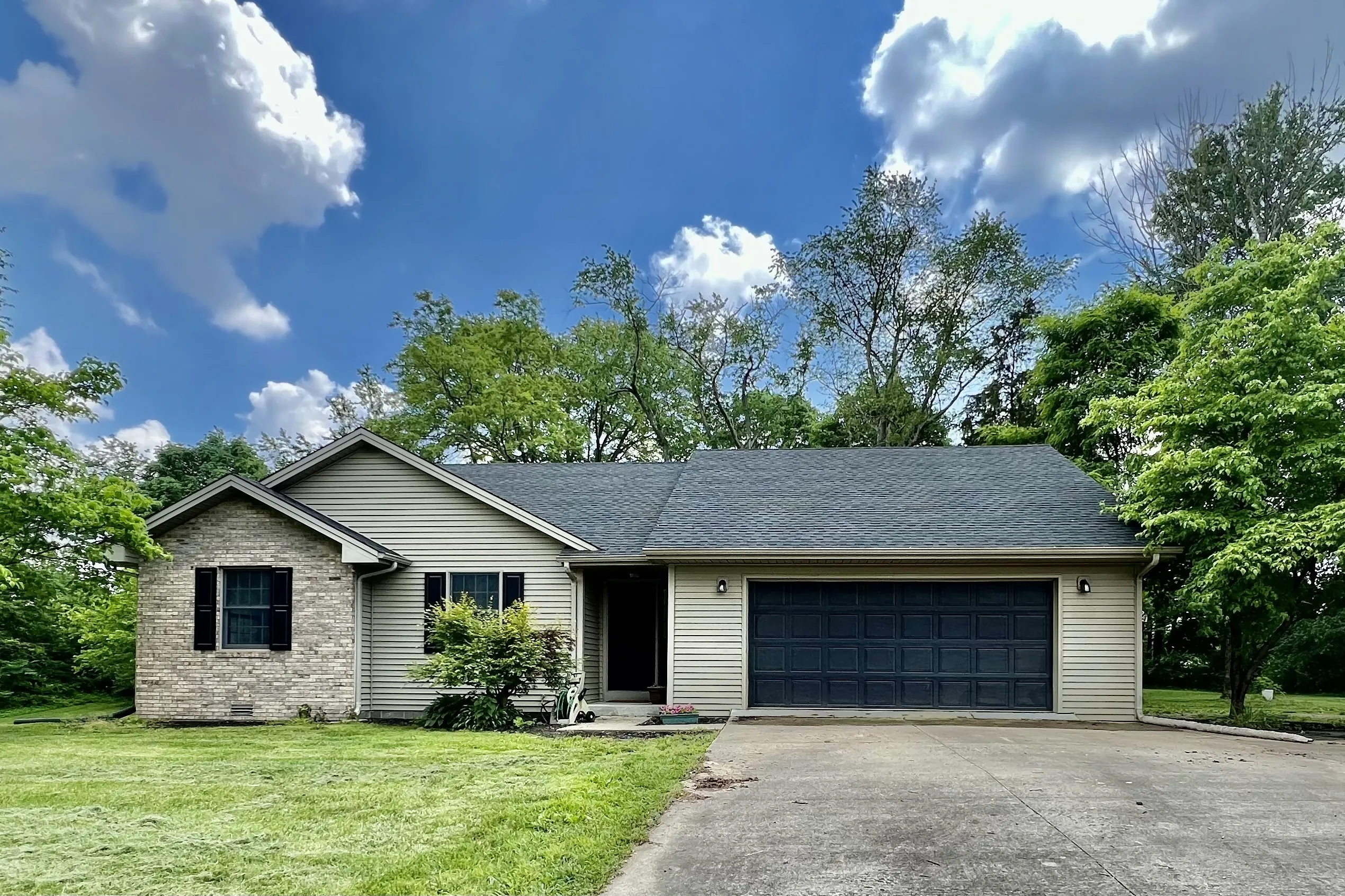 New Roof on this great 3 bedroom 2 bath home on 2 acres located on 100 S just outside of Country Meadows Estates. You will have peace of mind knowing that the HVAC system was replaced in 2023 making this all electric home very affordable to heat and cool. With 1384 total square foot of living space, this home offers great bedroom size, a huge living room, and a cozy kitchen that is open to the dining room. The 2 car garage offers 572 sq feet of space with a pull down attic for extra storage. Mini barn with electric and lean to in the back yard offers lots of possibilities. Come check this one out!!