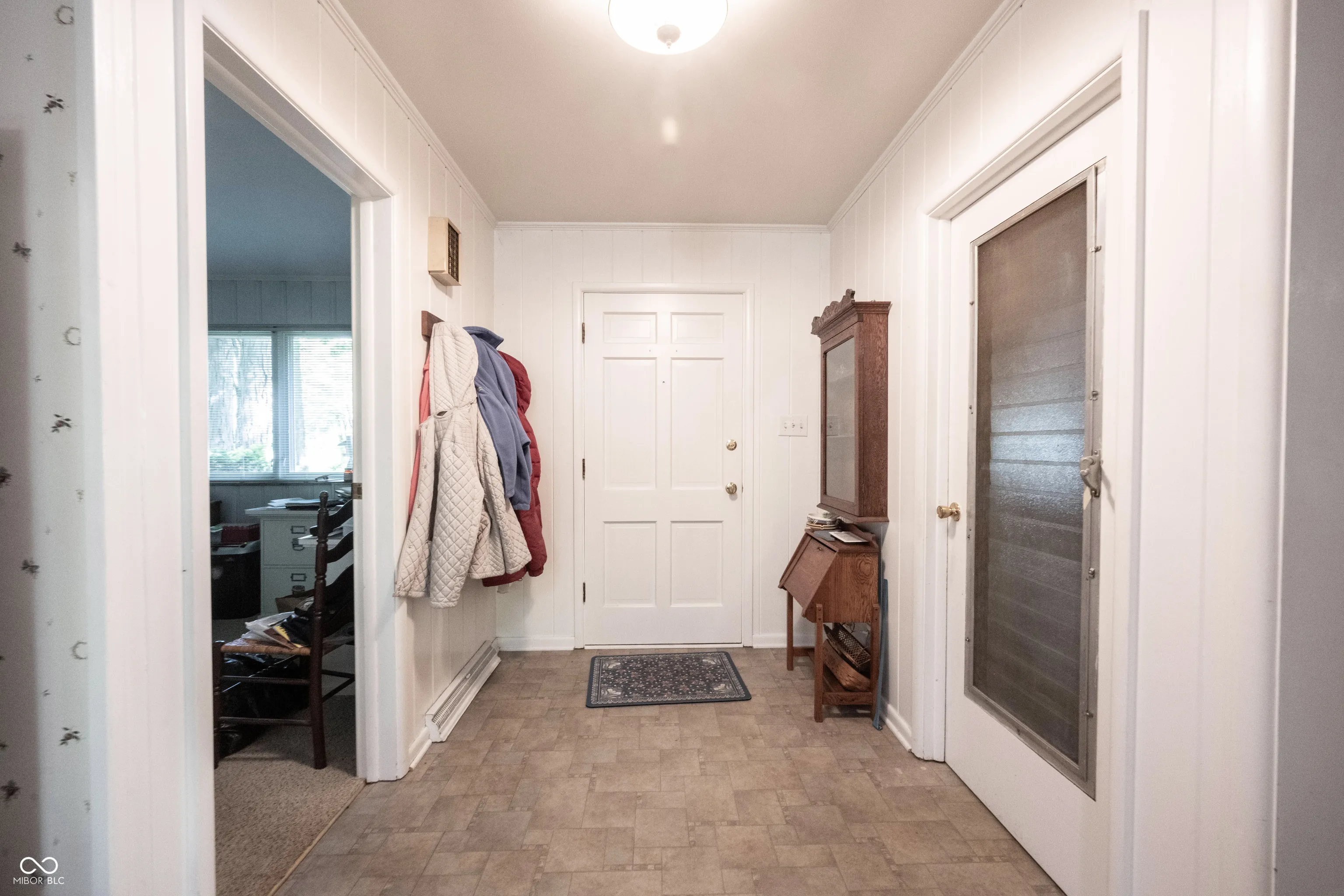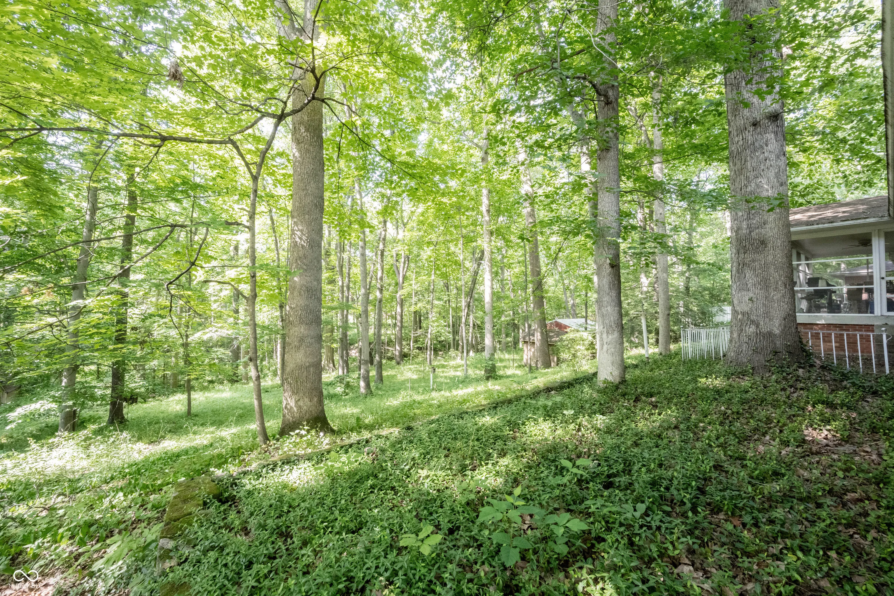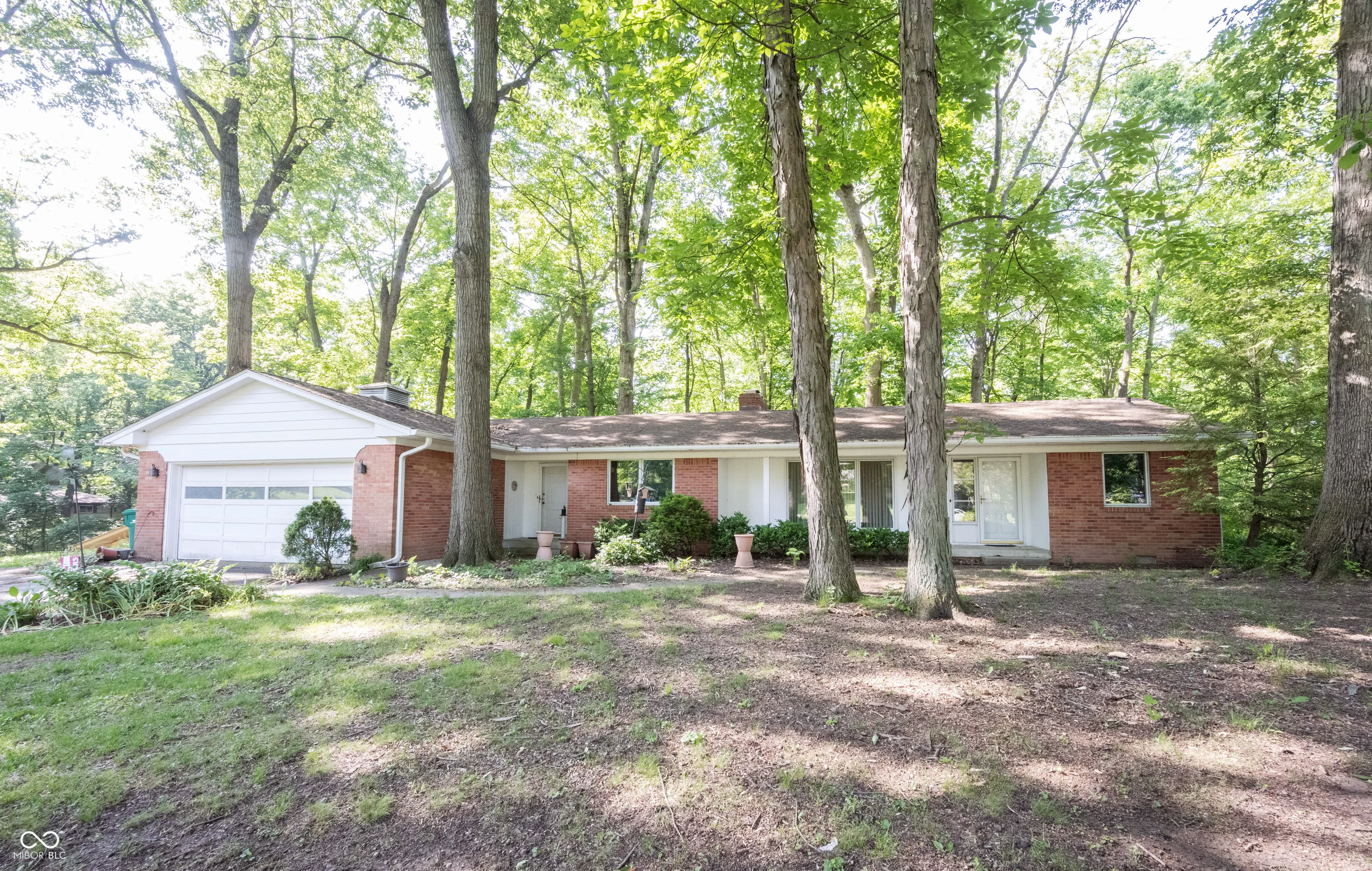 Wow – it’s a nature lover’s dream! This 3 bedroom/2 full bathroom split floorpan ranch features midcentury modern details PLUS a wooded 1 acre lot on a quiet cul-de-sac! The location is everything – minutes to Eagle Creek, Rick’s Boatyard Cafe, Speedway, Clermont, and easy access to I-74/465. Yet even with its convenient location, the home provides a peaceful retreat from the bustle of the city. The kitchen includes quality wood cabinetry, Corian countertops, and an eat-in nook with a built-in corner cabinet to display your treasures. All appliances stay. The large skylight and windows overlooking the lush backyard create a bright, inviting heart of the home. The living room is a serene space that brings the outdoors in thanks to the huge picture window with views of the front yard and the sliding glass doors open to the 18×9 screened porch. Built-in bookcases and cozy fireplace complete the space. The 2 car garage has a place for everything with custom cabinets and two sheds out back for hobbies or extra storage. Washer and dryer stay.