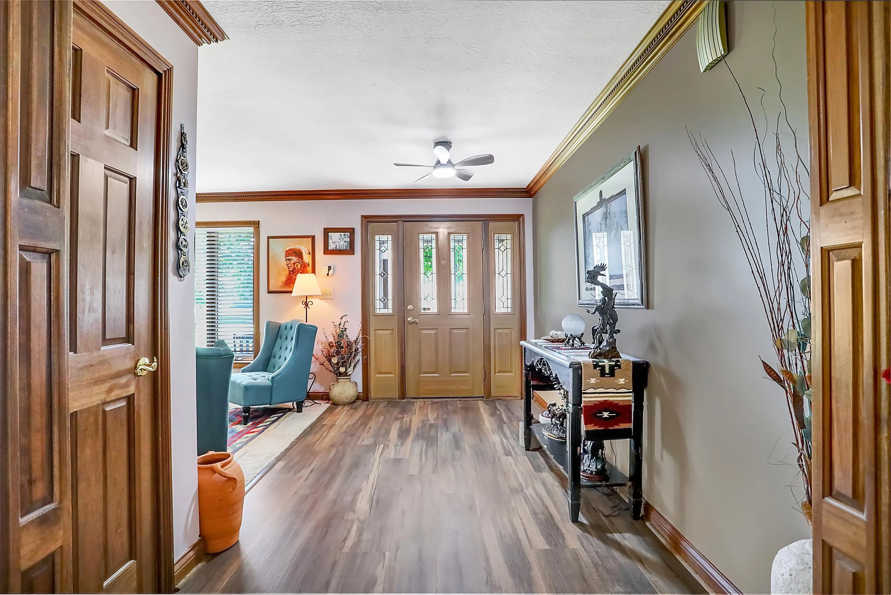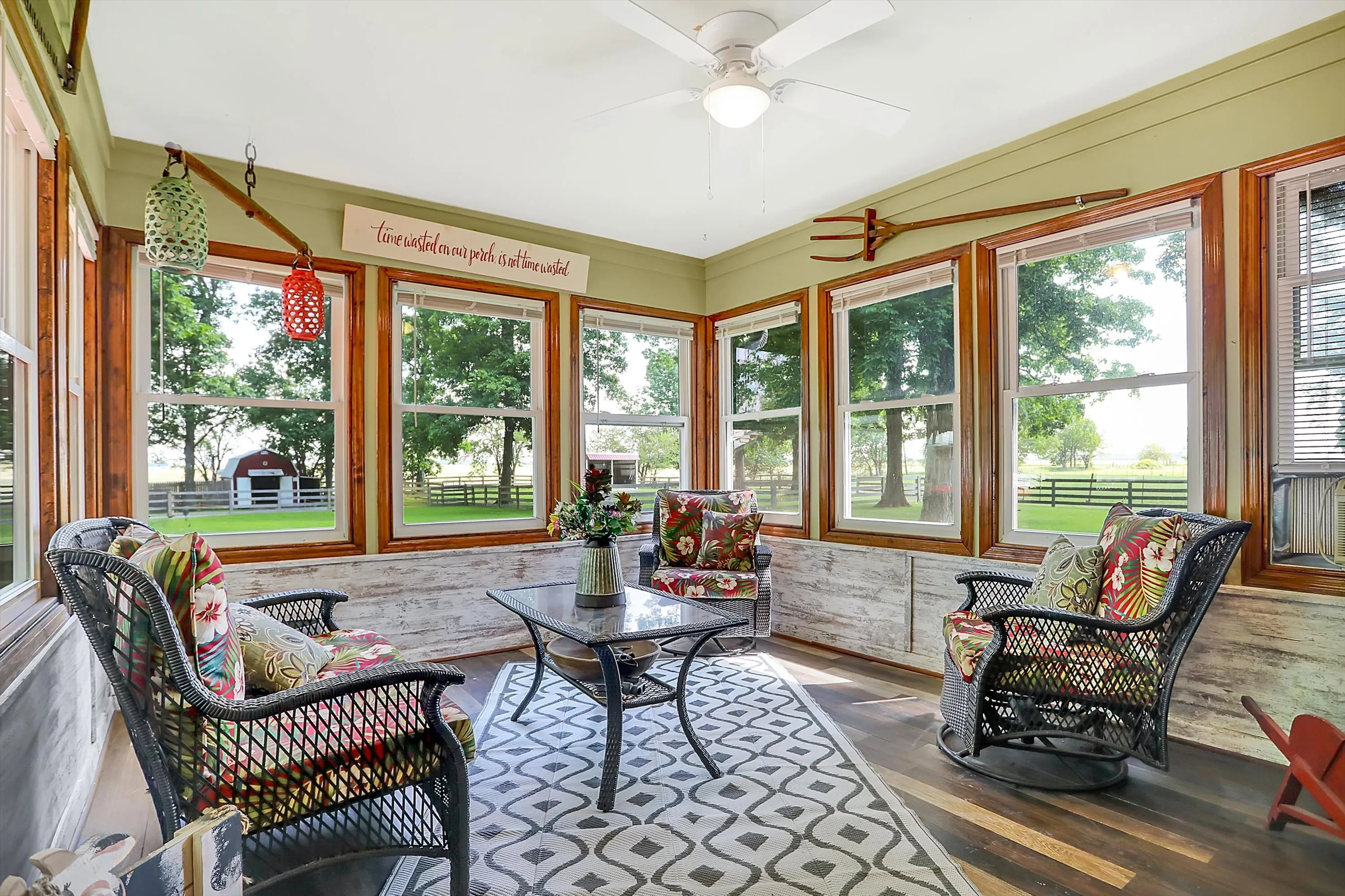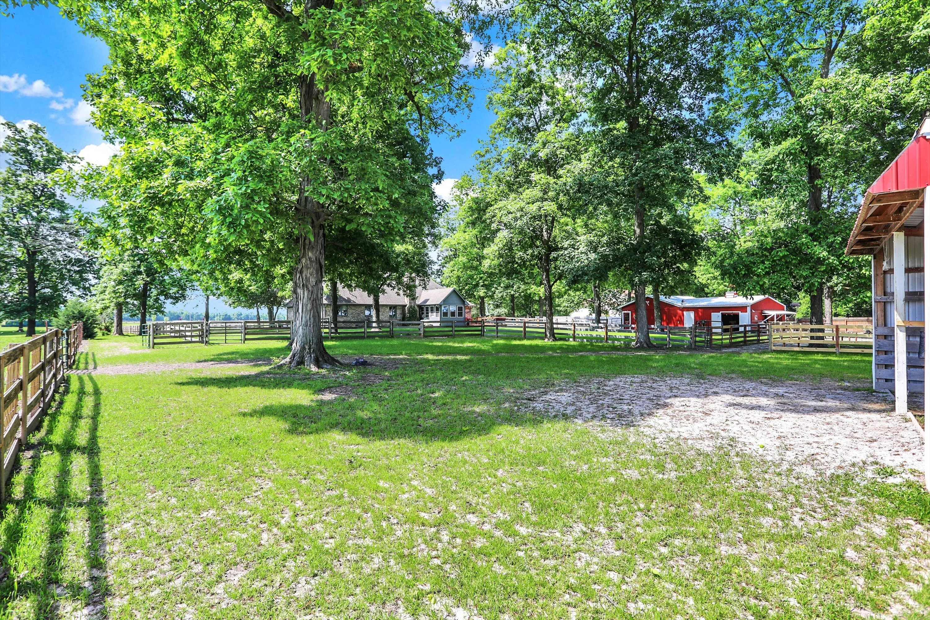 A RARE FIND!! INCREDIBLE CUSTOM BRICK HOME NESTLED ON PARK-LIKE 3.55 ACRES FEATURES STABLE AREA FOR HORSES, GORGEOUS MATURE SHADE TREES, 4+ CAR GARAGE (INCL BOTH 2-CAR ATTACHED & 2.5 CAR DETACHED GARAGES), MINI BARN W/WORKSHOP & RUN-IN SHED W/WATER & ELECTRIC, BEAUTIFUL SURROUNDING HORSE-FARM FENCING + SEPARATE FENCED AREA FOR RV, HORSE TRAILERS, OR BOAT (COMPLETE W/30amp HOOK-UP) & CONVENIENT DOG-WASHING STATION!! You’ll immediately feel at home at this picturesque retreat where serenity & nature abound, horses can enjoy cool shady spaces, & relaxation beckons w/plenty of space for peaceful living, pastimes & hobbies! Beautiful CUSTOM BRICK HOME features spacious SUNROOM & DECK for family gatherings & a FANTASTIC floor plan! Inviting foyer opens to front Living Rm/Office, & enjoy the SPACIOUS Great Rm & cozy gas FP w/gorgeous wood mantle & trim & inviting LARGE country Kitchen w/NEWER APPLIANCES, center island w/seating, built-in desk & Dining area. MAIN-FLOOR PRIMARY BR features beautiful custom octagonal-raised ceiling w/gorgeous trim & ceiling fan/light, ensuite bath w/dual sinks, relaxing garden tub, separate shower w/stunning newer tile, & walk-in closet. Two additional MAIN-FLOOR bedrooms, each w/ceiling fan/lights, are freshly painted w/newer accent walls & beautiful wood trim work + 2nd full bath has newly tiled flooring & updated painting. UPSTAIRS, an ENORMOUS BONUS ROOM/LOFT w/walk-in closet is ideal DEN/OFFICE, HOBBY Rm/PLAY Rm, or REC/EXERCISE Rm or LARGE 4TH BR PLUS ADDITIONAL HUGE WALK-IN 20×14 wood-floored attic space for storage! MANY UPDATES /IMPROVEMENTS include newer countertops in Laundry Rm, NEWER HVAC system, appliances, wood laminate flooring in Kitchen, NEWER carpeting in GR, updated light fixtures, camera, & MUCH MORE! A DREAM 3.5+ ACRE SETTING WITH GORGEOUS MATURE SHADE TREES & SCENIC VIEWS SEAMLESSLY BLENDS BEAUTY, COMFORT, CONVENIENCE, & SERENITY. CALL TODAY ~YOU WON’T WANT TO MISS THIS OPPORTUNITY! WELCOME HOME!