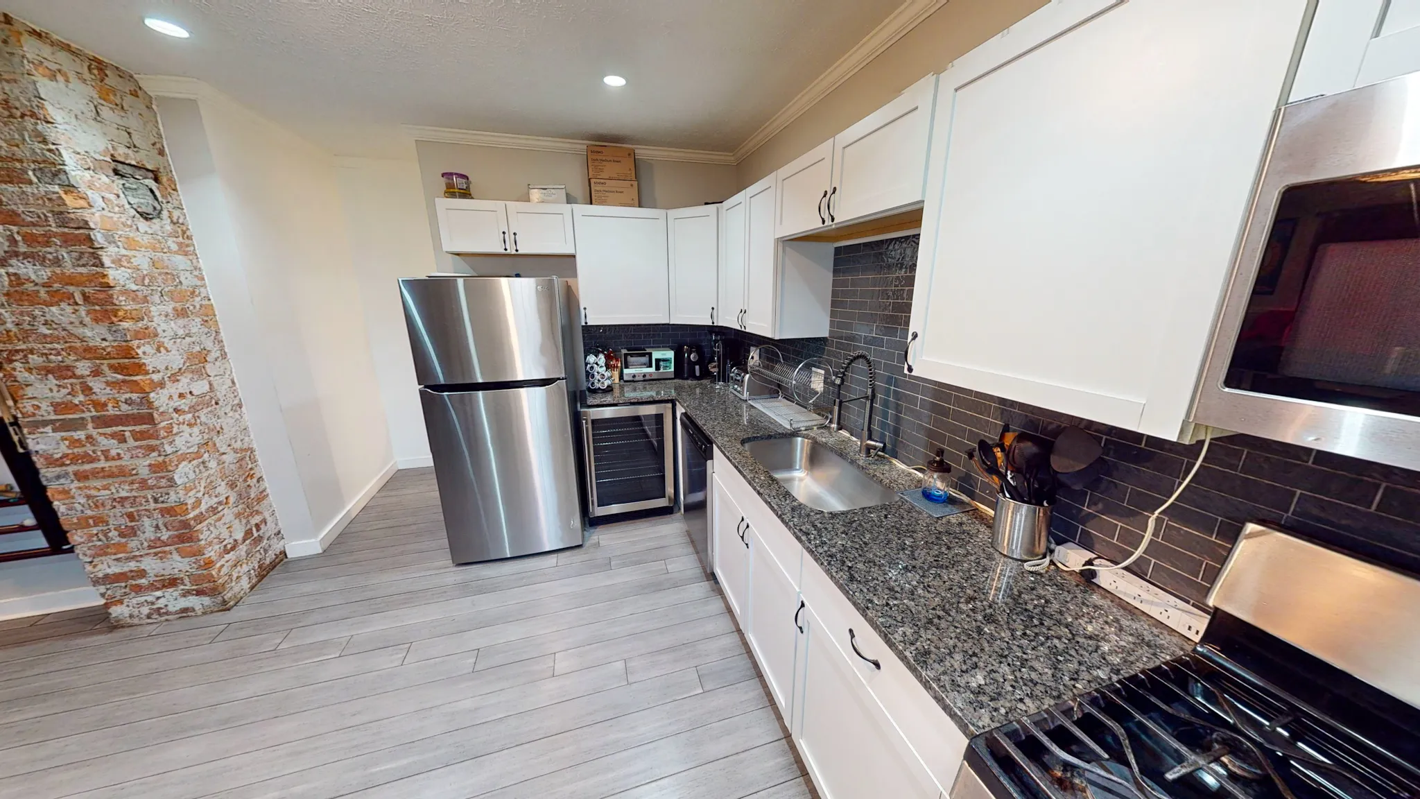 Beautifully renovated home in a great upcoming area, tons of remodeling being done in the area! Everything in this home has been recently updated. The roof, HVAC, hardie board siding, hot water heater, and flooring are all 3 years young! Home comes with stainless steel appliances and a lovely wine fridge. Enjoy the beautiful granite countertops this home has to offer! This home features 3 bedrooms. 2 upstairs, one of which has a spacious walk-in closet, and one downstairs. The home has a full bathroom upstairs and a half bathroom on the main floor. Downstairs you will also find a spacious laundry room! Home comes fully furnished! Come see the charm this home has to offer!