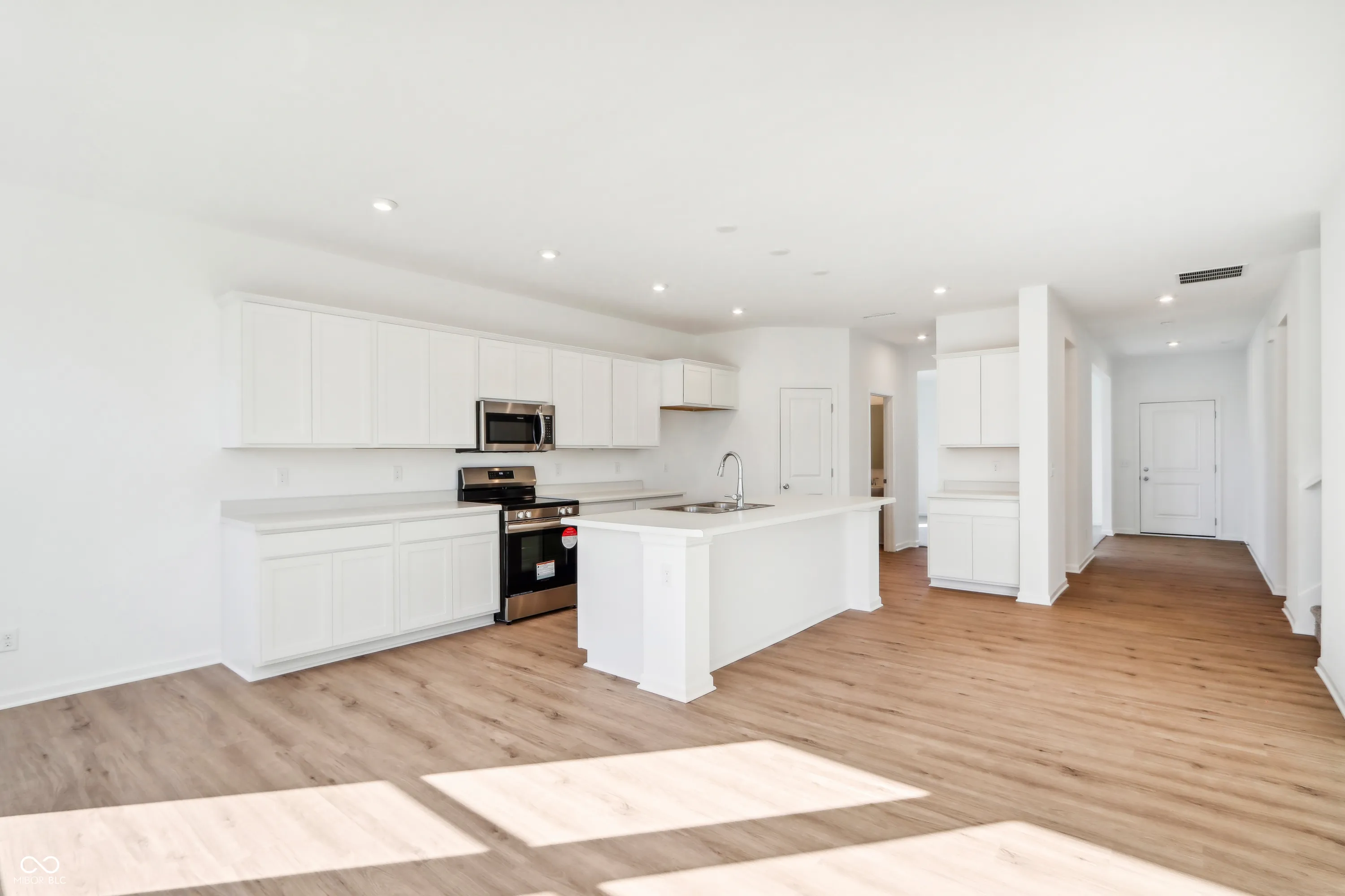 MLS# 21980956 Built by Taylor Morrison, Ready Now – Brand new Legacy 3040 in The Bevy! This Italianate-style elevation features a covered front porch that warmly welcomes you inside. The open-concept main floor is perfect for entertaining, with a great room flowing into the kitchen and breakfast room. The chef-inspired kitchen boasts ample cabinet space, a large center island, a stainless-steel appliance package, and a walk-in pantry. A secluded guest room is conveniently located on the main floor off the garage entry. The main floor flex room can be tailored to your needs. Enjoy LVP flooring throughout the main living areas. Upstairs, a cozy loft is perfect for movie nights. The primary bedroom features a luxurious bath with a dual sink vanity, a tiled shower, and two walk-in closets, plus a private sitting area. The home offers plenty of storage throughout and includes a 3-car garage for extra space.