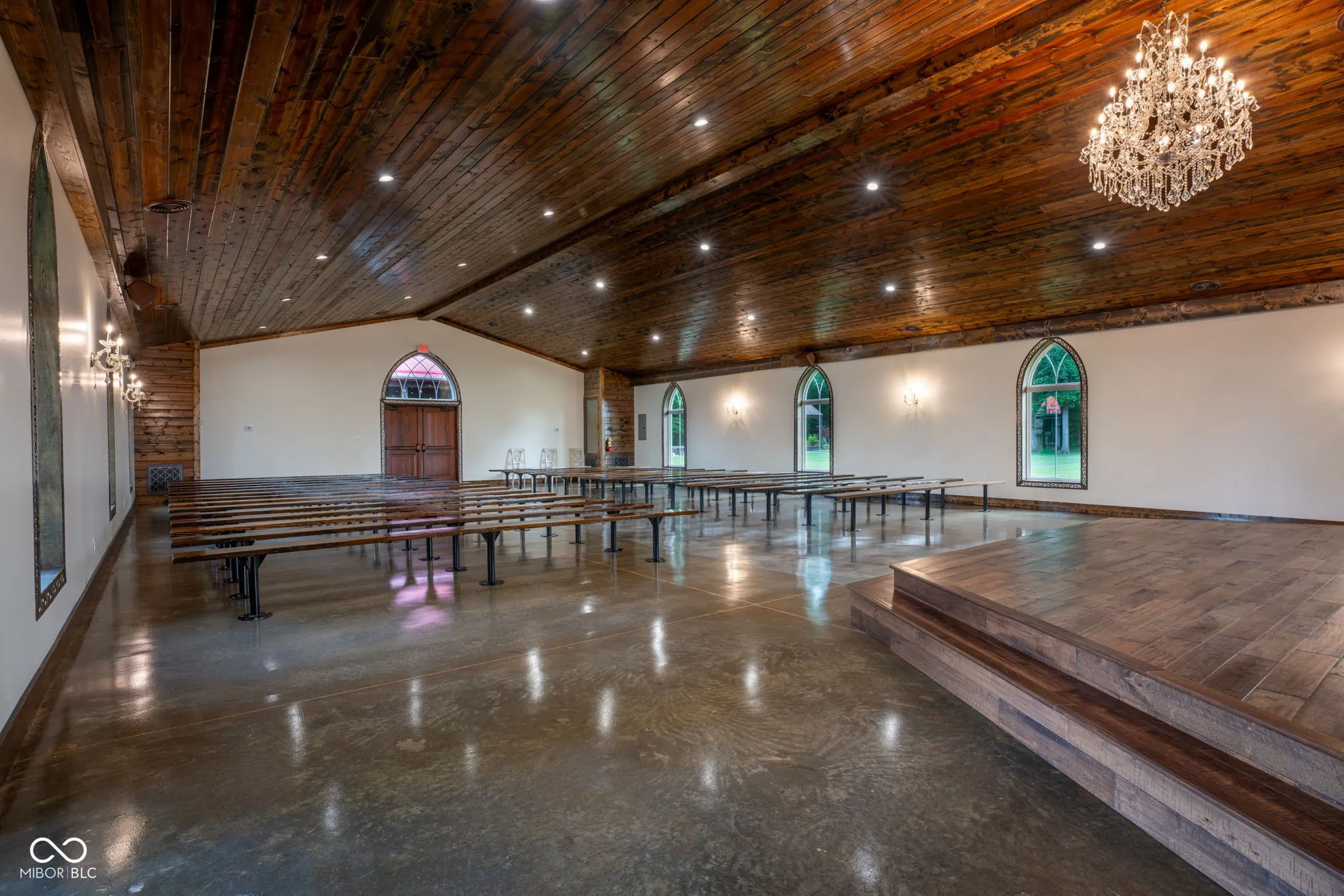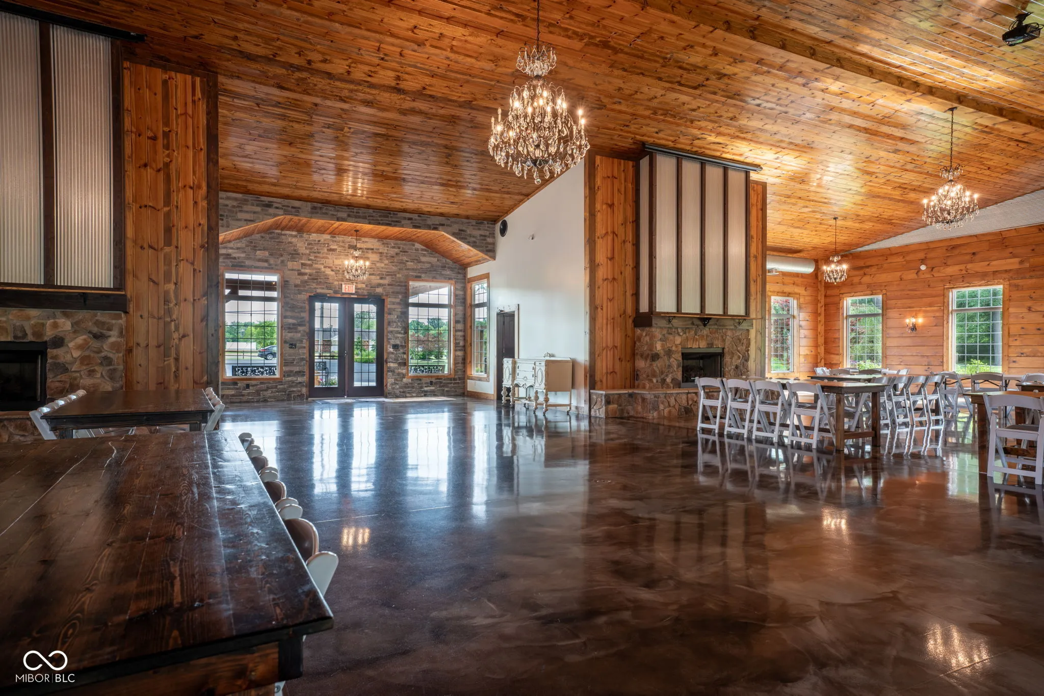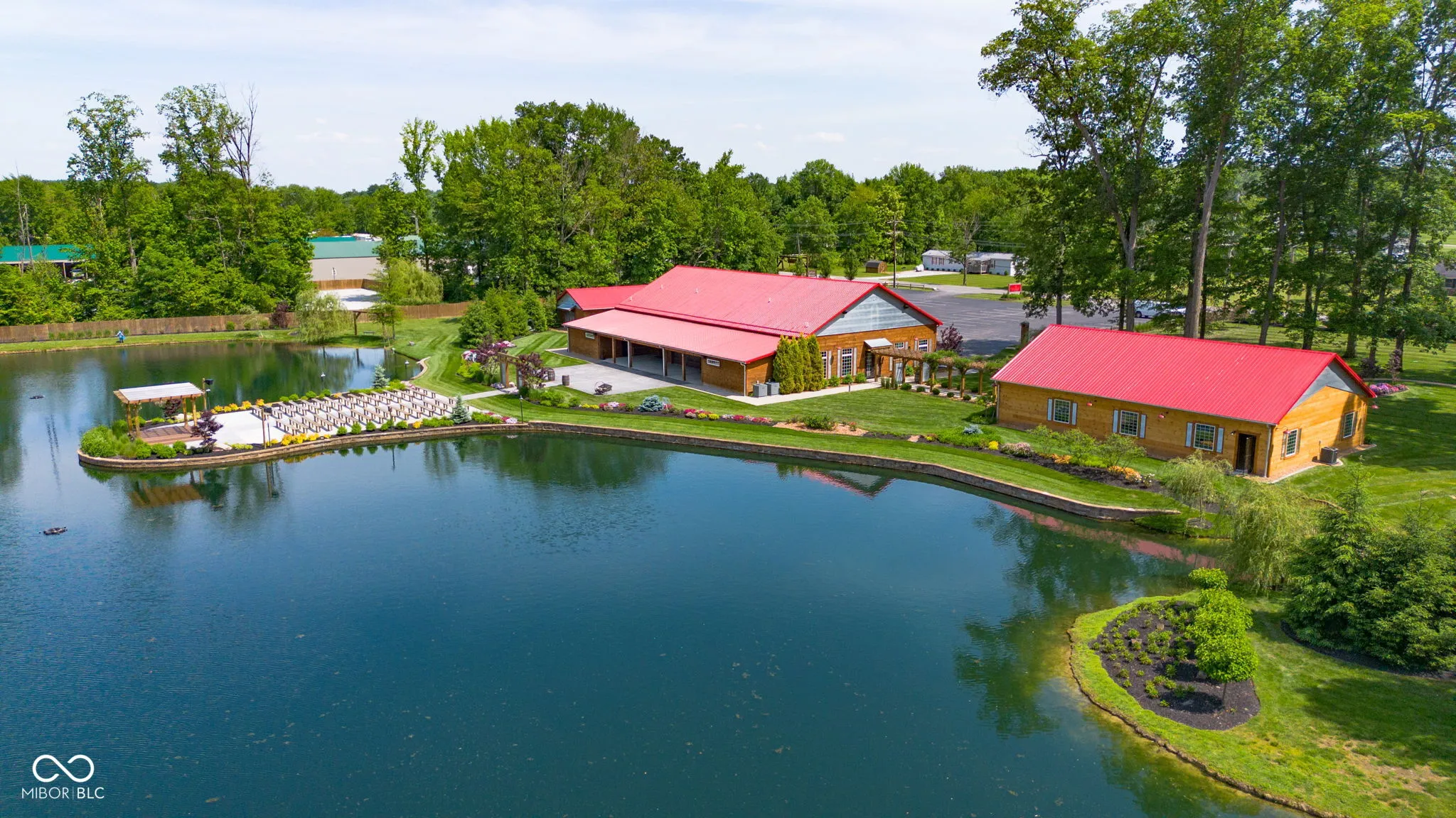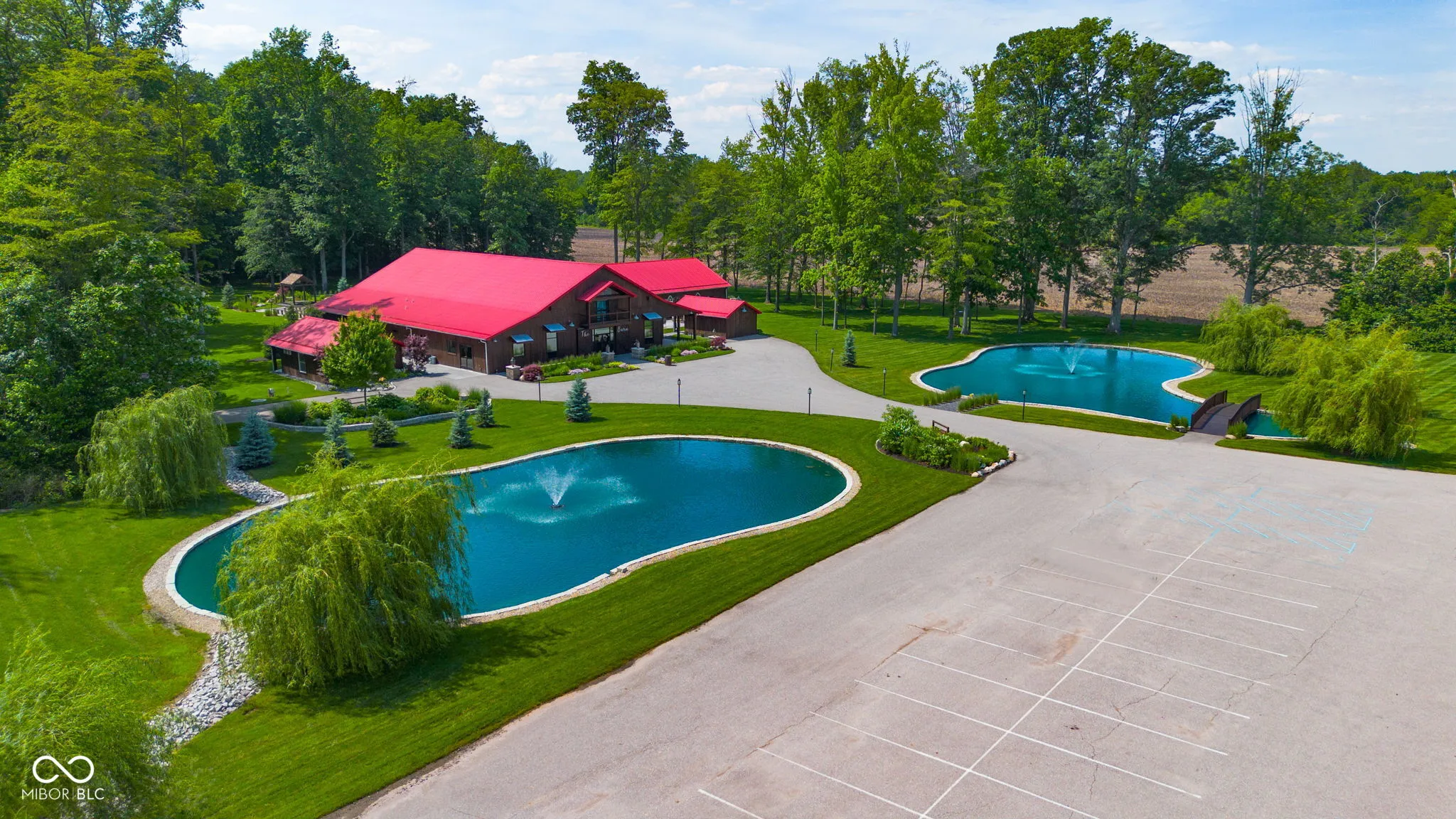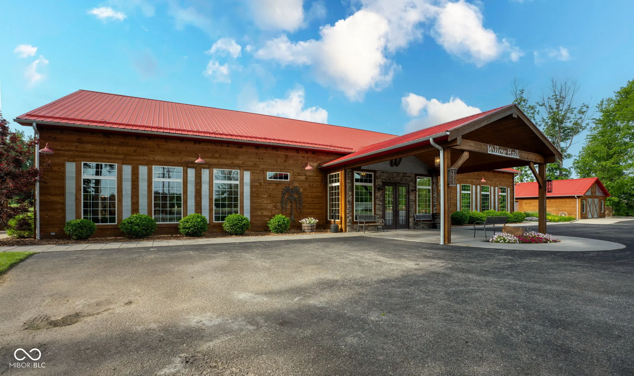 Introducing Willow Lake Event Center, a captivating commercial property that serves as a premier event venue. With THREE income-producing venues, Willow Hall and The Barn, this 16-acre property offers an enchanting setting for any occasion. Both venues provide both indoor and outdoor ceremony locations while maintaining a climate-controlled environment and access to indoor restrooms. Willow Hall, constructed in 2016, spans 6280 sq ft and can accommodate 300 guests. This venue features two dressing rooms that lead to a stunning outdoor ceremony site surrounded by water and adorned with two fountains. Inside Willow Hall, you’ll find two gas fireplaces, two projectors with screens, an indoor sound system, and party lights. The spacious retractable door seamlessly connects the celebration to the outdoors. Additionally, a fully equipped kitchen and ample catering space are available. For smaller events or indoor ceremonies, there’s a separate 2400 sq ft space next to Willow Hall that can comfortably seat 250 guests for ceremonies or 150 guests for other events. Located at the front of the property, The Cabin offers a charming retreat for guests. With 1232 sq ft, it features a large primary suite, a walk-in shower, a claw foot tub, and a covered porch with water views. The main level includes an additional half bath, a sunroom with extra sleeping options, and a two-car detached garage. The Barn, established in 2019, spans 6600 sq ft and can accommodate up to 450 standing guests (or 400 seated). It boasts a full kitchen with a convenient side entry door, a designated bar and serving area, a projector with screen, and an indoor sound system. Two private detached dressing rooms with overnight sleeping options, including one with a full bathroom. The outdoor ceremony site offers a picturesque pergola with wooden bench seating, surrounded by the beauty of nature. Lastly,The Chapel provides a charming indoor ceremony space, covering 2400 sq ft will seat 300 guests.