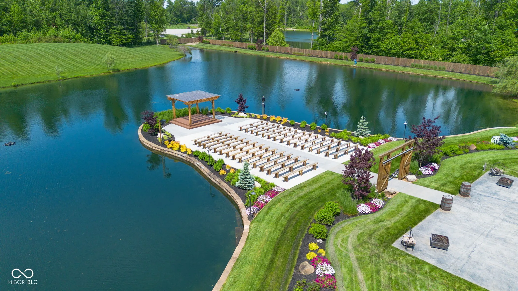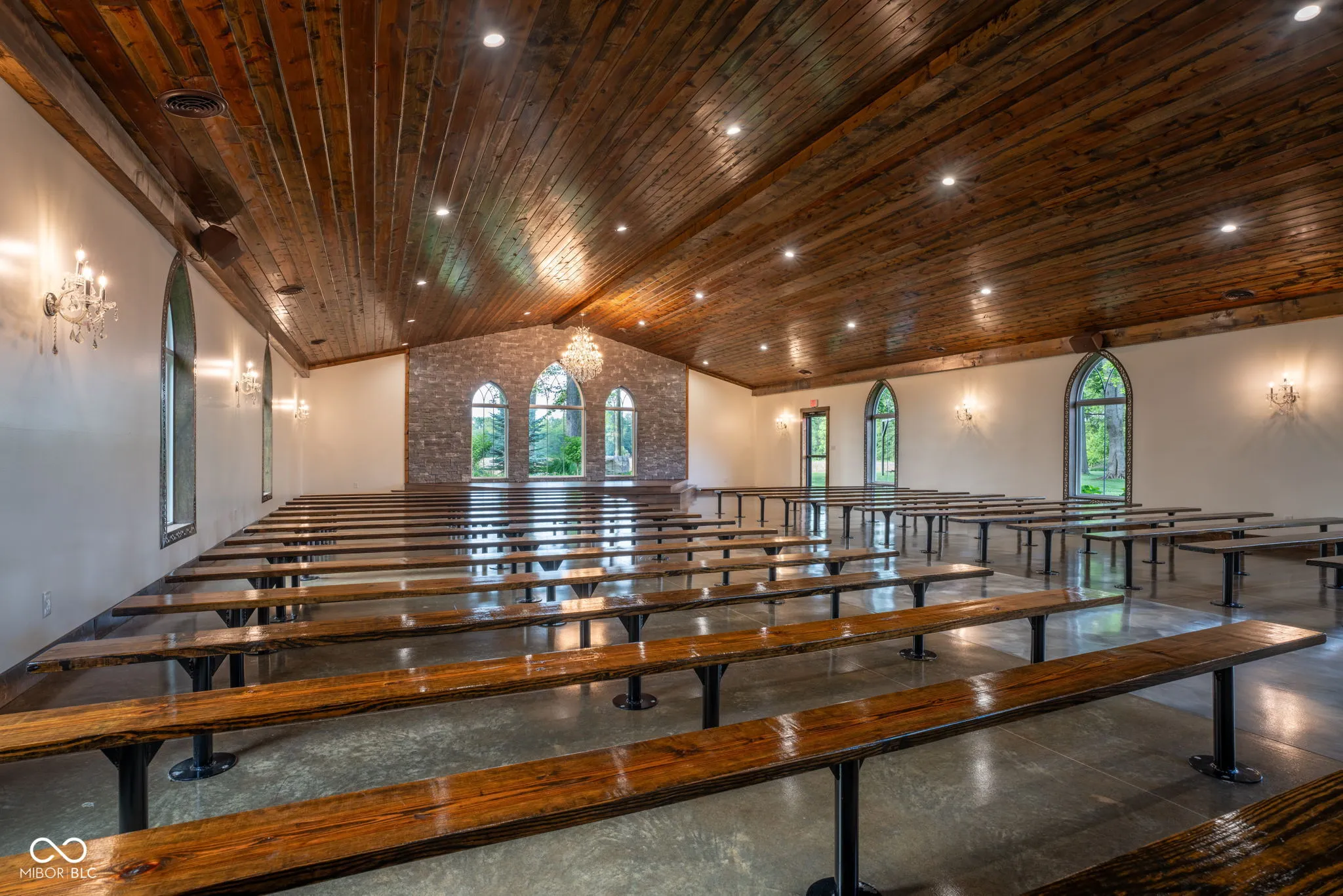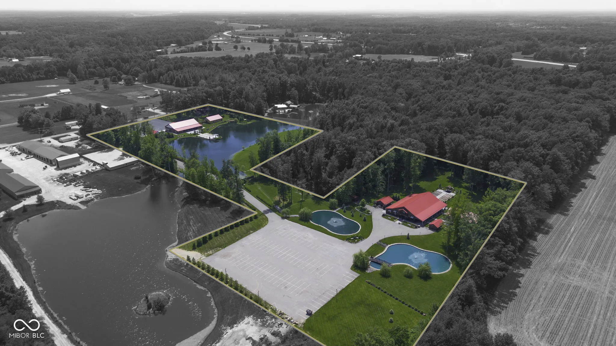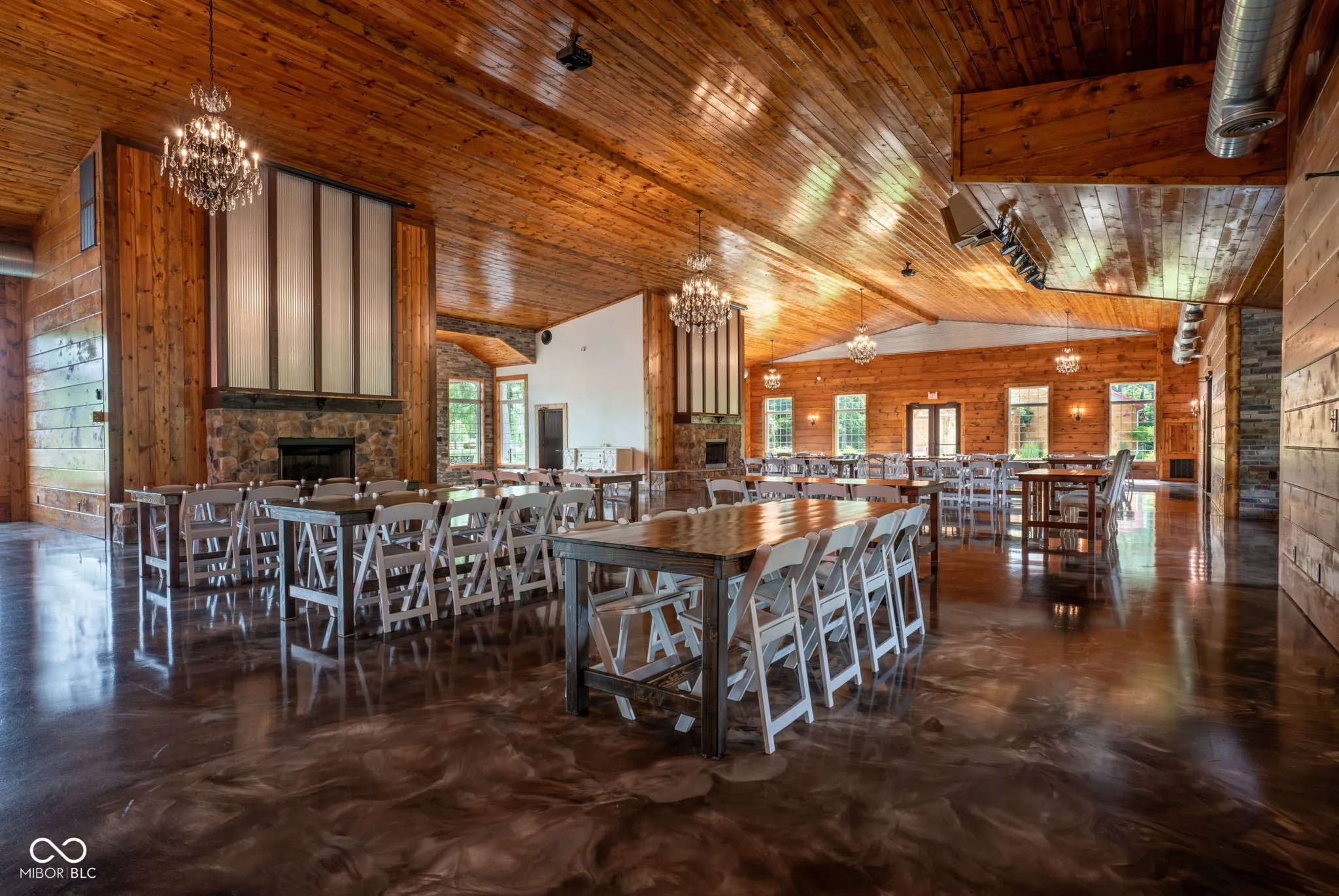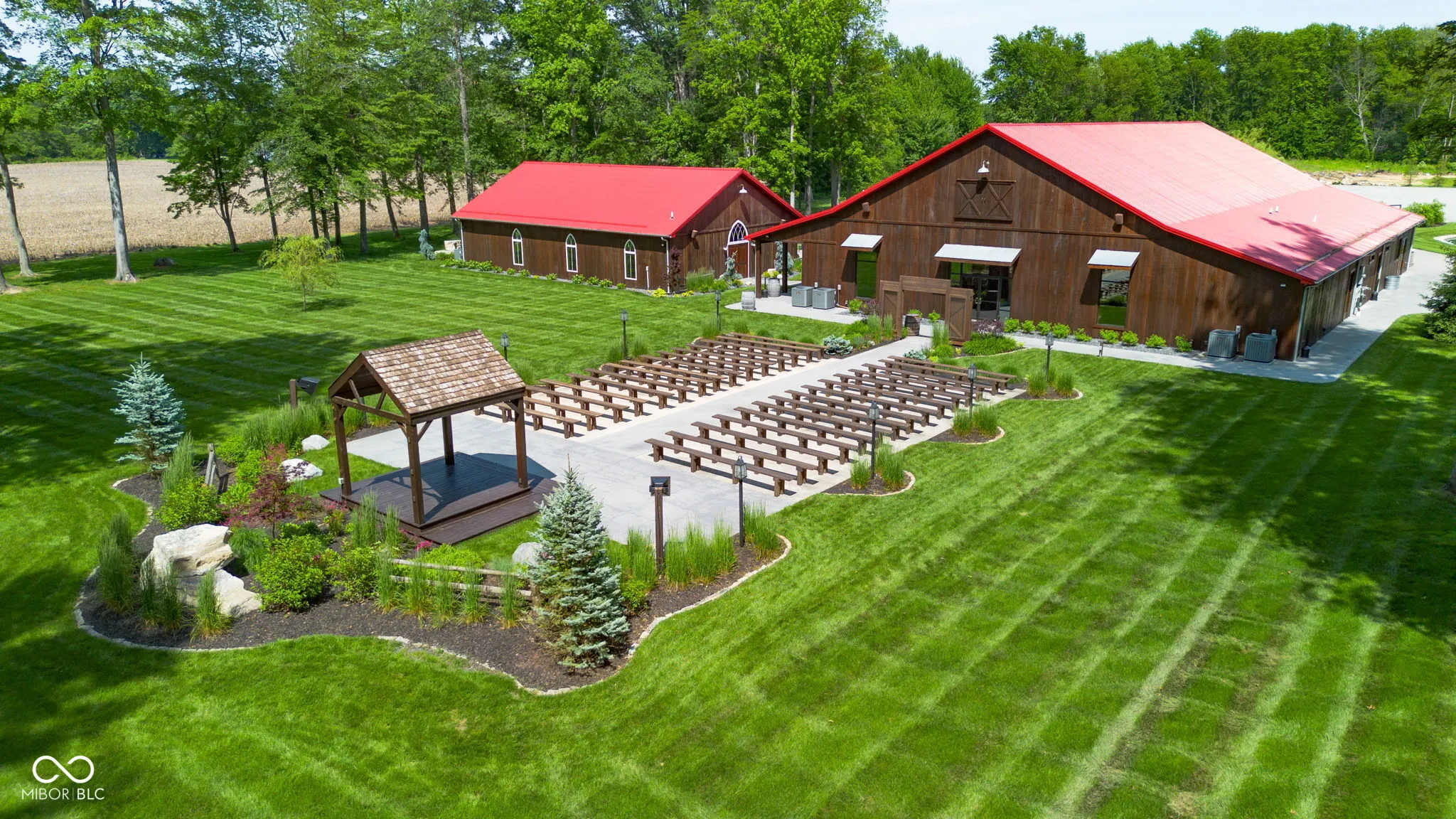 Introducing Willow Lake Event Center, a captivating commercial property that serves as a premier event venue. With THREE income-producing venues, Willow Hall and The Barn, this 16-acre property offers an enchanting setting for any occasion. Both venues provide both indoor and outdoor ceremony locations while maintaining a climate-controlled environment and access to indoor restrooms. Willow Hall, constructed in 2016, spans 6280 sq ft and can accommodate 300 guests. This venue features two dressing rooms that lead to a stunning outdoor ceremony site surrounded by water and adorned with two fountains. Inside Willow Hall, you’ll find two gas fireplaces, two projectors with screens, an indoor sound system, and party lights. The spacious retractable door seamlessly connects the celebration to the outdoors. Additionally, a fully equipped kitchen and ample catering space are available. For smaller events or indoor ceremonies, there’s a separate 2400 sq ft space next to Willow Hall that can comfortably seat 250 guests for ceremonies or 150 guests for other events. Located at the front of the property, The Cabin offers a charming retreat for guests. With 1232 sq ft, it features a large primary suite, a walk-in shower, a claw foot tub, and a covered porch with water views. The main level includes an additional half bath, a sunroom with extra sleeping options, and a two-car detached garage. The Barn, established in 2019, spans 6600 sq ft and can accommodate up to 450 standing guests (or 400 seated). It boasts a full kitchen with a convenient side entry door, a designated bar and serving area, a projector with screen, and an indoor sound system. Two private detached dressing rooms with overnight sleeping options, including one with a full bathroom. The outdoor ceremony site offers a picturesque pergola with wooden bench seating, surrounded by the beauty of nature. Lastly,The Chapel provides a charming indoor ceremony space, covering 2400 sq ft will seat 300 guests.