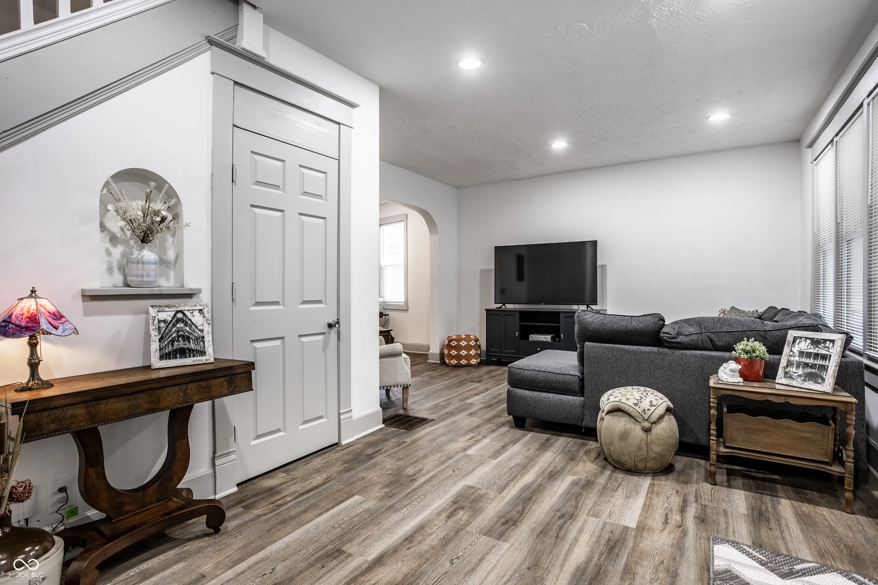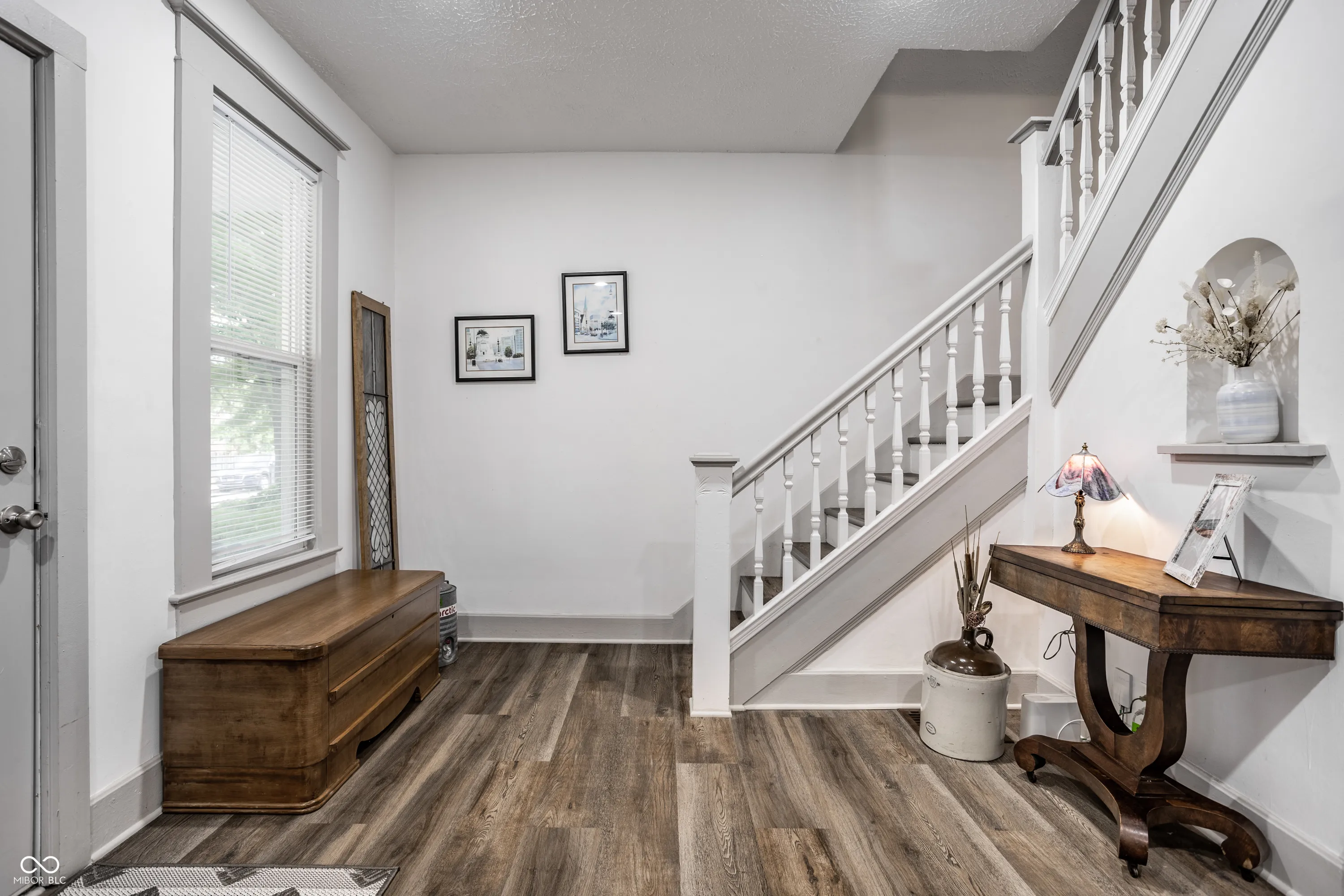 Welcome to this charming two-bedroom home in Indianapolis! With its inviting front porch and great curb appeal, this property is truly a gem. Inside, you’ll find a beautifully appointed foyer and durable LVP flooring throughout. The updated kitchen, complete with stainless appliances and butcher block countertops, is perfect for the home chef. The newer main level half bath and hard-working mudroom/laundry area add convenience to everyday life. Step outside onto the wonderful deck in the fully fenced backyard, providing a private oasis for relaxation. Plus, with a two-car garage, parking and storage are never an issue. Don’t miss your chance to own this delightful home!