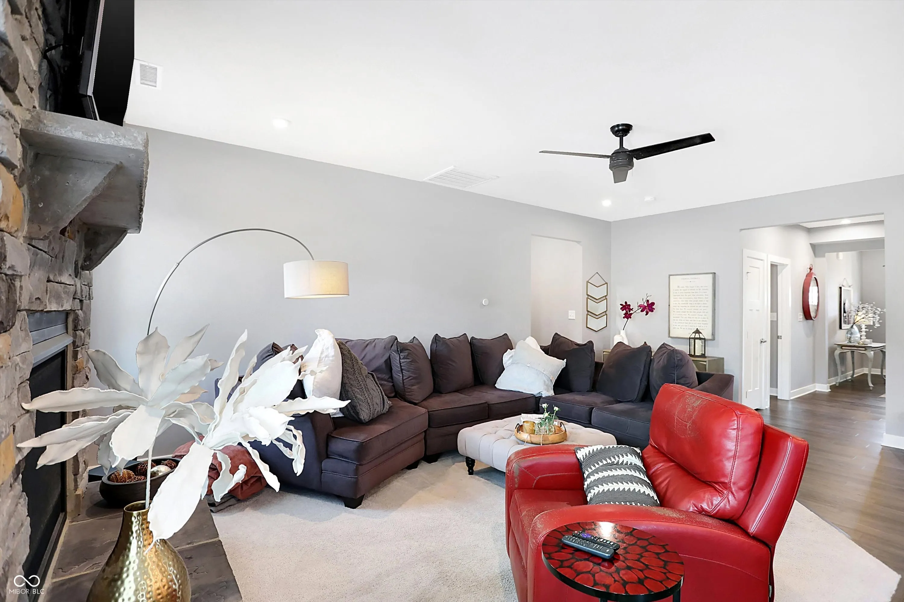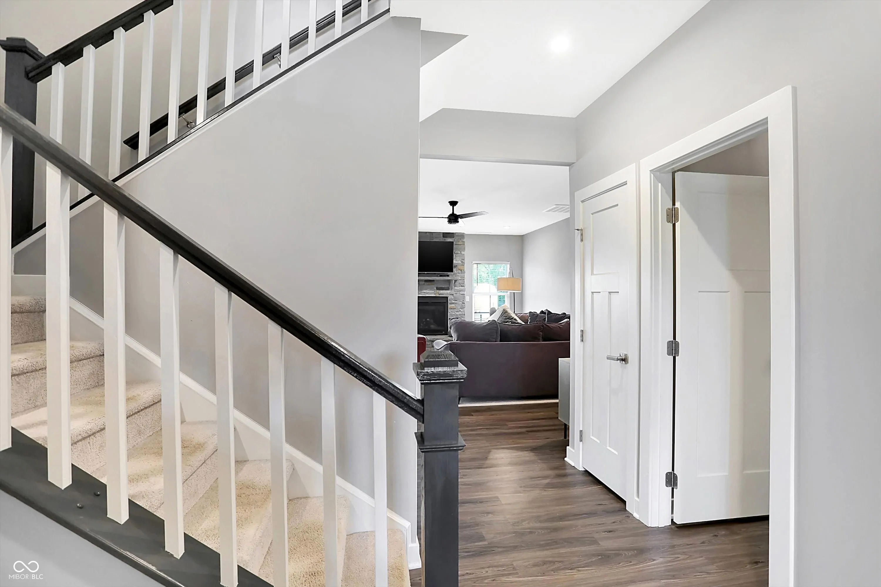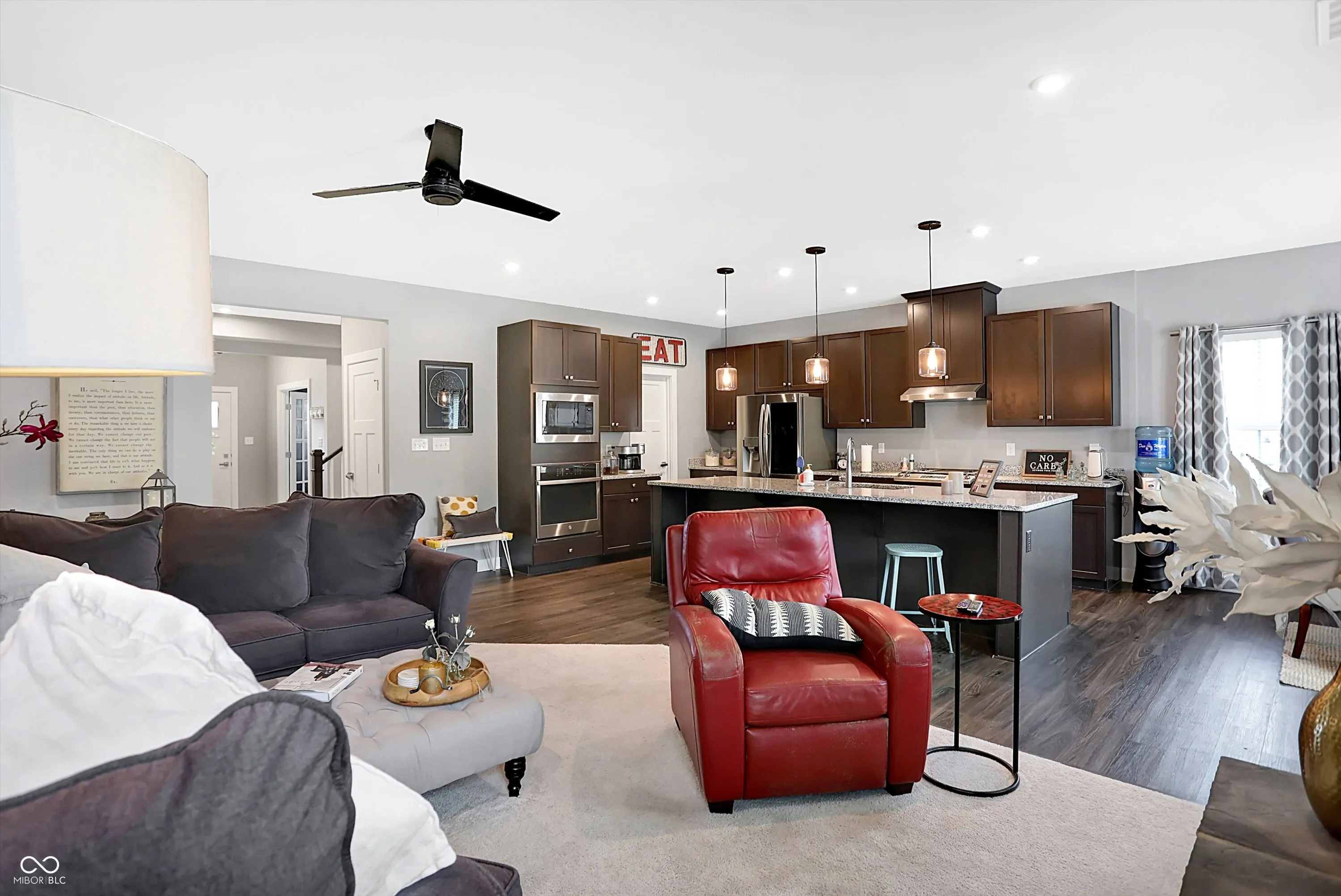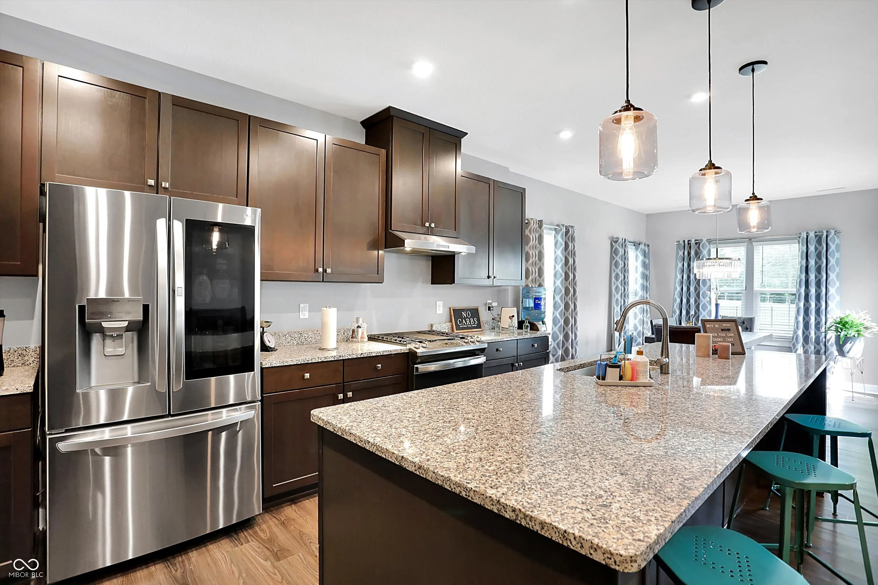 Discover modern living in this like new, 3 bedroom, 2.5 bathroom home in the sought after New Palestine community. Featuring a main level primary suite with a walk in closet, and large primary bathroom, an updated kitchen with top of the line appliances and granite countertops, and an open concept living area perfect for gatherings. The dining area overlooking the backyard is large and waiting for all the holiday parties. A fireplace completes the family room, making those winter nights welcome. Two spacious upstairs bedrooms share a full bathroom. The oversized loft allows for multiple living areas. Enjoy the beautifully landscaped yard and paver patio for relaxation and outdoor activities. Garage door is the highest insulated energy efficient door with My Q technology, and garage is finished. New Roof and Gutters in 2022.