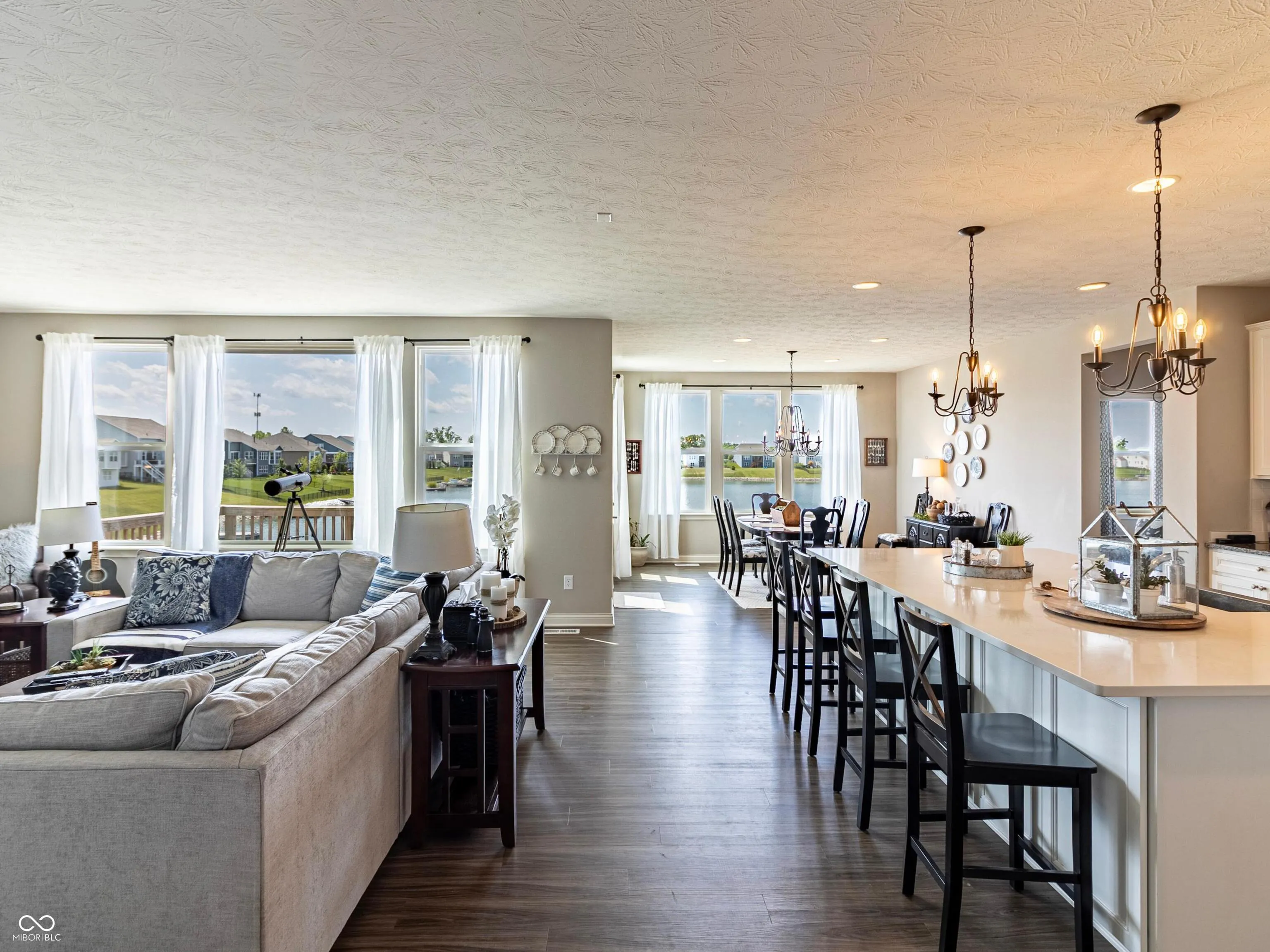 Time to live large on LAKE LOCHAVEN! Offering spectacular LAKE VIEWS & over 90′ of WATER FRONTAGE w private DOCK makes this exceptionally maintained home an excellent opportunity! Features of this open concept beauty begin when entering the large FOYER trimmed out with wainscoting & crown molding-GREAT ROOM w slate wrapped gas switch fplc-Gourmet KITCHEN w granite countertops, tiled backsplashes, gas cooktop, large quartz island, farmhouse sink & exhaust system-formal DINING AREA with all enjoying lake views. Primary BEDROOM overlooks the lake & the BATH Suite has a spacious Roman walk-in shower w dual shower heads & double sinks. Other main level amenities feature a 2nd BEDROOM suite w private BATH, designated OFFICE/DEN, MUDROOM & large LAUNDRY ROOM w cabinets and granite countertop. Lower level living finds the 3rd BEDROOM w the 3rd full BATH, fantastic FAMILY ROOM, large GAMING AREA. Current WORKOUT ROOM could serve as MEDIA or FLEX ROOM. Central BAR AREA sports butcher block countertop and built-in beer & wine cellar/closet. Walk-in closets in all BEDROOMs & home has an abundance of storage throughout plus a huge 25X25 unfinished storage area. Lower level walks out to a covered patio area that has a rain proof lined ceiling and is complemented with pavers for flooring and walls that lead to the gas firepit enclosure & grilling area. Other amenities include 3 Car Garage w treated garage flooring. SMART HOME technology (see attachment for full details). Exceptional community with 2 pools and tennis. Convenient to all shopping and dining experiences with Noblesville ranking 12 in the US as one of the safest suburbs according to SmartAsset.
