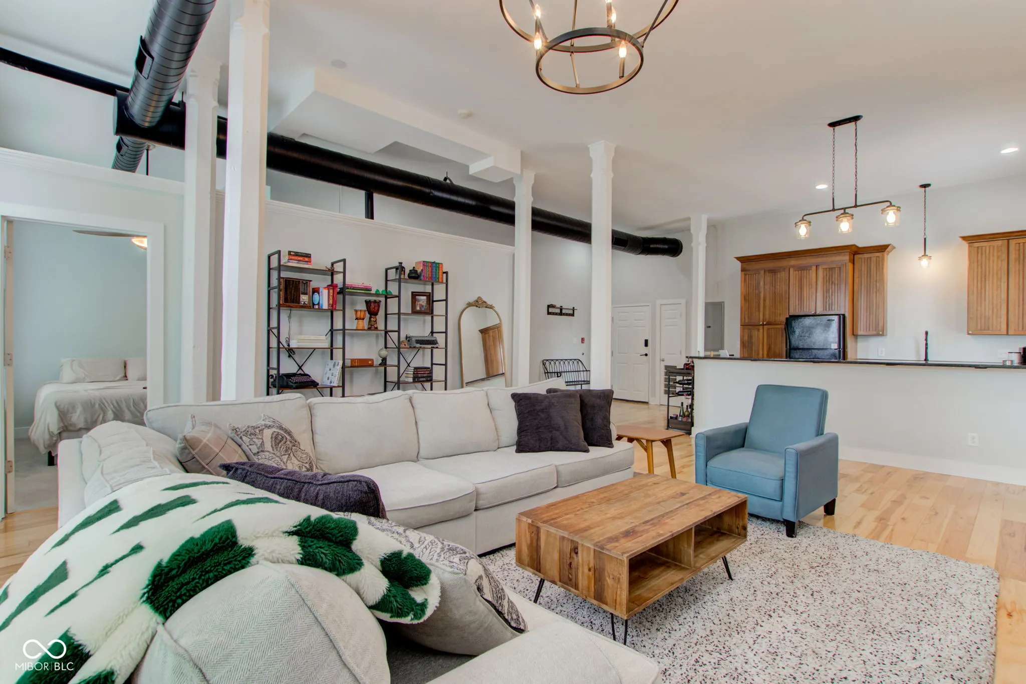 PRICE IMPROVEMNT! Welcome to urban living at its finest! Check out this snazzy 1-bedroom, 1-bathroom condo ideally situated a few minutes walk from Mass Ave. You’ll be so close to all things downtown Indianapolis, your car might get jealous! Step inside to be greeted by an industrial-inspired interior, featuring exposed ductwork and soaring 14-foot ceilings, custom kitchen cabinetry, granite countertops, and hickory hardwood flooring. Natural light pours in through the tall south and west-facing windows, creating a bright and inviting atmosphere. The open-concept living space seamlessly blends style and functionality, perfect for both relaxing and entertaining. Enjoy the convenience of in-unit laundry and ample storage throughout. Don’t miss this opportunity to live in a dynamic downtown location with the perfect blend of historic charm and modern comforts. Schedule your tour today!