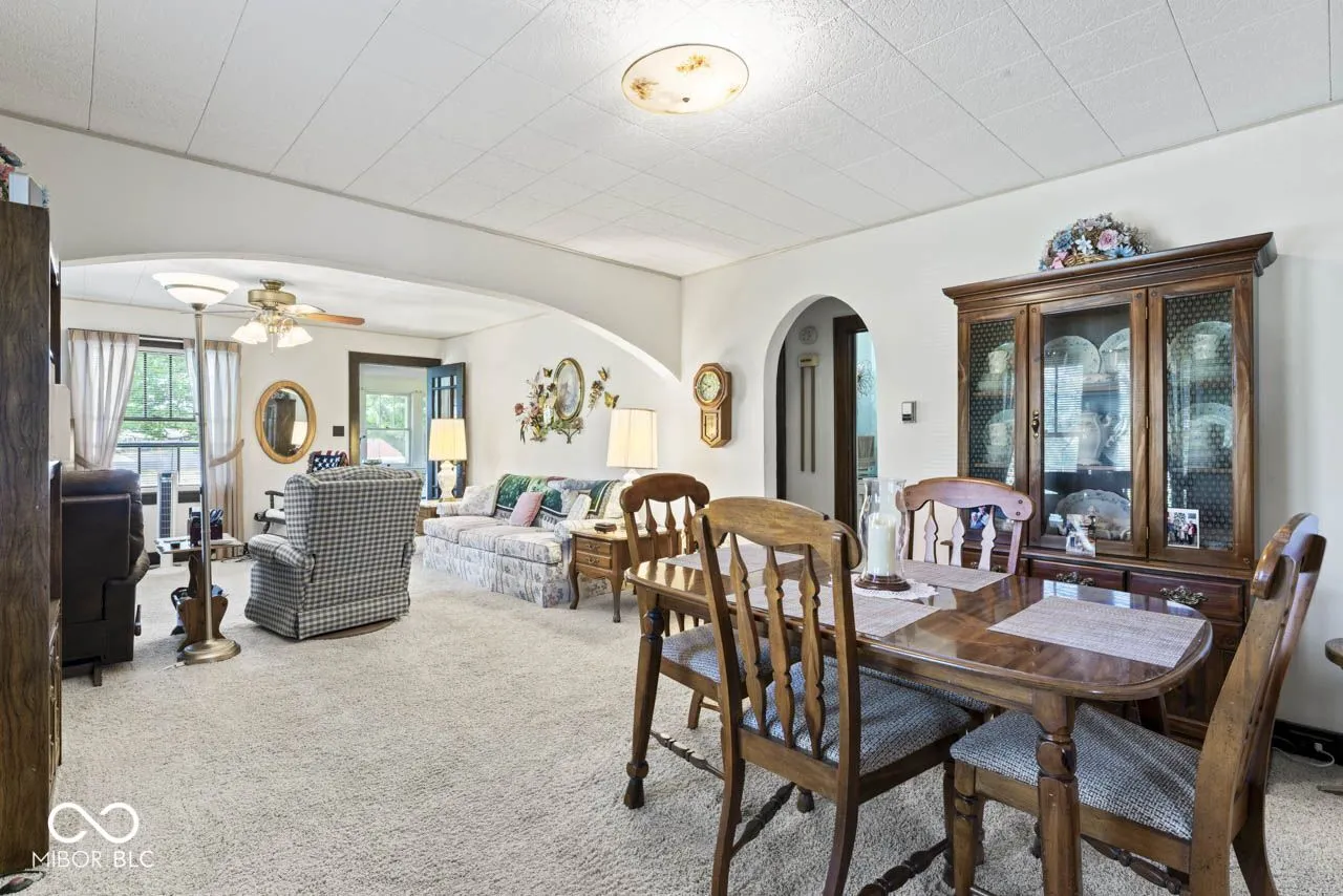 Charming two bedroom bungalow on just shy of 3 acres in the city. Arched doorways and original woodwork is a reflection of years gone by. Main level laundry, kitchen, open concept DR and LR. Recently updated bathroom. Enclosed front sun porch. Full basement. Detached two car garage and a 32x24x16 pole barn with double doors to house your toys and/or equipment. Appliances stay but not warranted. Seller believes there may be hardwood under the carpeting in most rooms. Roof is four years old. Great location on Anderson’s south side. Easy access to I-69, shopping, etc. Property is zoned R-2, however, there is mixed use in the area for potential zoning change with a variance. Livestock is not allowed but, plenty of room for gardening, additional structures, etc. Home is being sold “as is.” No FHA, VA or insured conventional. Please see agent remarks.
