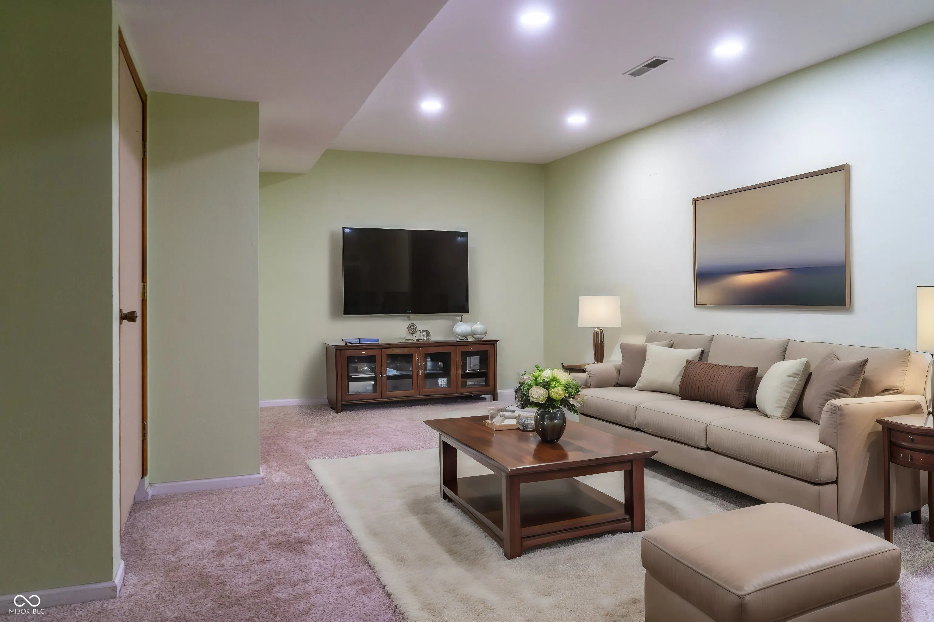 Welcome home to the brick ranch on a corner lot you have been waiting for! This 3 bedroom 2.5 bath home is freshly painted & move-in ready! Open floor plan on the main level with a wood burning fireplace at the end of the massive family room as the accent wall. Built in shelving flanks the fireplace & glass doors nearby lead to the deck area. The open kitchen has double ovens, stainless farmhouse sink & an island. The island is movable & can be adjusted to your own location preferences. Gorgeous laminate floors in most of the main level, cozy new carpet in the bedrooms & basement. The primary suite features double closets, high ceilings & a full bath w/new vanity. The finished basement is an excellent 2nd living space w/a partially unfinished utility room. The L-shaped design of the lower level naturally creates 2 spaces to best utilize the square footage. Laundry on the main level near the entrance from the 2 car garage. Mature landscaping & trees give this in-town lot a lush feel. No HOA & an excellent location.