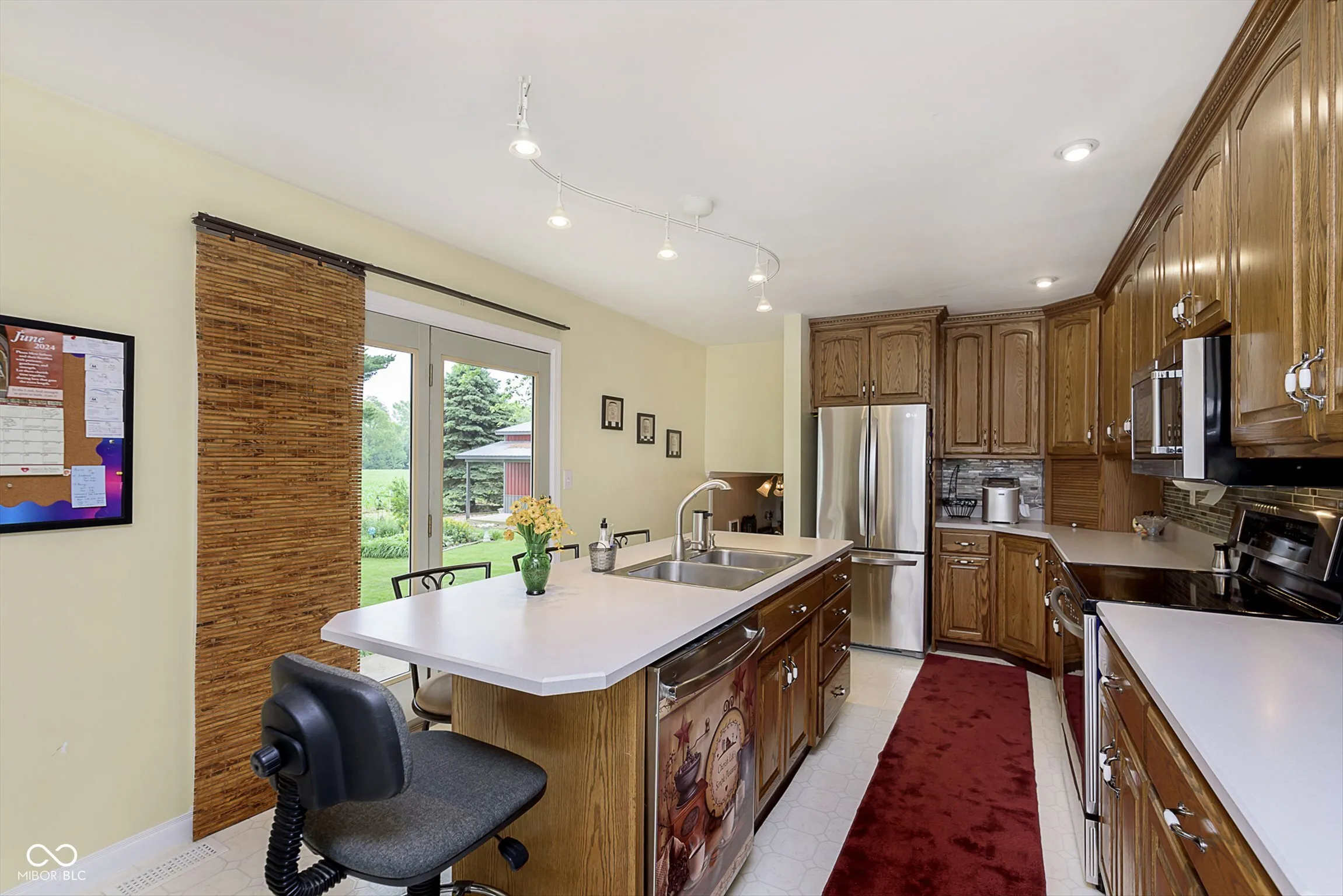 Needing more wiggle room both inside and out? How about this Beautiful, Well Cared for, 2 story, Brick home that features over 2100 sq feet !! Has a 30 x 40 POLE BARN with concrete floors and is on an acre IN THE COUNTRY. Upstairs you will find 3 XLarge bedrooms, with the primary one boasting a large walk in closet. On the main level is a living room with dining area at one end. You will also find the kitchen featuring madison county cabinets, updated backsplash and a beautiful view of the back yard. All appliances stay!! Even the washer and dryer. Conveniently the large laundry room also on the main floor. On the bottom level, is the family room with a fireplace. There is a 2 car attached garage but don’t forget the added pole barn. The home is all electric, central air included, expect the gas for the fireplace is rented from Donahue Gas. Home has an extra large crawl/basement area good for storage. There are 2 additional sheds in the back yard. New well dug 2024 Did I mention the views of fields all around… no close neighbors here. No HOA. This home is in Frankton School District. Home Warranty Included