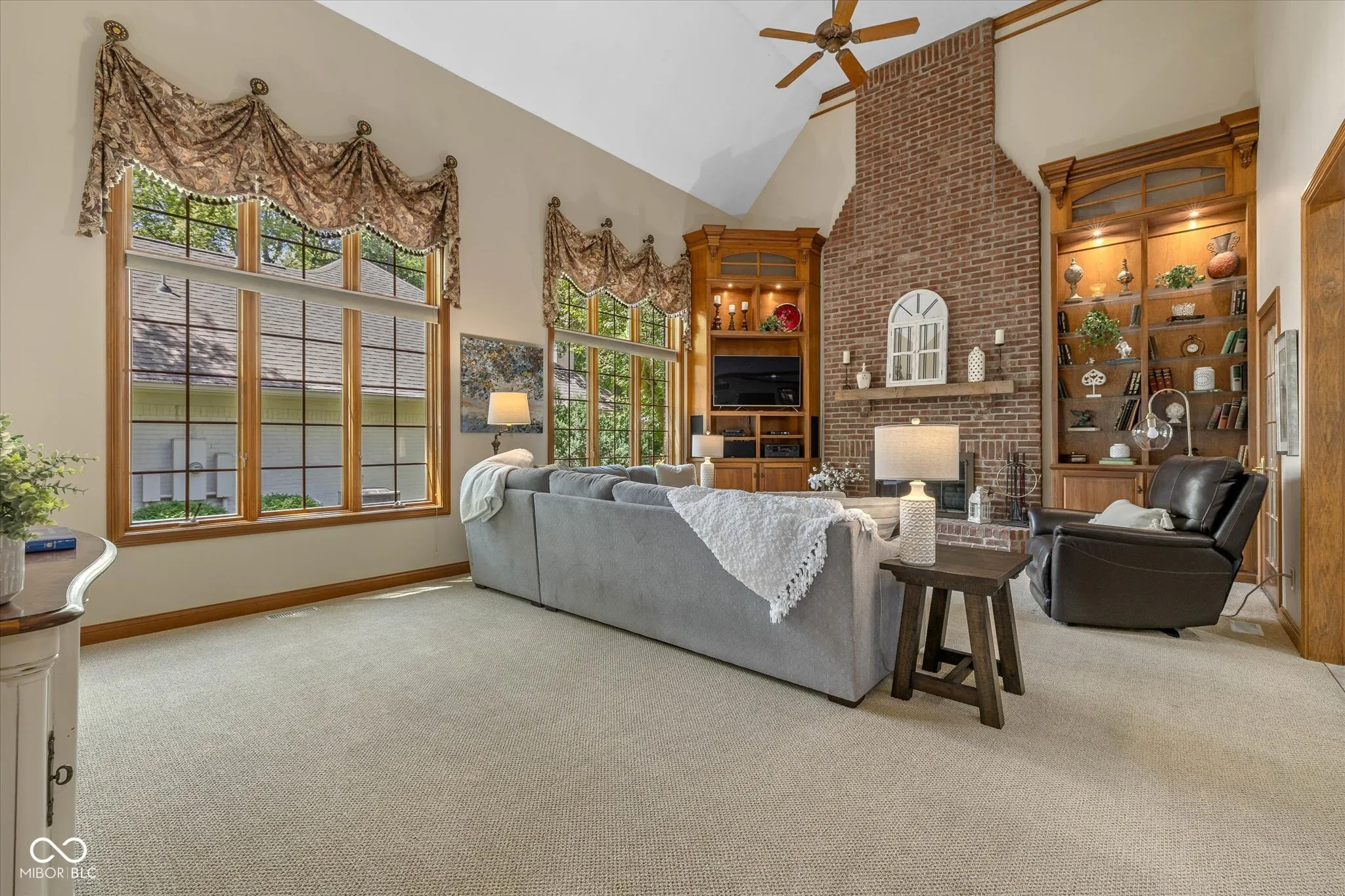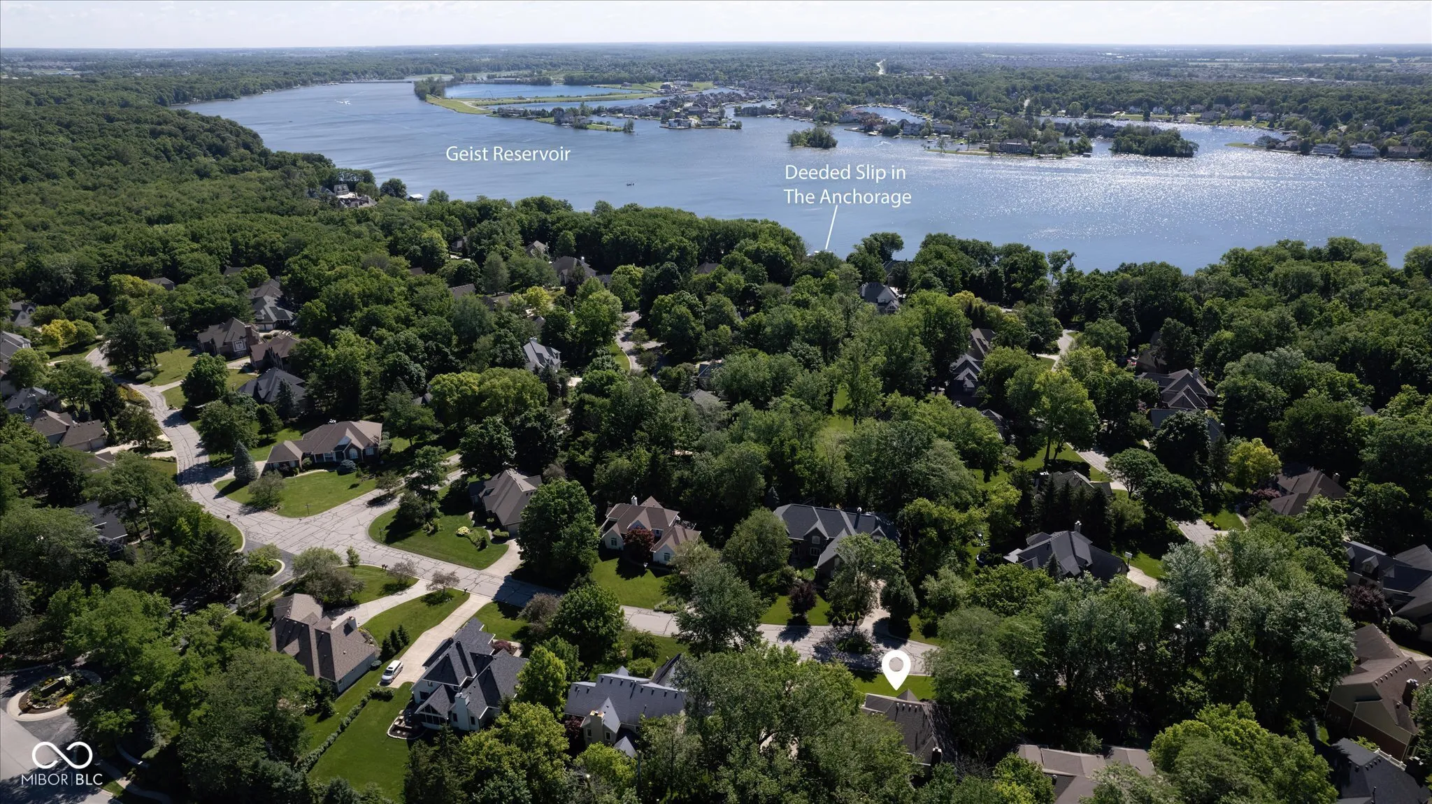 Come home to the Anchorage, a coveted treelined, secure GATED neighborhood in Fishers, and experience a lifestyle like no other. Discover the bliss of a DEEDED BOAT DOCK and lift on GEIST, inviting you to escape into the refreshing waters. This extraordinary property boasts 5 bedrooms and 4.5 bathrooms, thoughtfully designed across over 5,300 square feet. With a spacious 4+ CAR GARAGE, your storage needs are well met for your vehicles, boat and other fun adult motorize toys!! Inside, an updated Master Suite awaits, with SOAKER TUB and large WALK IN SHOWER, separate WIC and dual vanities – truly MASTER SUITE. To make the daily chores less tedious the LAUNDRY is conveniently located upstairs. The basement is perfect for entertaining, complete with a BUILT-IN BAR, kegerator and appliances which connects to your theater area along with a BONUS ROOM and/or your 5th bedroom. If working from home is a need, a beautiful main level DEN exists or if a quieter environment is required a great tucked away OFFICE awaits you in the basement. The main level will always feel like “home” with the two story GREAT ROOM and brick FIREPLACE and built-ins, overlooking your SCREENED IN PORCH and deck. Oversized kitchen with SS appliances, a BUTLER’S PANTRY and separate formal DINING ROOM make entertaining family and friends a breeze. This meticulously maintained, ONE OWNER home demonstrates ownership pride and attention to detail along with loads of storage space.