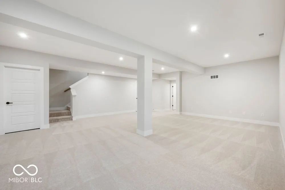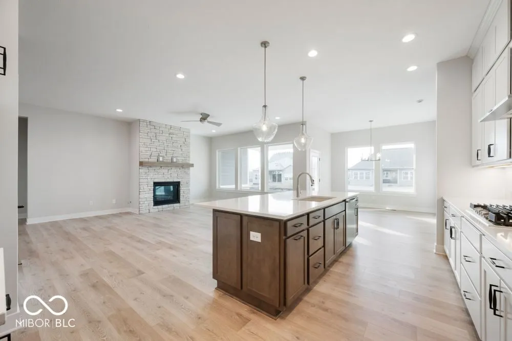 This stunning Spiceland plan by David Weekley Homes is a 5-bedroom ranch home offering luxurious living with 4 baths, a finished basement, and a cozy fireplace in the family room. The gourment kitchen boasts a delux island, cabinets extending to the 10′ ceilings, and top of the line appliances. Enjoy meals on the extended rear covered porch. The Owner’s Retreat features a tray ceiling and elegant ceiling beams, creating a serene escape. The Owner’s bath includes a spacious Supershower for ultimate relaxation. A 3-car garage finished side-load garage provides ample space for vehicles and storage. Lakes at Grantham is surrounded by wooded preserves, gives you a feeling of serenity yet close to shopping restaurants, schools and entertainment. Walking distance to Geist Lake, future amenities include a pool, indoor basketball court, indoor pickle ball courts, indoor lounge, dog park, fire pit, picnice area, ponds with fountains, walking/biking paths and acres of Nature Preserve.