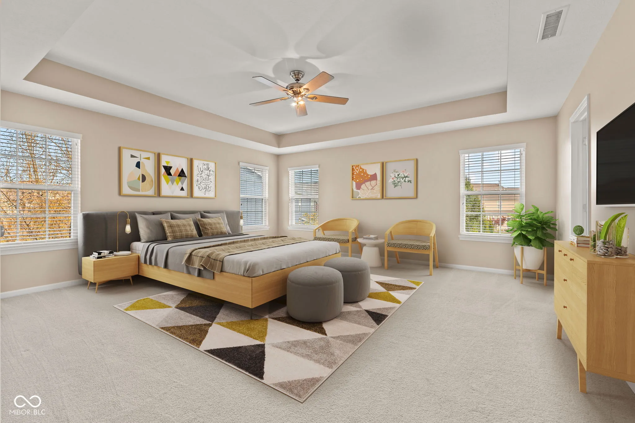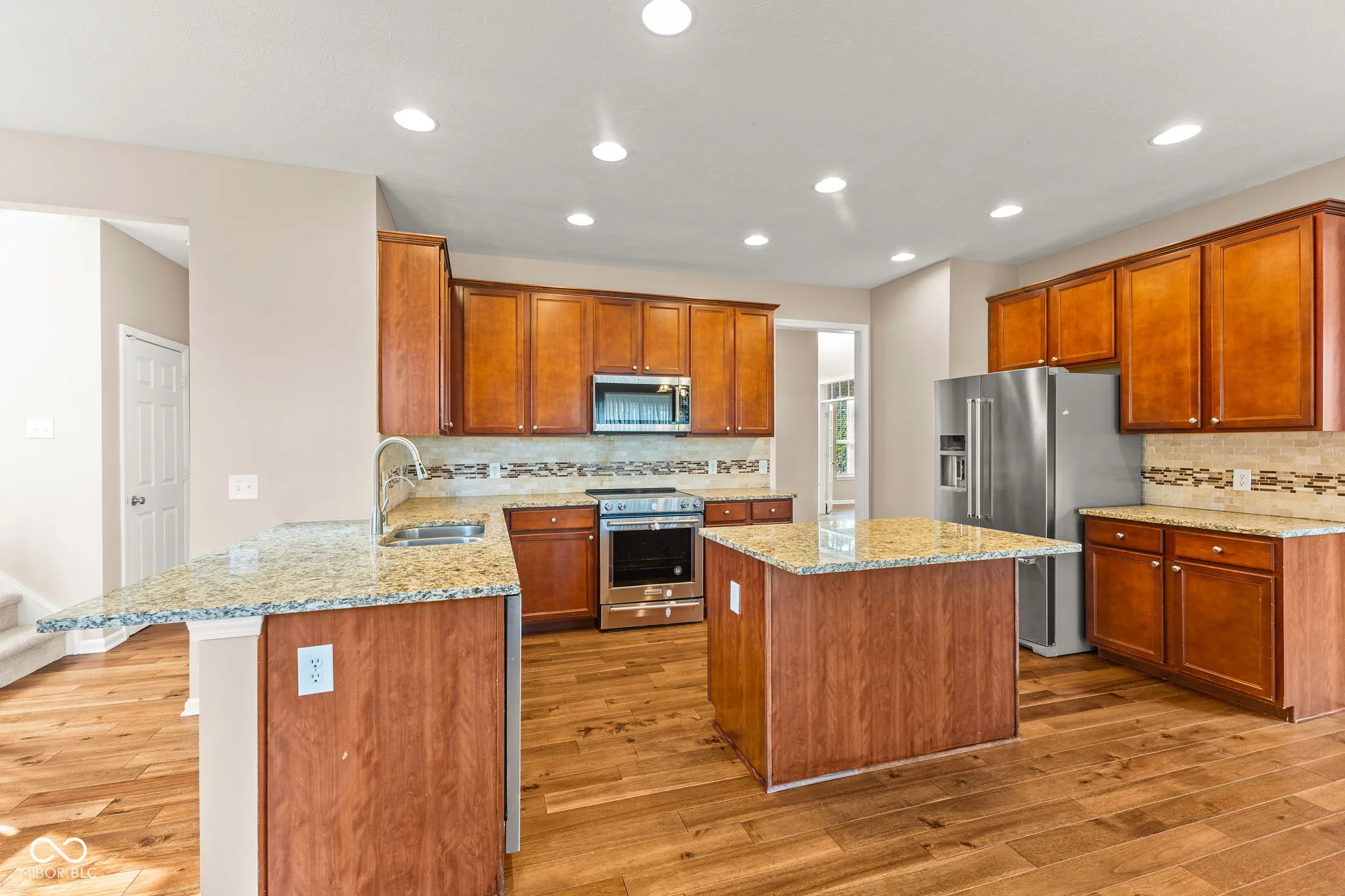Welcome to an exceptional residence located in the prestigious Boulders neighborhood of Fishers. As you enter the grand two-story foyer, the timeless elegance of hardwood floors welcomes you, flowing seamlessly across the main level. This spacious freshly painted home offers an array of beautifully appointed spaces, including a formal dining room, a private office with custom built-ins, and a light-filled great room featuring a cozy gas fireplace that creates a warm and inviting atmosphere. The gourmet kitchen, designed for the culinary enthusiast, features sleek granite countertops, premium stainless steel KitchenAid appliances, a spacious center island, and a walk-in pantry. French doors lead to a sunlit office, while the formal living and dining areas provide an ideal setting for both intimate gatherings and large-scale entertaining. Upstairs, you’ll find three generously sized bedrooms, each with its own walk-in closet, along with a luxurious master suite that includes double vanities, a tiled shower, and an expansive walk-in closet. The fully finished basement is an entertainer’s dream, offering brand-new carpet, a fifth bedroom, a full bath, and a versatile bonus room perfect for a home theater or second office. The large open seating area and bar space make this an ideal place for hosting guests. A fully finished and insulated 3-car side-load garage provides ample storage and convenience. Outside, enjoy the privacy of a fenced yard with a stamped concrete patio, perfect for outdoor living. Just a short stroll away, you’ll find the neighborhood pool and playground, adding to the appeal of this family-friendly community. With a new HVAC system and an unbeatable location near top-tier schools, shopping, and dining, this home offers both comfort and convenience in one of Fishers’ most desirable areas. Seize the opportunity to own this remarkable home-schedule a private tour today!