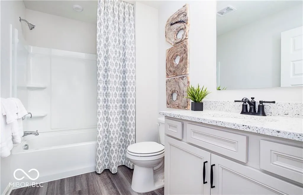 The Mystique design includes a comfortable owner’s suite which features a spacious bedroom, walk-in closet, and an attached bathroom. In addition to the owner’s suite, there is a secondary bedroom with its own full bath. This provides flexibility for guests or family members. The owner’s bath boasts a fully tiled walk-in shower and a double sink vanity. It’s a luxurious and functional space for daily use. The 3-car garage is conveniently located at the front of the house, offering ample parking space and storage for vehicles and belongings. The covered patio at the back of the house provides an outdoor area for relaxation, entertaining, or simply enjoying the outdoors. Oakdale is located two miles from downtown Brownsburg, two minutes to the future connection to Ronald Reagan Parkway and is within proximity to Eagle Creek.
