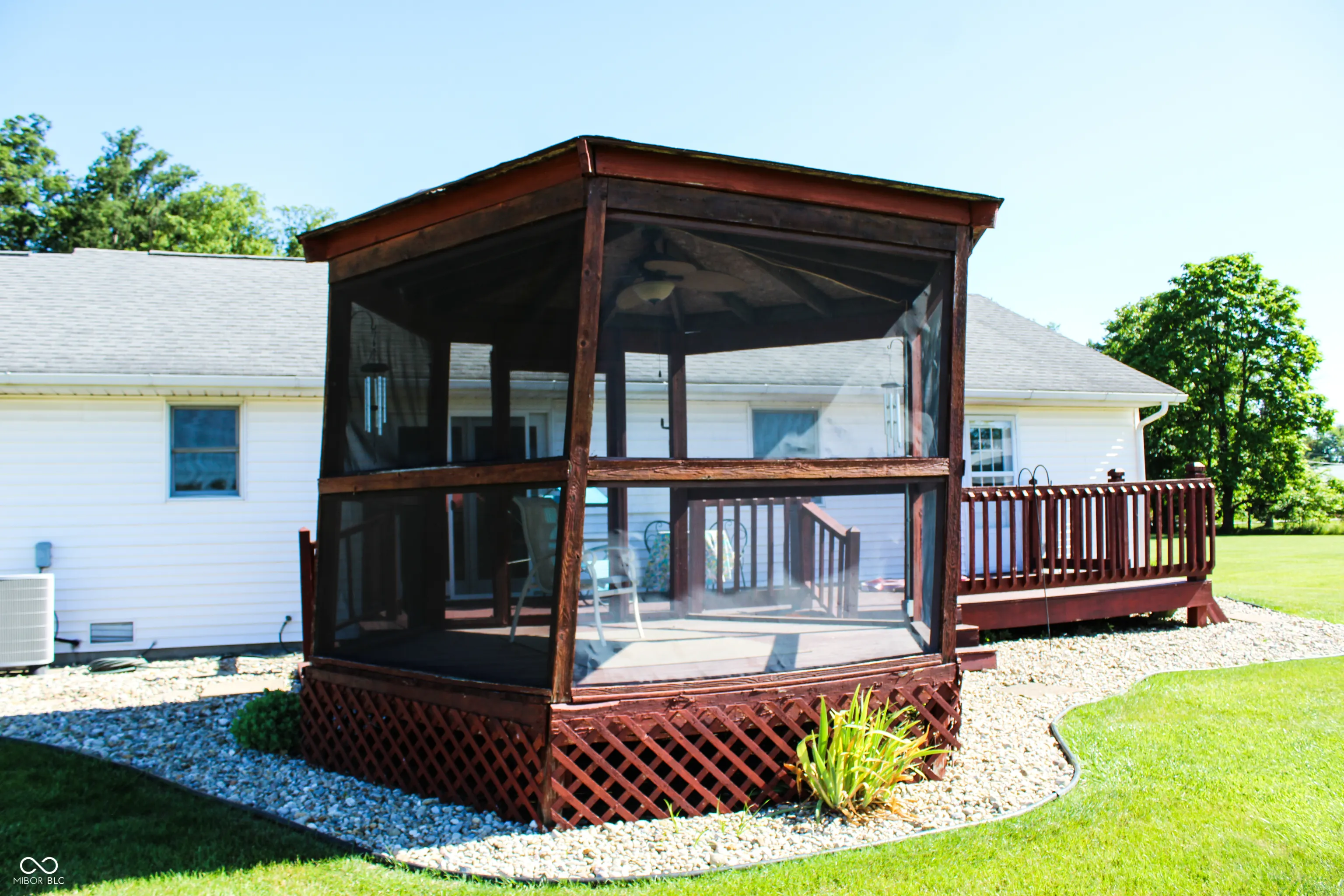 1st time offering. Over 1 acre of level lawn for many uses. This 2 bedroom, 2 bath, 2 car garage is in very good condition. Beautiful hardwood floors throughout plus all appliances will stay. Garage is finished with 2 garage door openers. Outside rear deck plus screened in gazebo to enjoy and relax in. There is a fireplace and 1,170 sq. ft. living area. This is truly one of a kind and deserves your consideration.