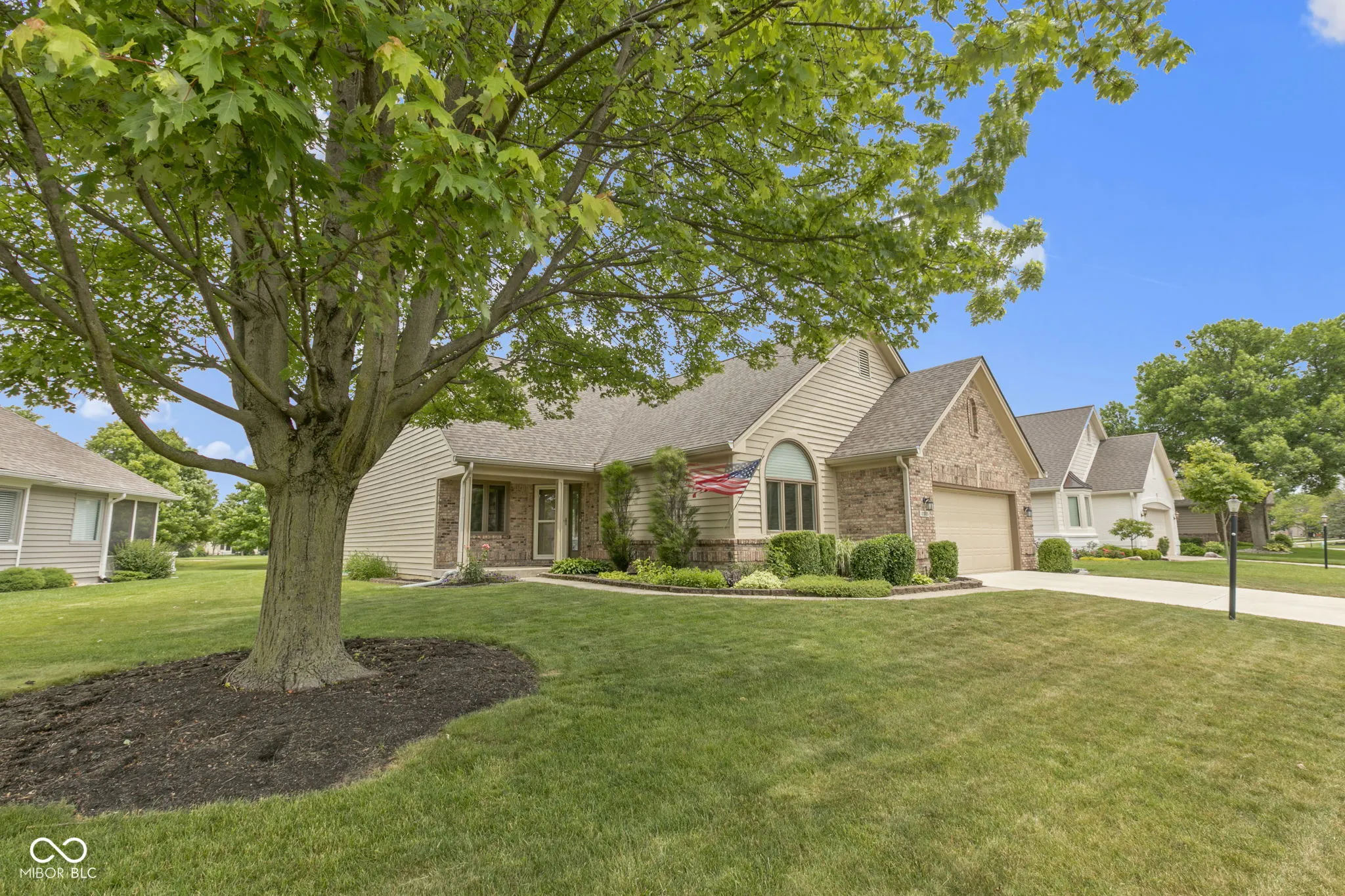 Welcome home to 12005 Clubhouse Dr! Nestled in Fishers’ desirable River Glen neighborhood, this charming 2-bed, 2-bath ranch perfectly blends comfort & style. Step inside the covered porch to a luxurious primary suite featuring a walk-in closet, double vanity, separate shower, and garden tub. A spacious second bedroom and a large den/office with built-ins provide flexibility for guests, family, work, or hobbies. The heart of the home truly shines. Vaulted ceilings and a cozy gas fireplace create a warm atmosphere in the great room, while the eat-in kitchen boasts an island and a sunny dining nook. Large windows throughout bathe the home in natural light. Unwind on the expansive covered patio with an attached open deck and built in gas grill, all overlooking the picturesque River Glen golf course – perfect for entertaining or quiet evenings. The finished 2-car garage with epoxy flooring adds functionality, while the well-maintained landscaping and impeccable lawn with irrigation ensures year-round beauty. An updated HVAC system (approx. 3 yrs old) offers peace of mind. Move-in ready and meticulously maintained, this home is a rare find. Minutes to downtown Fishers, near shopping, dining, entertainment, and easy access to major roads and highways. Don’t miss your chance – schedule a showing today!