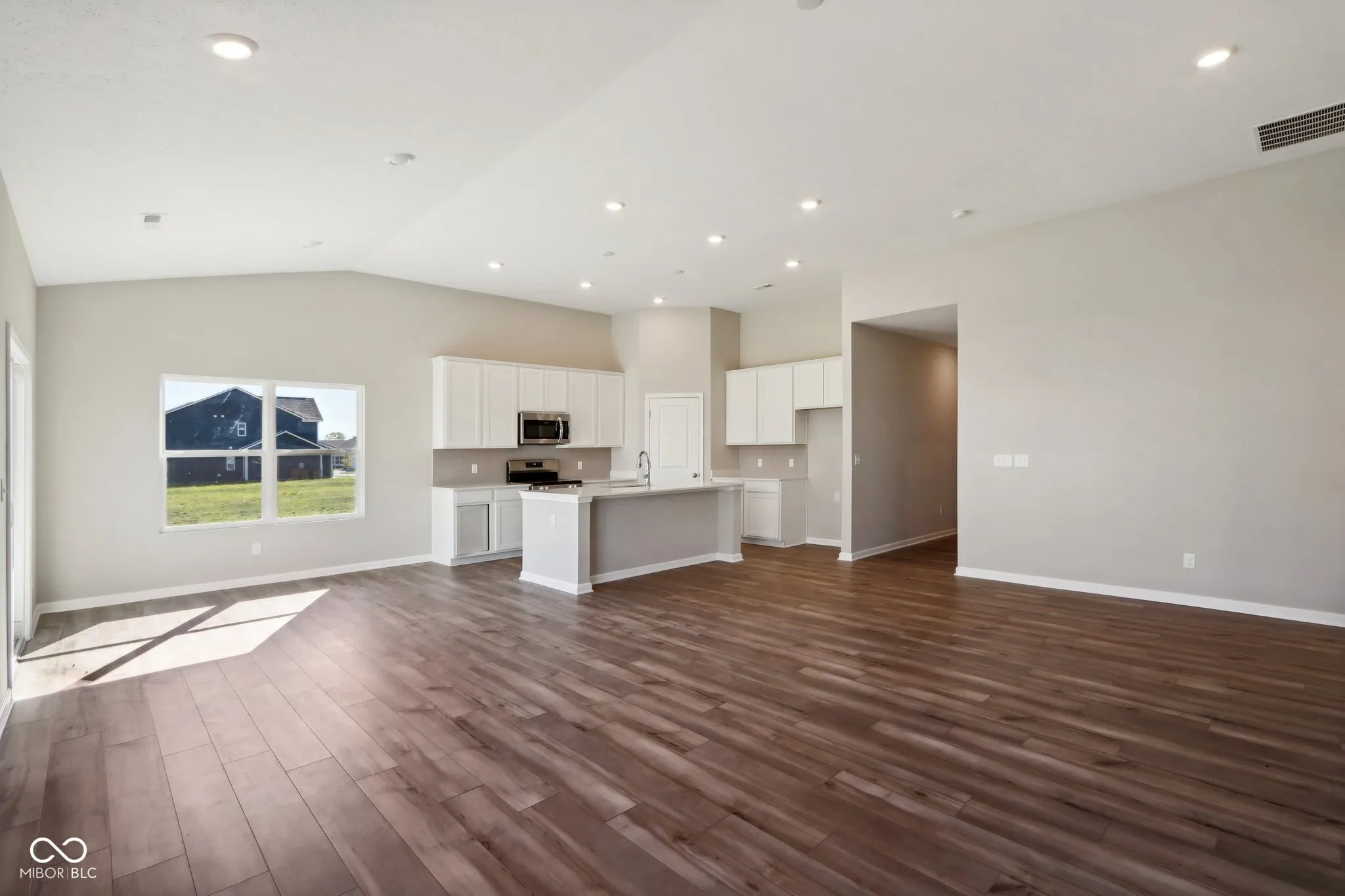 Welcome to your new home in Abbey Place! This Chestnut floor plan single-story home offers 1800 square feet of seamless open-concept living. Enjoy timeless charm from the Craftsman-style exterior and interior spaces that perfectly blend functionality and style. Inside, you’re greeted by 9′ first-floor walls, lending to an airy, comfortable environment. Luxury vinyl plank flooring graces the common areas, providing durability and easy maintenance with a touch of aesthetic sophistication. The interior exudes a warm ambiance as the tall 5′ windows flood the space with natural light. Enter the heart of the home, where the kitchen effortlessly flows into the living and dining spaces, making daily life and entertainment a breeze. Perfect your culinary skills in the gourmet kitchen, equipped with crisp white cabinetry, sleek 2CM quartz countertops, a stylish tile backsplash in 4×16 Dove Gray grout, and a gas line to the range. Unwind in the primary bedroom retreat, complete with a single-step ceiling for added architectural interest. The primary bathroom offers a spa-like experience at every turn with a 60′ shower featuring a framed bi-pass shower door and a double bowl vanity. Two additional bedrooms and another full bathroom provide plenty of space for family members or guests, ensuring everyone has their own private oasis. Outside, a 12′ x 10′ concrete patio beckons you to enjoy al fresco dining or simply soak up the sunshine in the privacy of your backyard. The 4′ extension on the garage side of the house gives ample additional storage space for your convenience. With premium vinyl siding, this home is designed to stand the test of time, allowing you to enjoy years of comfort and tranquility.