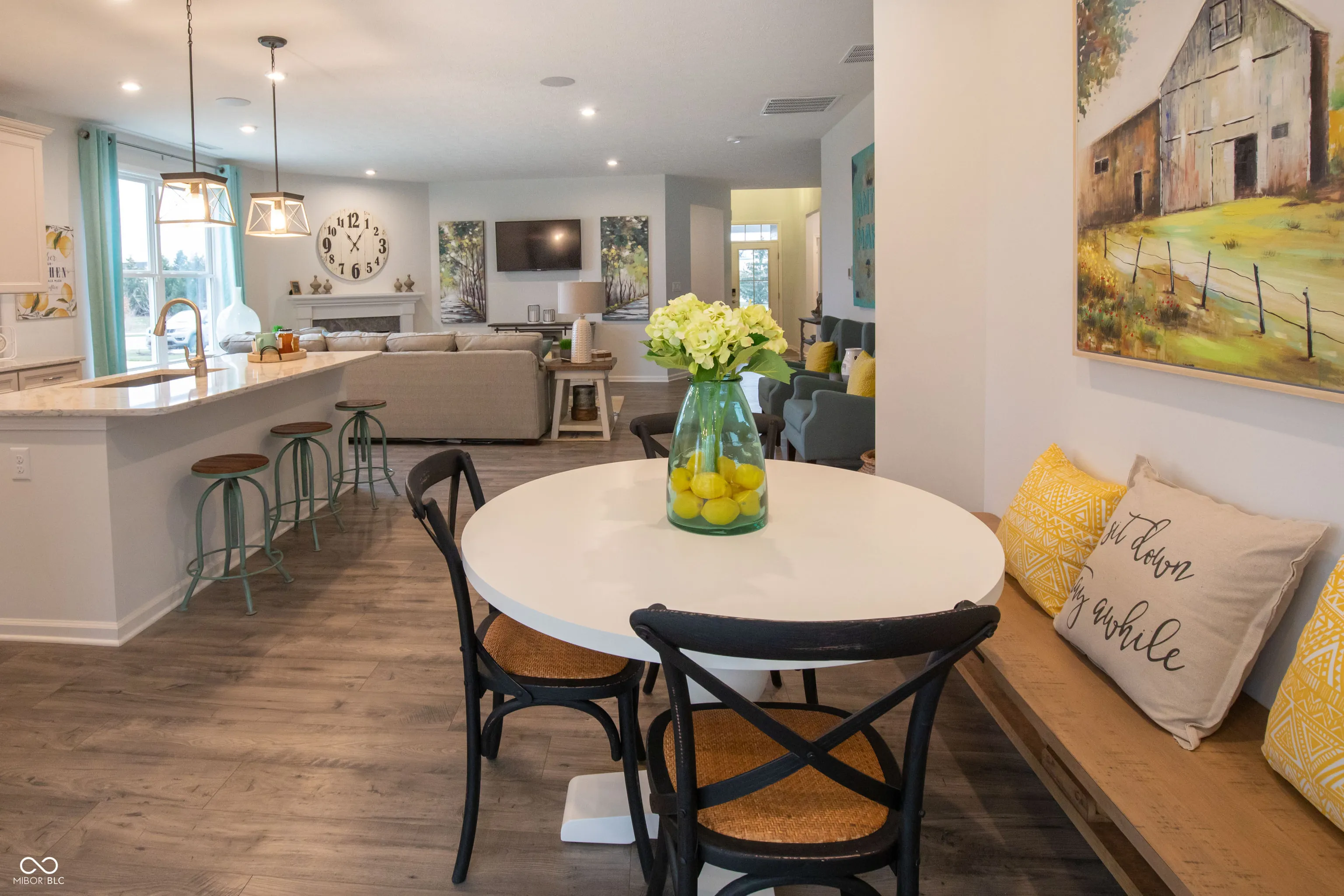 New Construction: New single-story duet offering the best in low maintenance living right in Noblesville. Lawn care & snow removal included in low monthly fee. Open concept home boasts a large kitchen w/island, white cabinets, soft close drawers, tile backsplash & quartz counters. Other features include a sunlit morning room, cozy fireplace, and extended 12×10 concrete patio. Designer finishes include luxury plank flooring in main living areas, upgraded carpet, & interior paint package in Worldly Gray. This ENERGY STAR certified, and Indoor air PLUS qualified home saves you money on monthly utility bills! Buy down your rate to 3.99%** in the 1st year when financing w/Choice Lender & using $15K in Closing Costs from Beazer Homes!* Contract must be signed by 8/31/24 & close by 9/30/24. See flier.