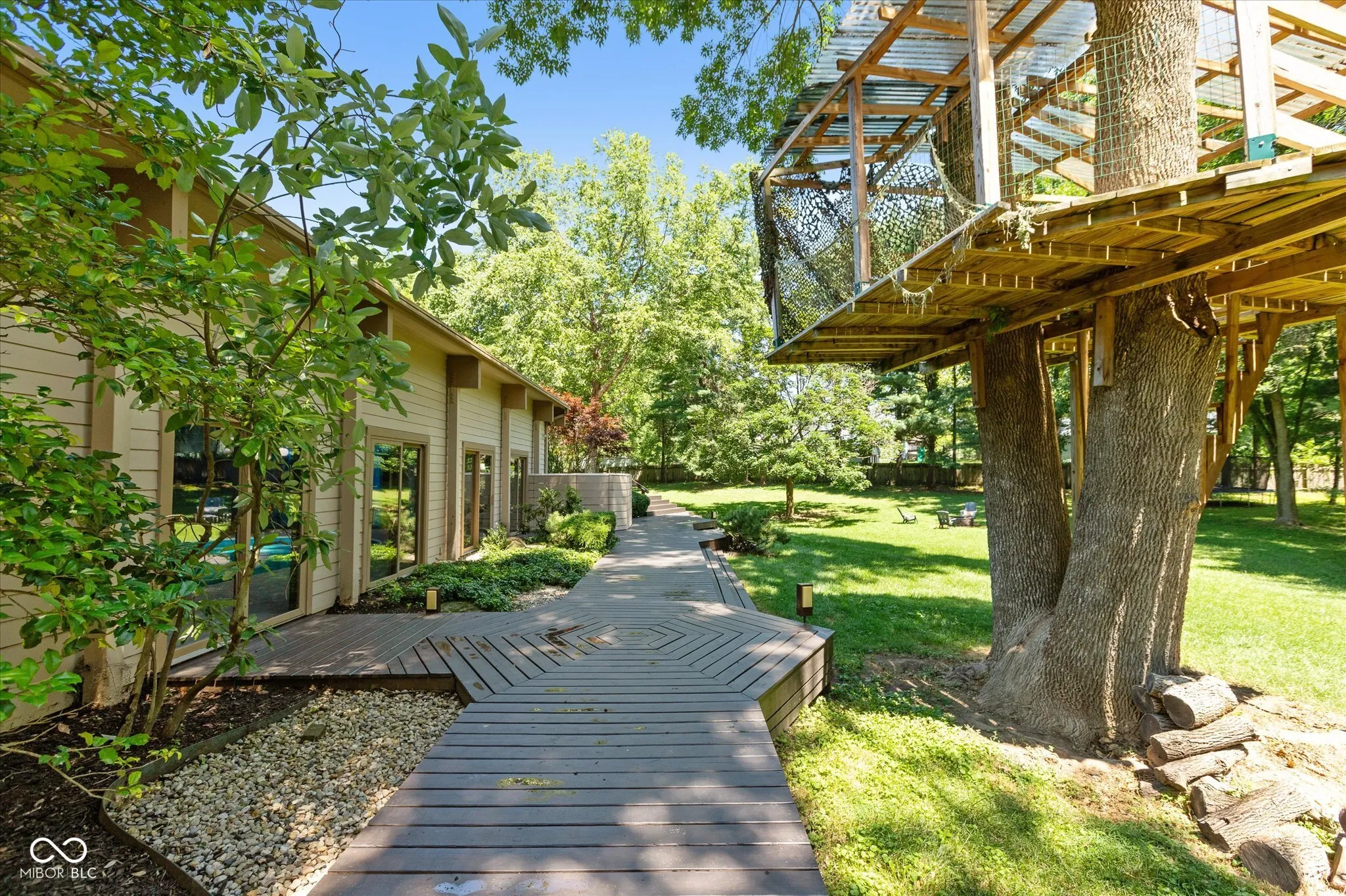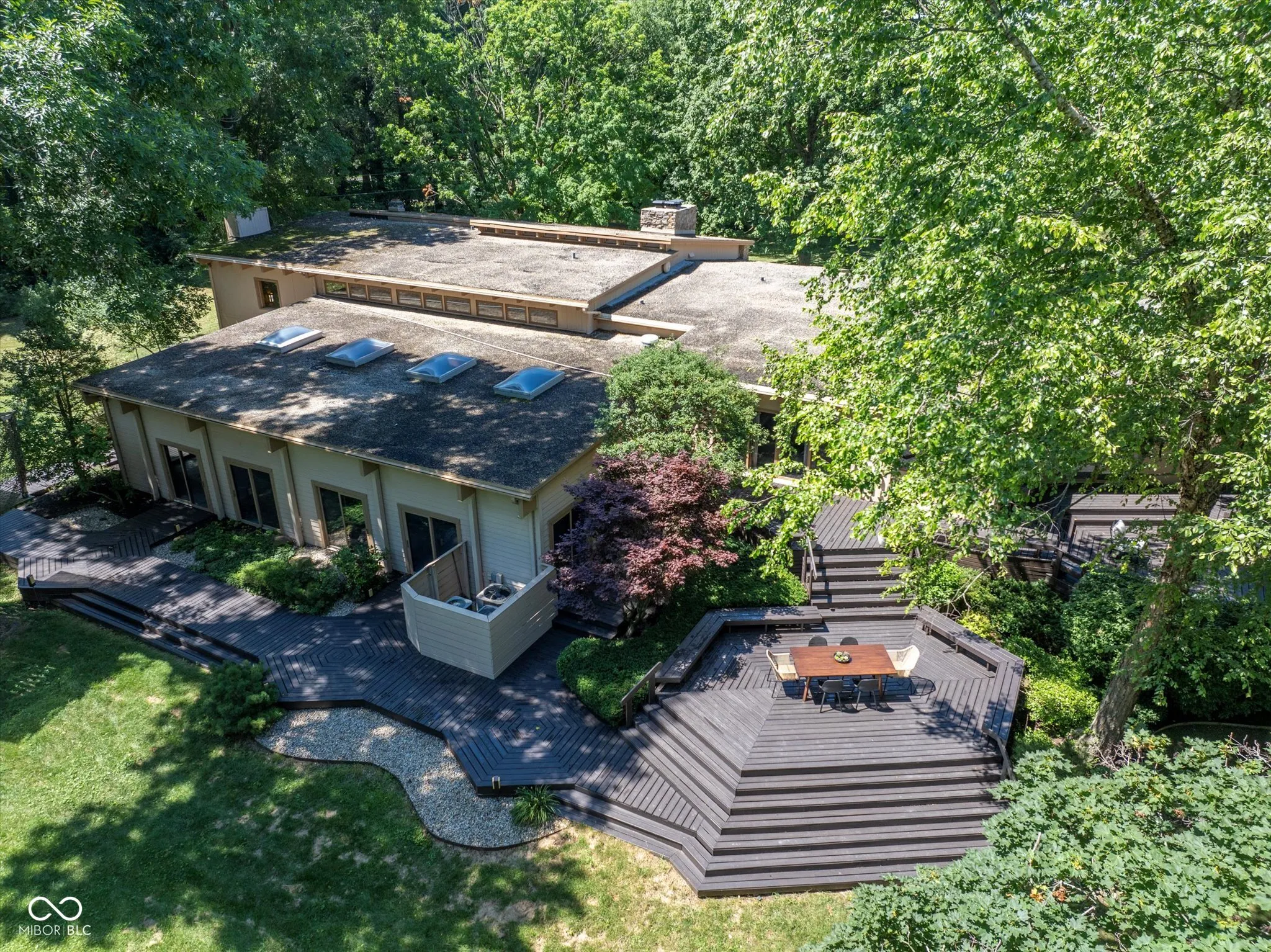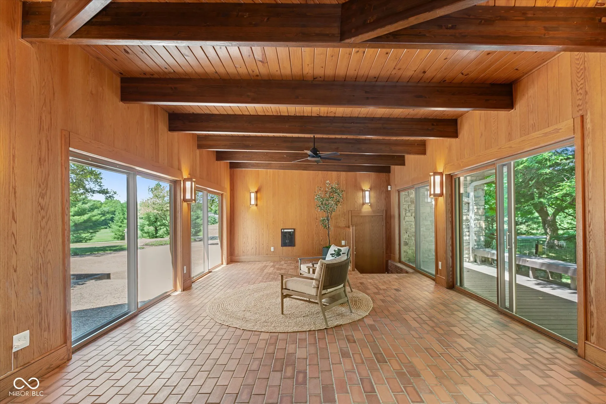 This exceptional property is one of a kind. Whether you seek a peaceful retreat or a home designed for entertaining, this midcentury modern gem exceeds expectations. The timeless design is characterized by exposed solid wood beams, expansive windows, an open floor plan, and a plethora of storage spaces. This charming home has an abundance of areas to host gatherings as it includes an indoor pool, rec room, wet bar, guest suite, tree house, trampoline, full wrap around deck, and sun room on 2 private acres in the heart of Carmel. Only a few minutes away from Carmel High School, the Carmel Arts & Design District, the Palladium, Hotel Carmichael, and Cafe Patachou the location could not be any more convenient. Highlights of this home include: an updated kitchen with solid wood cabinets, built in pantry, new backsplash, quartz countertops, undermount sink, & plumbing fixtures; new ceiling fans & light fixtures, new flooring (carpet/tile/LVP), and remodeled indoor pool area. Additionally, the garage features a transom window along with three clerestory windows to allow for both, privacy and natural light, an upper level storage space, built in cabinets with a work surface, & new Galaxy floor coating.