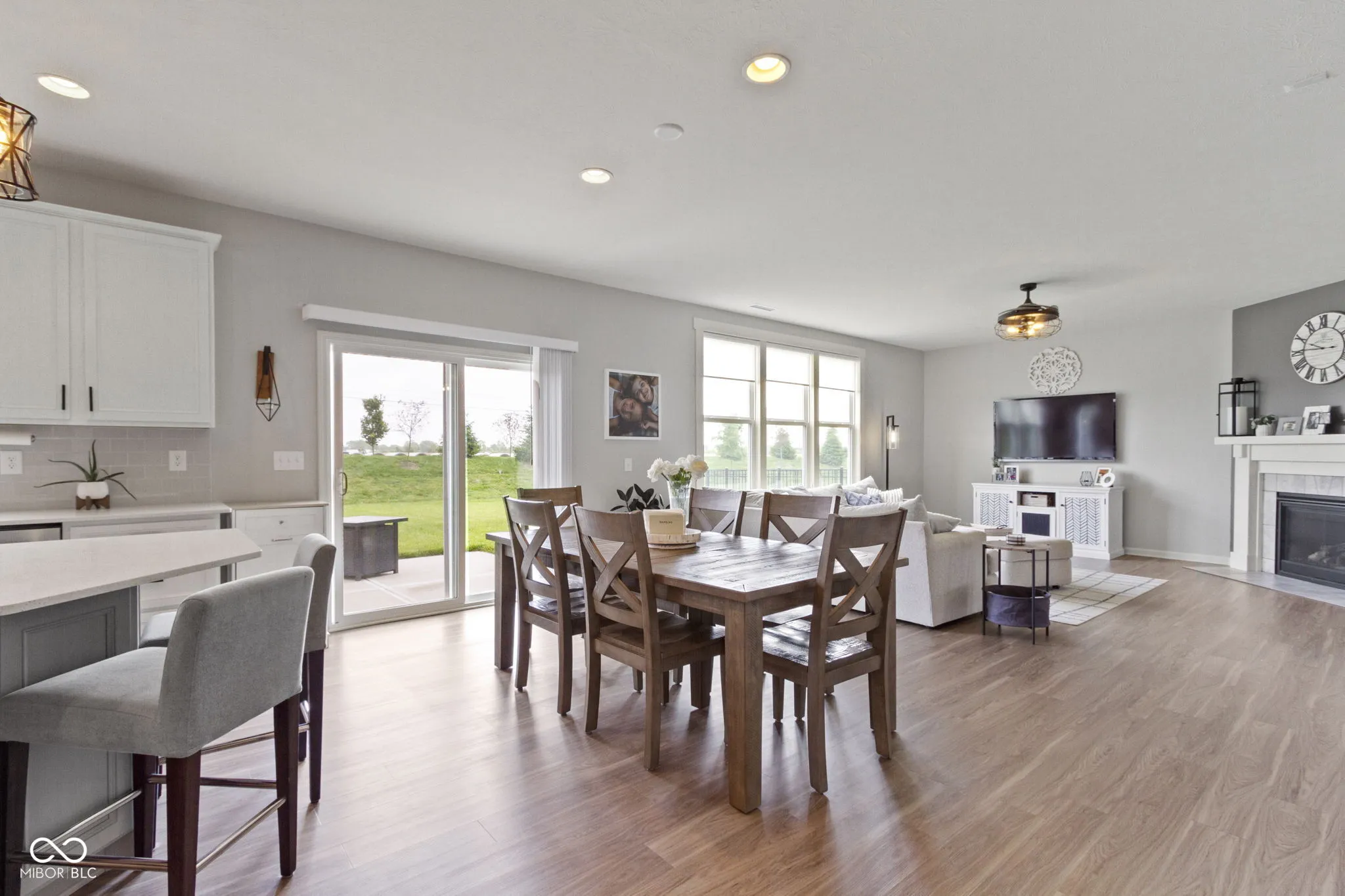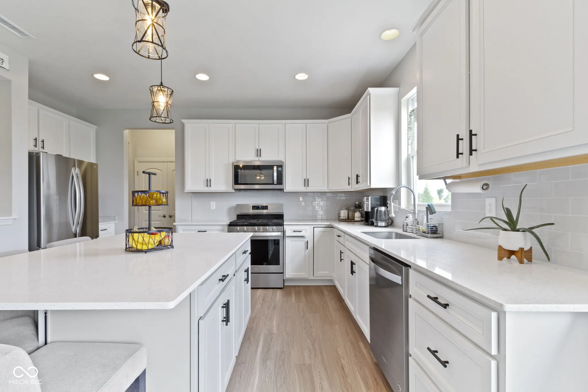 Welcome to your dream home in the desirable Hunters Run community in Fishers! This stunning two-story residence offers four spacious bedrooms, 2.5 bathrooms, and a 3-car garage, providing ample space and convenience for your family. The kitchen is a culinary delight with large center island, quartz countertops, subway stile backsplash, and large walk-in pantry. Also included off the kitchen is a cubby/planning center with cabinets and quartz counter tops adding extra functionality and charm. The main floor is open concept featuring a cozy fireplace with multiple rear windows that flood the space with natural light. The master suite features an oversized bedroom with a luxurious master bath, showcasing a walk-in shower, double sinks, and tiled floor. Conveniently located off the master suite is a super-sized laundry room complete with cabinets and a utility sink. Other features include storage closet under the stairs, framed out windows in the living room and main level bath, boot benches on either side of garage entrance, and the garage is insulated with finished drywall. All of this with a covered front porch and enormous open patio in the back yard. This home is thoughtfully designed with both style and functionality in mind. Don’t miss the opportunity to make this beautiful property your new home!