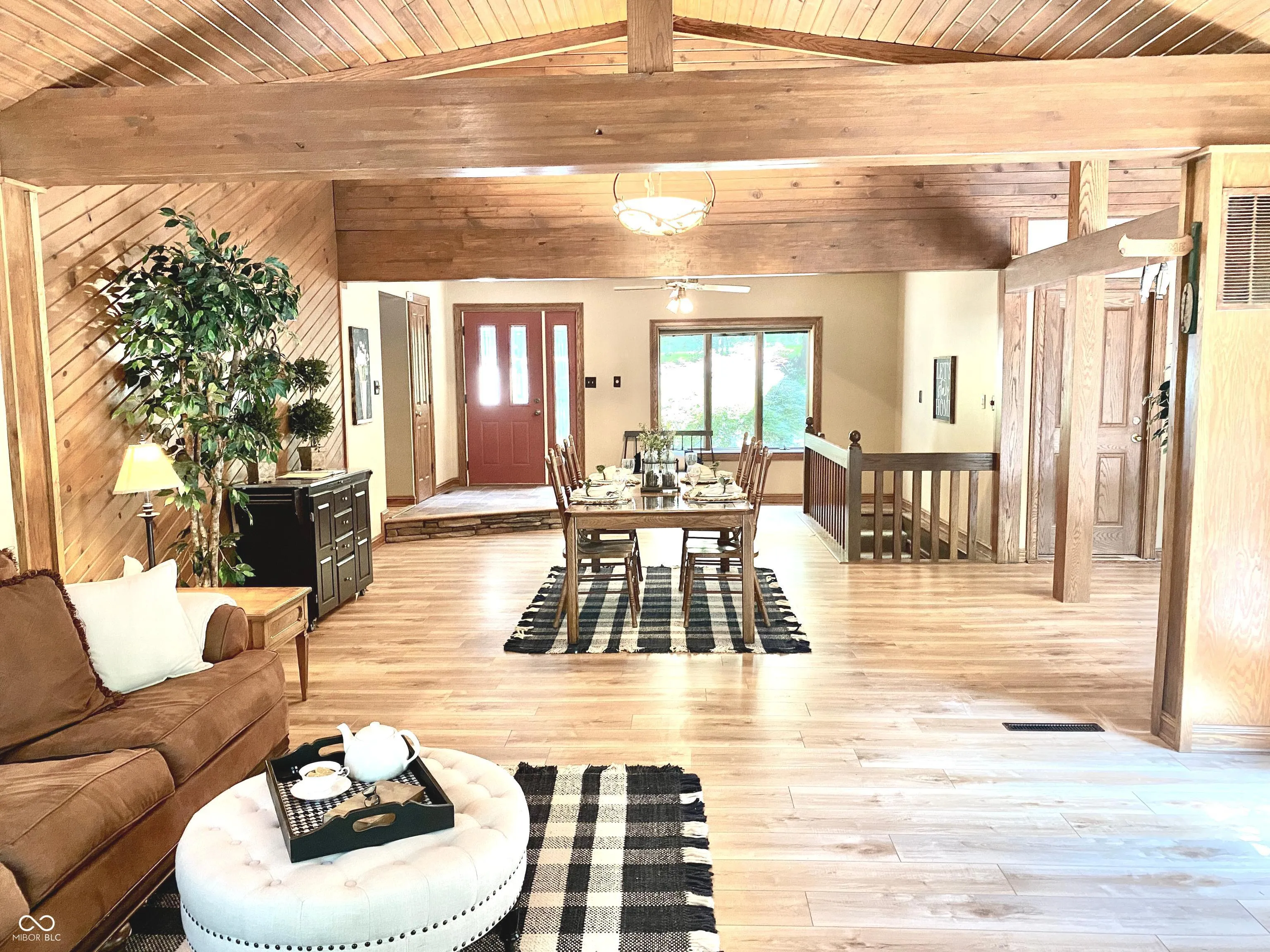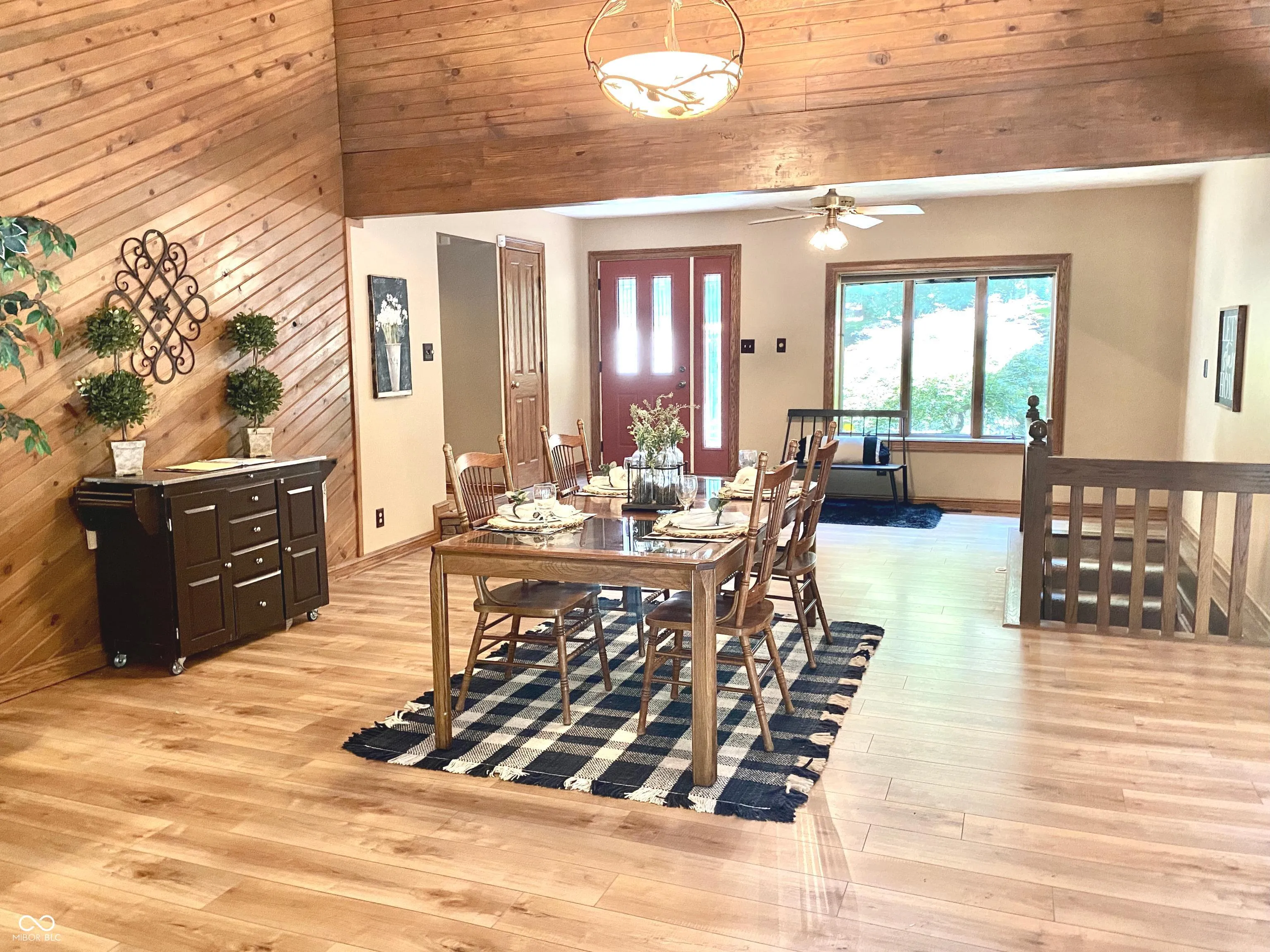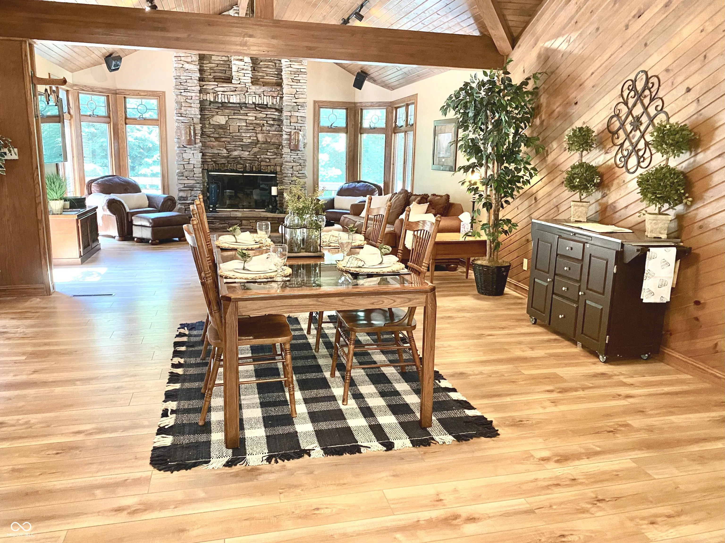 Enjoy lake living at its finest in this gorgeous 3498 sf ranch with an amazing finished walk out lower level. Nestled on a tree lined 0.91 acre setting, complete with multiple decks, Trex boat dock with electricity on desirable Lamb Lake. This home is the perfect blend of sophistication, comfort and large entertainment-ready spaces. Guests are greeted with a huge entry, bright & open floor plan, new luxury vinyl flooring & an abundance of windows to let the outdoors in. Exposed wood beams & soaring 12′ ceilings adorn the Kitchen, Dining & Great Room which also features a floor to ceiling stone fireplace & surround sound. The Main Level split floor plan offers 3 generous bedrooms, 2 full baths & a 2 sided gas fireplace in the Master BR/BA. The exceptional walkout Lower Level family room has a wood fireplace, pub style bar (complete with brass foot rail), media room, tile floors, oversize windows & full bath. Tranquil outdoor spaces include a gated stone entrance to the back yard, fountain, invisible fence, large gathering areas, a 70′ Trex walkway from the driveway to the front door, an oversized 624 sf, 2 car, side load garage with plenty of storage & an extra driveway with parking for 2 additional cars on the east edge of the property, located on Cardinal Point.