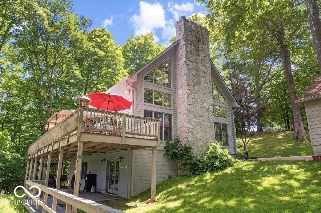 Say hello to your private sunset oasis on the pristine shores of Lake Holiday in Painted Hills. This exceptional waterfront home offers the perfect blend of luxury and tranquility. With 3 lots on this stunning 140-acre ski lake, this home is ideal for those who crave the ultimate lake lifestyle, but don’t want to sacrifice privacy for breathtaking views. Inside this beautifully designed home you’re greeted with soaring ceilings & a jaw dropping 2 story gas fireplace. With your primary bedroom boasting a loft, 2 closets & a primary bathroom, you’ll find 2 additional bedrooms on the main floor & a walkout basement that leads directly to your private dock. With every level offering its own living room, there is plenty of room to spread out. Your finished basement offers tons of storage, an additional gas fireplace, a full bar and surround sound for the entire house. Painted Hills is an exclusive lake community located 30 mins from Bloomington & Indianapolis where members enjoy a long list of amenities including a Dog Park, Playground & Pool, Private Restaurant & Bar in the Community Clubhouse, Pickleball, Basketball, Tennis, Volleyball, Horseshoes, Boat & RV Storage, a Beach, Community Events & So Much More! Enjoy access to the private amenities, live music events and enjoy the vibrant social scene with festive community parties. You won’t want to miss the spectacular 4th of July fireworks show or the Cedar Creek Music Venue with a Restaurant, Winery, Distillery & Brewery all within walking distance from your private dock. There’s always something exciting to look forward to in Painted Hills, but this waterfront home is the first to hit the market all year long! Imagine evenings spent by the water as you unwind from your day in this one of a kind lake house. This home is not just a residence-it’s a gateway to a life filled with adventure, relaxation, & unparalleled beauty. Don’t miss the chance to make this lakefront haven your own!