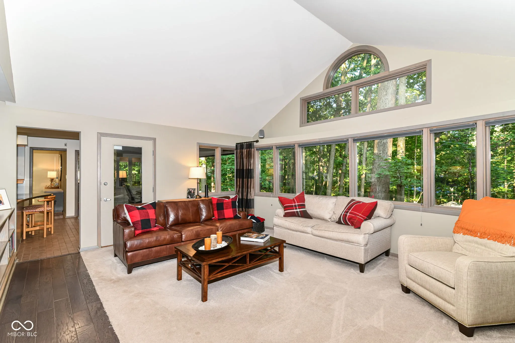 Private retreat situated on a large wooded lot backing to other wooded properties making it feel like you live on acres and acres of woods. Hard to find ranch with neat floor plan. Great Room with walls of windows, cathedral ceiling, gas fireplace and opens out to the screened porch all overlooking the woods. Adjacent, open Den with gas fireplace. Separate Dining Room with built-ins and hardwood floors. Updated Kitchen with new stainless appliances, breakfast bar, hardwood floors and skylight. Great Flex Room with walls of windows, heated floors, and access to a screened porch. Primary Bedroom with spacious bath with double sinks. Two additional Bedrooms, one with access to covered porch overlooking the woods. New Guest Bathroom. Lower level Exercise room and 2 car garage with epoxy floors. Separate Screened Porch/Gazebo situated in the woods out back. Roof new in 2020, and HVAC in 2017. Fenced rear yard.