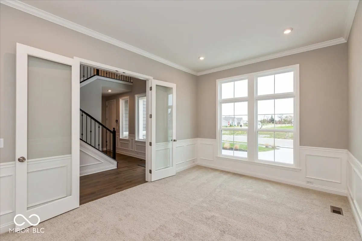 Stunning new Margot Modern Retreat plan by Fischer Homes in the beautiful community of The Cove featuring a welcoming covered front porch. Once inside you’ll find a private 1st floor study with double doors. Open and airy with an island kitchen with built in stainless steel appliances, upgraded maple cabinetry with 42 inch uppers and soft close hinges, durable quartz counters, huge walk-in pantry and walk-out morning room and all open to the dramatic vaulted family room with gas fireplace with stone surround. 1st floor primary suite includes an en suite with a double bowl vanity, free standing tub, walk-in shower and 2 walk-in closets. Upstairs are the remaining 3 bedrooms each with a large walk-in closet, a centrally located hall bathroom and spacious loft. Full basement with full bath rough-in and a 3 bay side and front load garage.