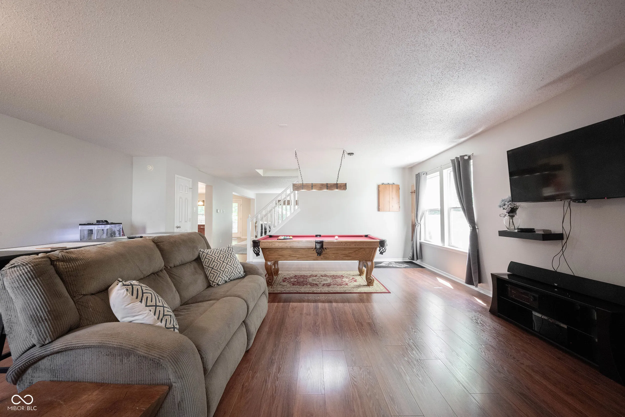 Space and privacy! This beautifully updated home, boasting over 3,500 sq ft, backs up to a serene wooded nature preserve. Recent updates include freshly painted interiors and new carpet. Enjoy the elegance of laminate/wood flooring throughout most of the main level. The home features four generously sized bedrooms and a large loft. The updated kitchen boasts stainless steel appliances, a single sink bowl, and a breakfast bar, all open to the family room with a brick hearth gas fireplace. The main level includes an office, walk in pantry, and additional great room for entertainment. The master bathroom has been nicely updated. All appliances, including the washer and dryer, are included. Community Playgrounds/Basketball. Water Heater 2022. Located within the highly regarded Hamilton Southeastern Schools district, the home is just minutes from Hamilton Town Center and offers easy access to SR 37 and I-69.