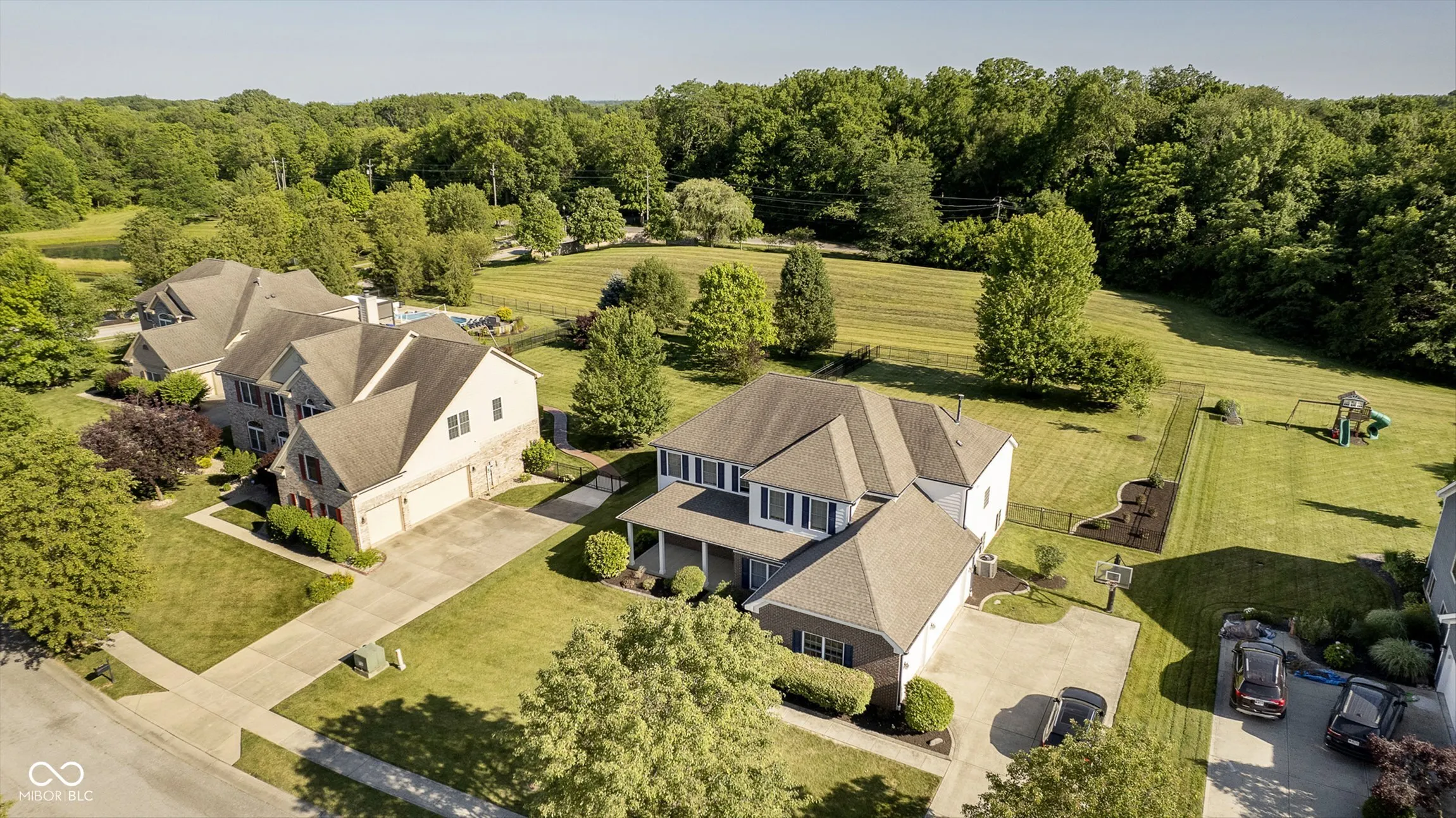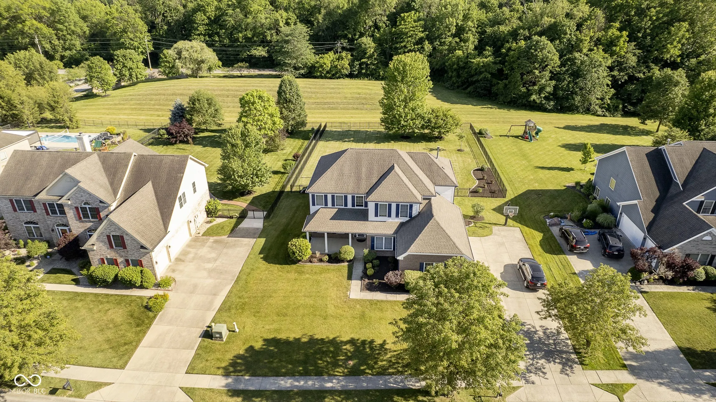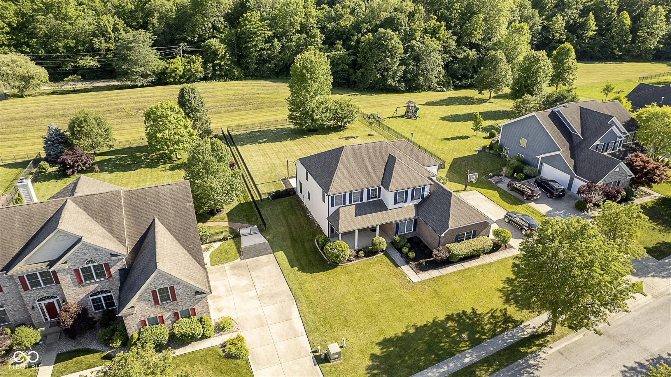 READY FOR MOVE IN! Back on the market and better than before! NEW ROOF and GUTTERS. MUST SEE this beautiful and stately 4BR/3BA home in desirable Timberview at Eagle Creek! Unique and desirable multi-tier floorplan is open and airy with custom trim/molding and sleek flooring throughout. GRAND 2-STORY GREAT ROOM with impressive floor-to-ceiling brick fireplace. Spacious and open gourmet kitchen is a chef’s dream with custom cabinets, robust Corian counters, and high-end SS appliances. Splendid formal dining room and separate office are superbly placed. Unique tiered upper-level provides a private primary suite with trey ceiling, double sink vanity, tile bath flooring, and large walk-in closet with custom shelving. Secondary BR’s are generous. The hallway bath has been updated and offers an exceptional and hard-to-find WALK-IN STEAM ROOM. Spotless finished basement features large bonus room and wet bar with daylight windows. A few more steps down offers tons of storage and unfished space with rough-ins for unlimited options. Sliding glass doors off the breakfast area open to a large concrete patio w/ electric awning, lush landscaping, and HUGE FULLY FENCED BACK YARD. HALF ACRE LOT. 3-car side load garage w/ EV outlet. WONDERFUL LOCATION has you minutes to Eagle Creek, Traders Point, interstate access, and a variety of shopping and dining.