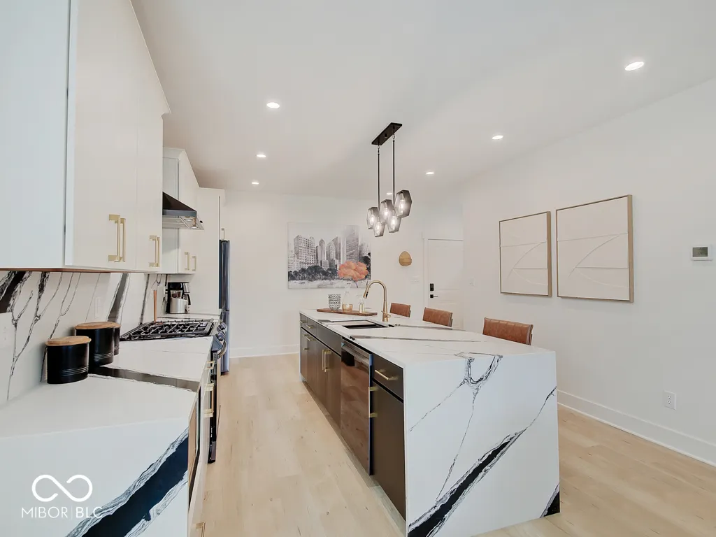 Step into this BRAND NEW gorgeous home in the heart of Fountain Square. Home features 4 Bedrooms and 3 1/2 Baths including full BR/Bath in fully finished basement. This home has ALL THE UPGRADES. Large open floor plan with tall ceilings and luxury vinyl plank throughout. Gourmet kitchen features hard surface counters and back splash, black stainless appliances, oversized waterfall island and beautiful white cabinets. High end electrical and plumbing fixtures all through the home. Tankless water heater and water softener included. 3 BRs and 2 full baths on the 2nd floor. Primary Owner Suite includes walk in closet, lush bathroom with tiled shower and an over 400 SF deck off the back complete with lighting for your social gatherings large or small. Basement includes large living space and wet bar All of this AND a rare ATTACHED 2 car garage.