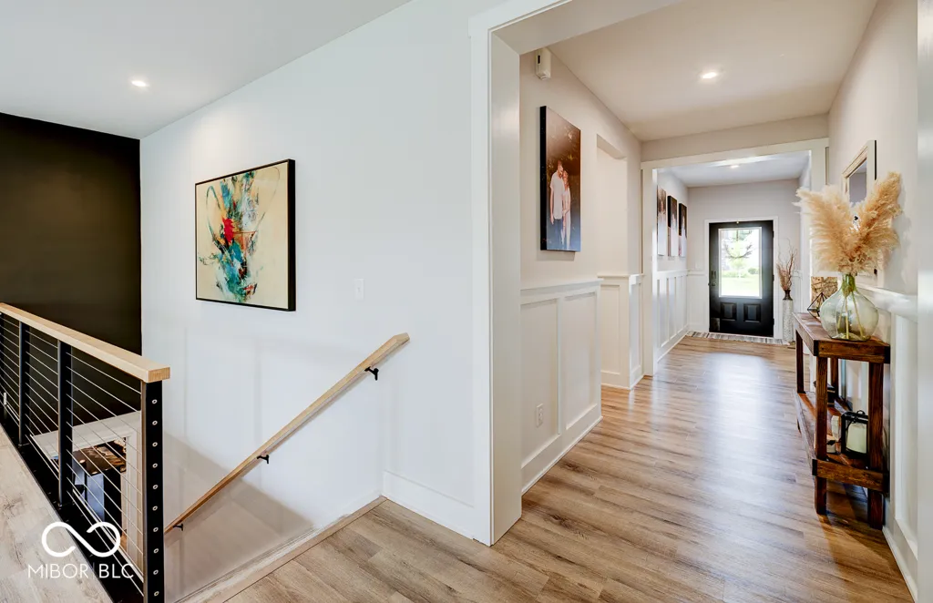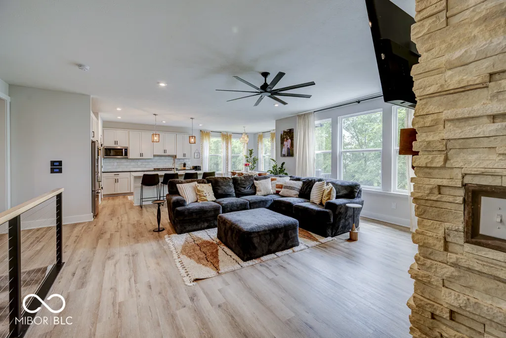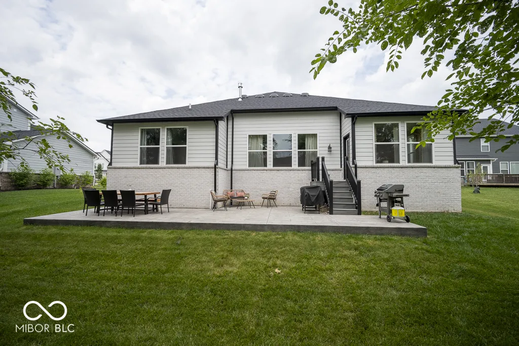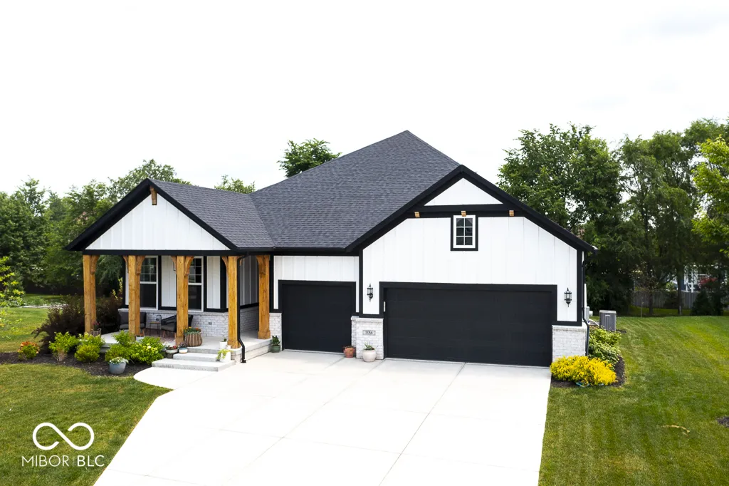 Seller is very motivated! Home Sweet Home! Enter this meticulous 3 year old open concept home were a spacious covered front porch beckons with /wide front stairs leading to an inviting foyer adorned with elegant wainscoted walls. Inside, discover a seamless blend of style and functionality with sophisticated black interior door, recessed lighting, durable LVP flooring soaring under 9 ft. ceilings. Each bedroom features overhead lighting/fans and spacious walk-in closets. The kitchen is a chef’s dream, boasting a farmhouse sink, expansive shiplap island with ample seating, plenty of cabinet storage and countertop space, tiled backsplash, double ovens, s/s appliances, large pantry and gas cooktop. Gather in the Living Room around the cozy stone gas fireplace, perfect for cooler evenings. Retreat to the Master Suite, complete with a tiled walk-in shower , double sinks and generously sized walk-in closet. Bathrooms feature tiled floors and half bath has a decorative tile wall. Downstairs, the basement offers additional living space (35×34)w/ brand new wet bar, a full bathroom w / extra large tiled shower and versatile rooms ideal for an office, bedroom, many possibilities and extra storage room (33×18). Outside, enjoy the inviting stamped decorative concrete patio, ideal for relaxing and entertaining guests. Close to Morse Reservoir and minutes away from downtown Noblesville. Home will not last long!