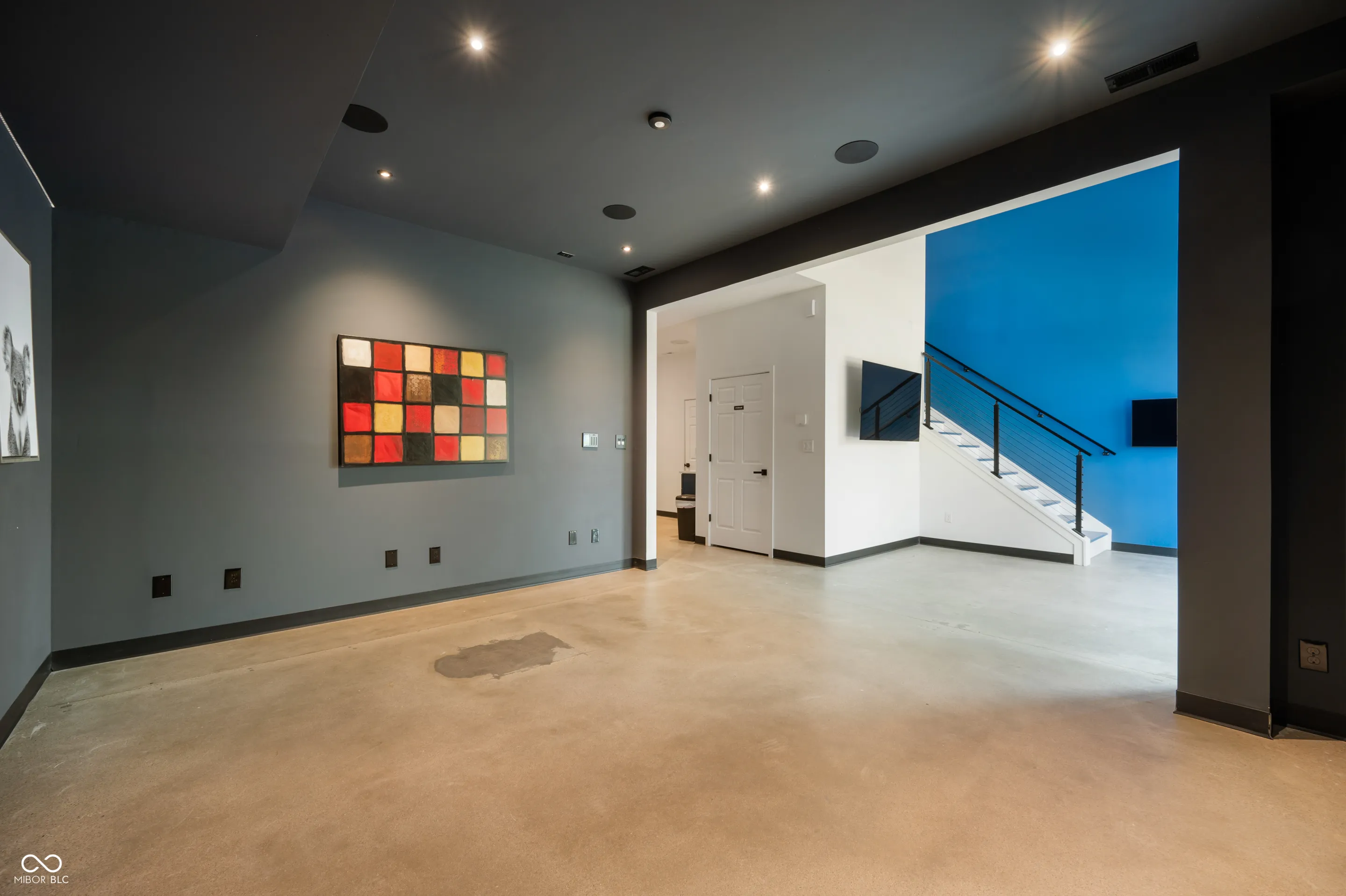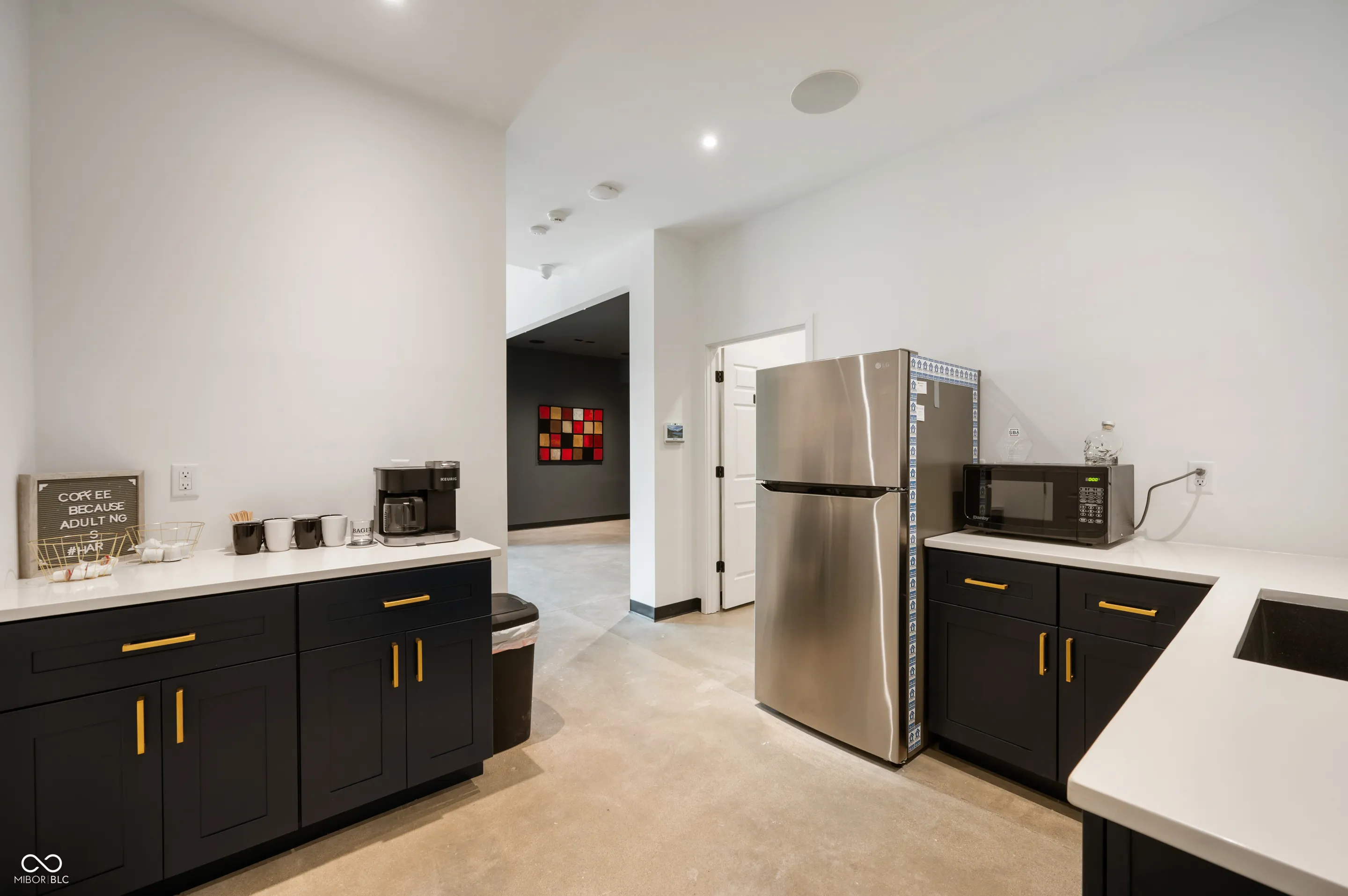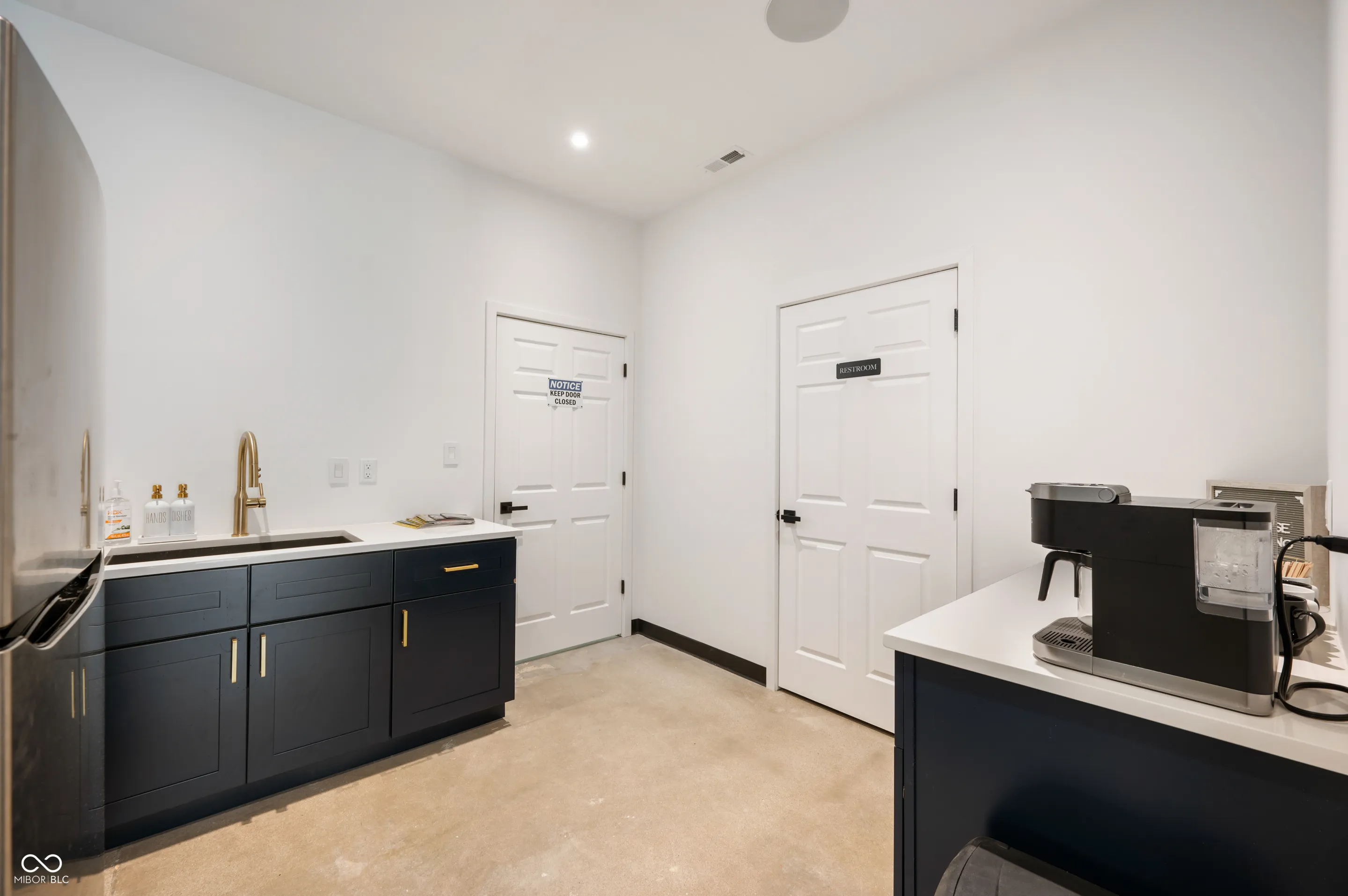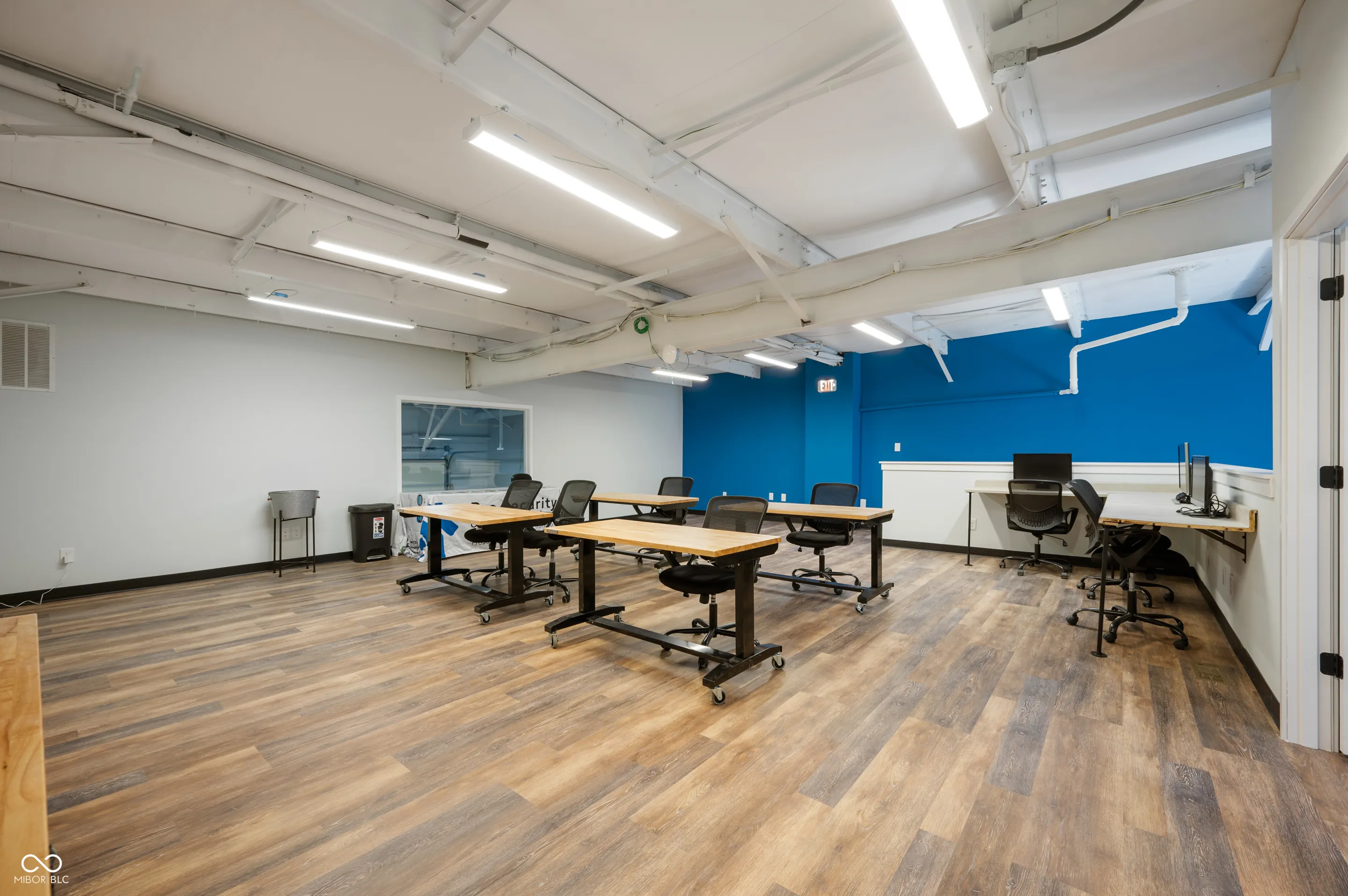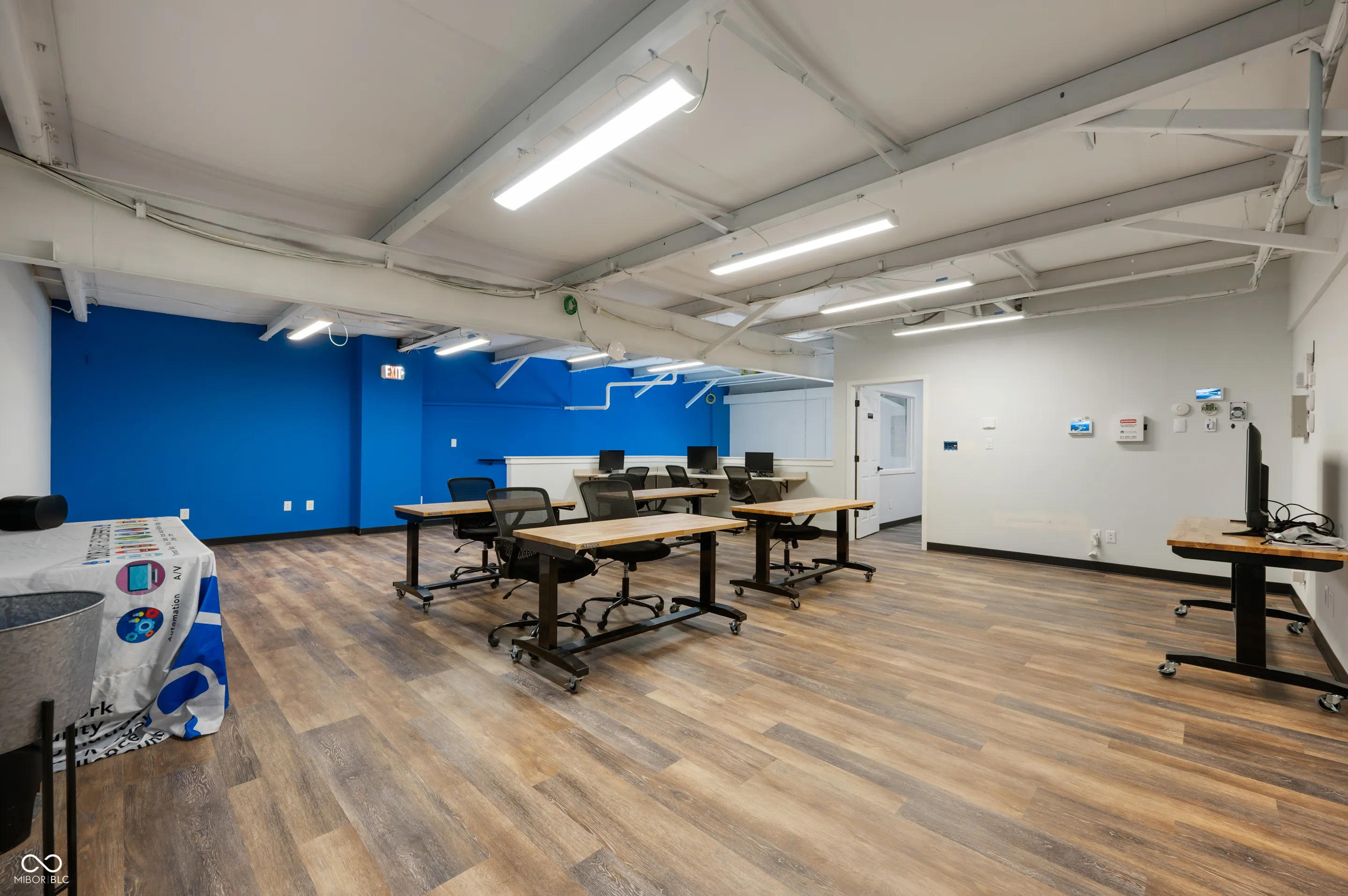 Great location, close to downtown Fishers and I-69! This new construction office and warehouse space was finished in 2023. The main level includes a conference room, office, bathroom and kitchen with quartz countertops, oversized sink, refrigerator, microwave and coffee bar. Finishes include 10 ft ceilings, concrete floors, recessed LED lighting, smart thermostat, built-in speakers, security system w/ monitored smoke alarm, fiber optic boosted internet and is loaded in the tech dept. The warehouse provides 1,000 sqft, two 14 ft overhead garage doors, 2 rear access doors, 21 ft ceilings, concrete floors, built in cabinets and countertops for additional workspace and a 2nd bathroom. The upper level has LVP flooring, an executive office and large training room that is pre-wired for approximately 15 desk spaces with data jacks located every 6 ft. Oversee the warehouse space from the large window in the training room. Take advantage of this well designed space for your business!