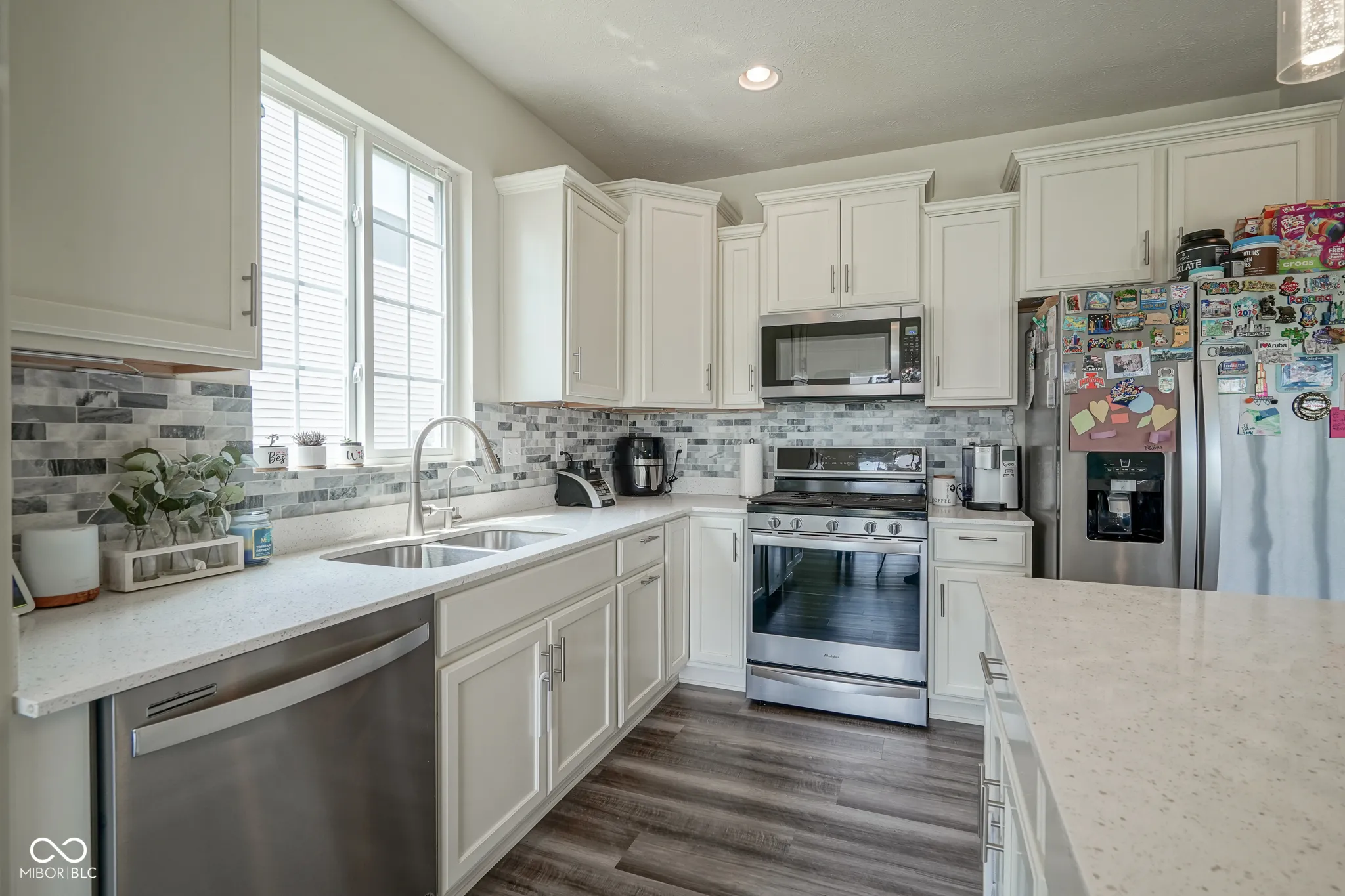 This beautiful Harvest Park home offers a premium lot which provides extra space, natural light from multiple directions and an open feel. The first floor features a gorgeous, open living concept with all white kitchen and cozy living room with fireplace. The 4th bedroom and full bath on the main floor provides value and flexibility for those who work from home, have guests or need a flex room for kids. The second floor also offers a spacious loft which can be turned into a great family room, playroom, media room, or even a music room – the possibilities are endless. The primary bedroom is surrounded with great natural light, a spacious walk-in closet, dual vanities and tiled walk-in shower. This home is very loved and has been well maintained offering recent upgrades such as fully finished garage, reinforced attic for storage, new floor tile in the 2nd bath on upper level, kitchen backsplash, under cabinet lighting in the kitchen, all new cabinet hardware in kitchen and baths, 15×15 concrete patio, water softener and RO, custom blinds, along with wall decor in living room and loft! Enjoy being close one of several playgrounds and the walking trail! The neighborhood is conveniently located near Main Street Park, shops, restaurants and with quick access to highway. 6605 Overlander is move-in ready and a must see!