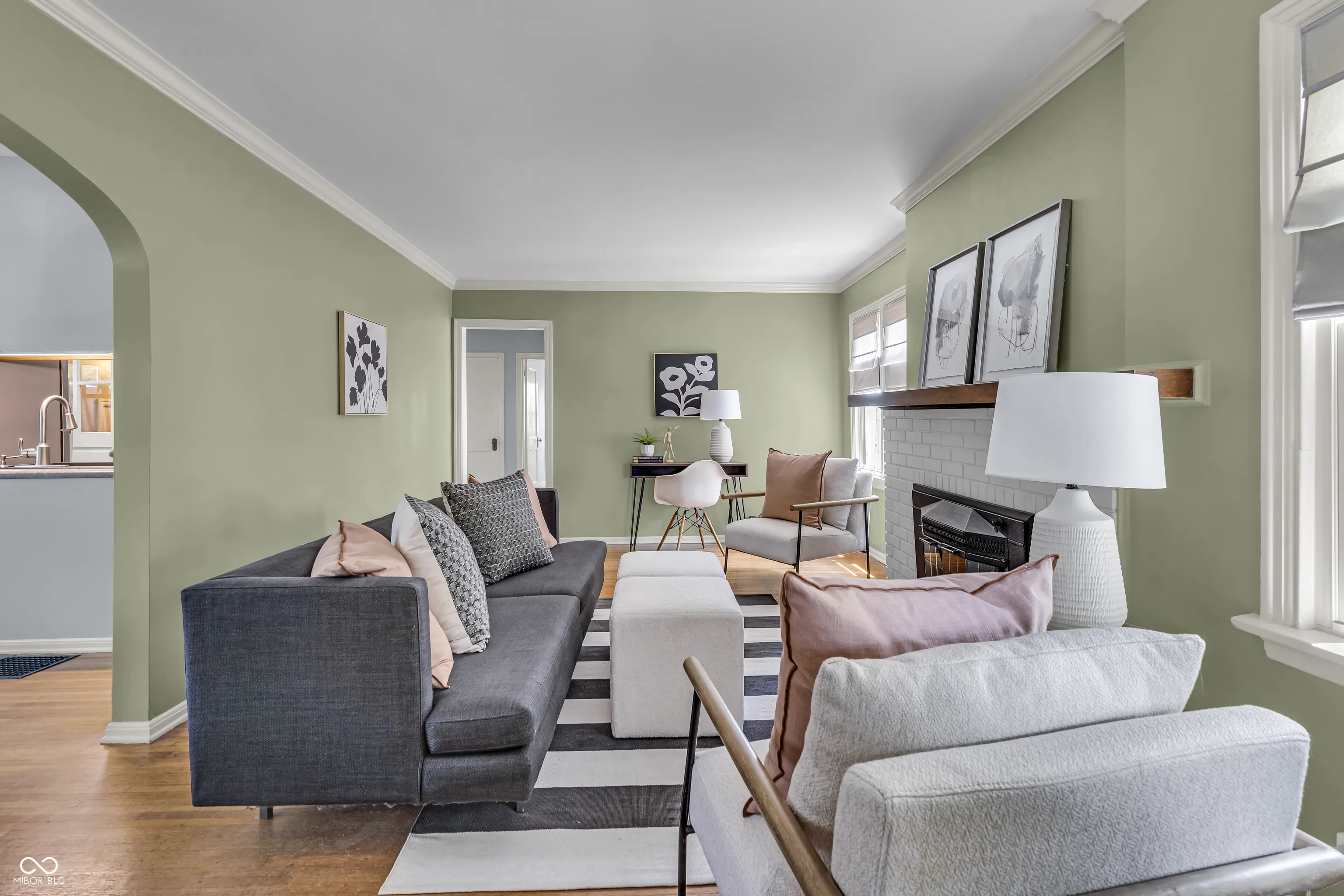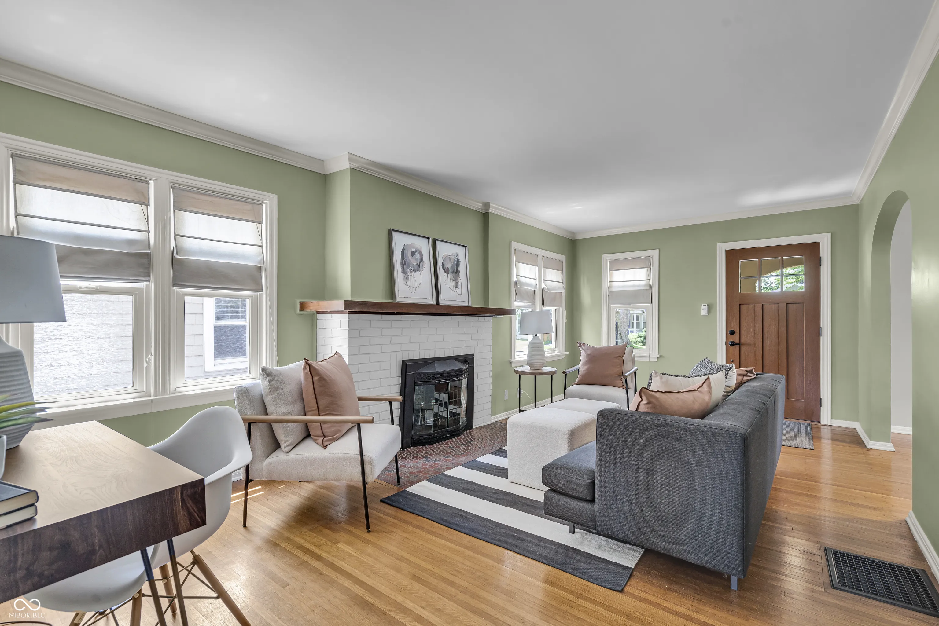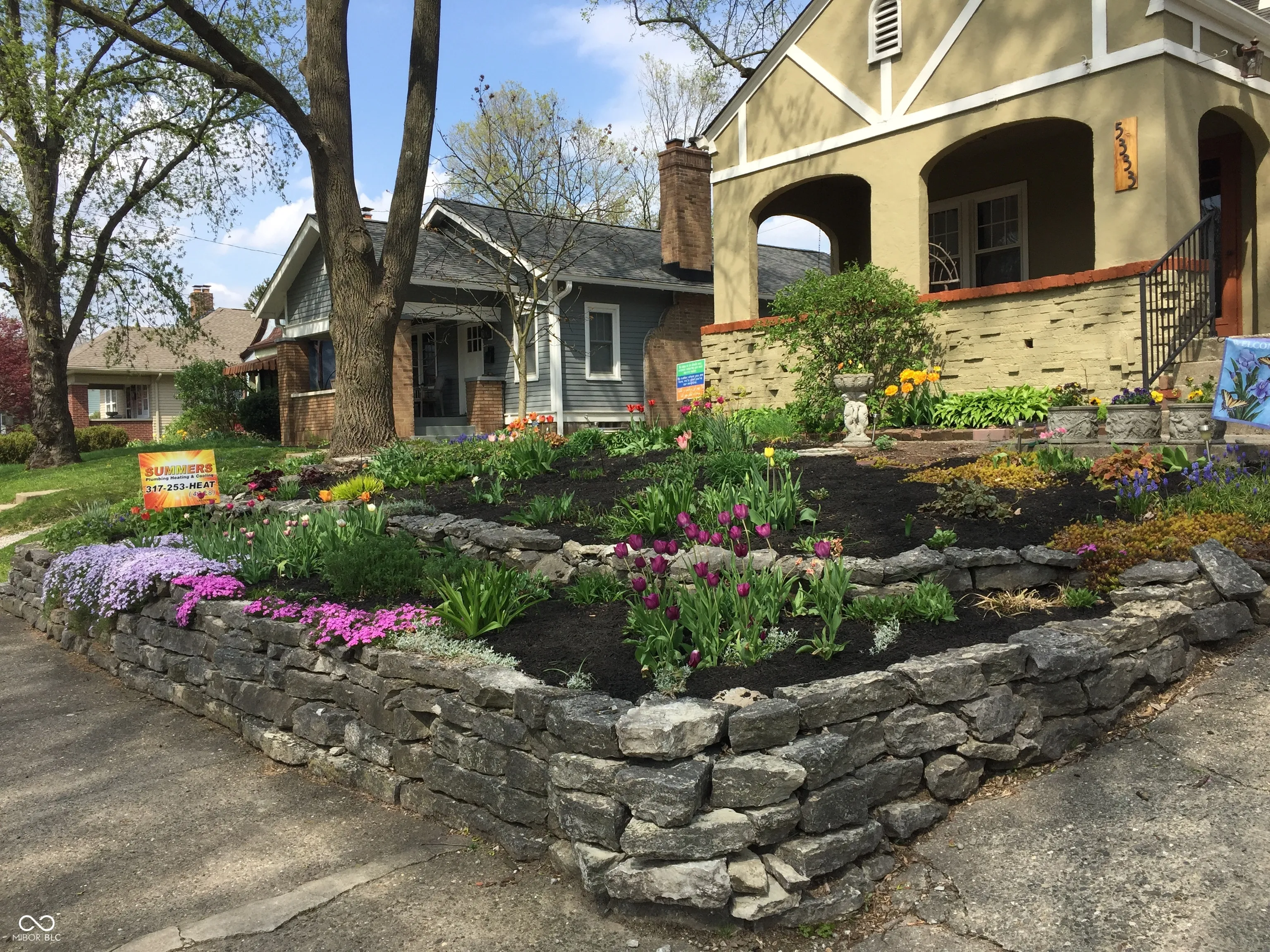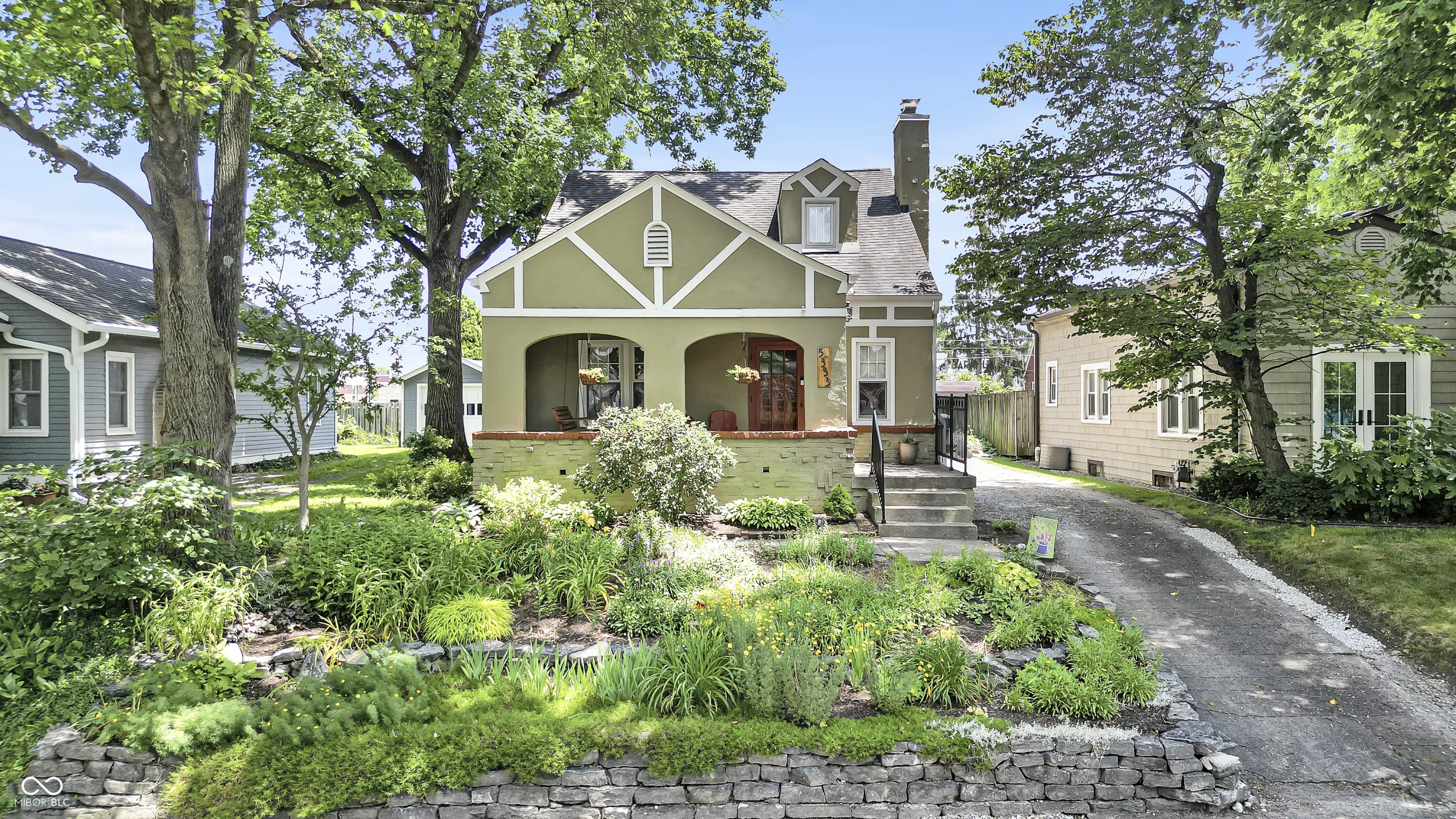 This one is a honey. Meticulous care and updating, it’s just a stone’s throw from Forest Hills, the Monon Trail, entertainment, restaurants, Fresh Market. Enjoy a respite on the cobblestone patio with gorgeous perennial landscaping and the rippling of water garden. Serenity! Fenced. Perennials bloom all season in the front terraced yard, too. No mowing! Updated kitchen and bath. Hardwoods. Arch. Decorative brick fireplace for ambiance. Thermal windows; glass block in bath & basement. The ah-ha is the 2d floor grand space. Perfect for primary bedrm, Add a bath & add value– plenty of space here– and with windows and space it’s better than a finished basement. Lots of closets on 1 & 2. Main water line from st replaced; interior pipes are copper. No lead! Your heart will sing.