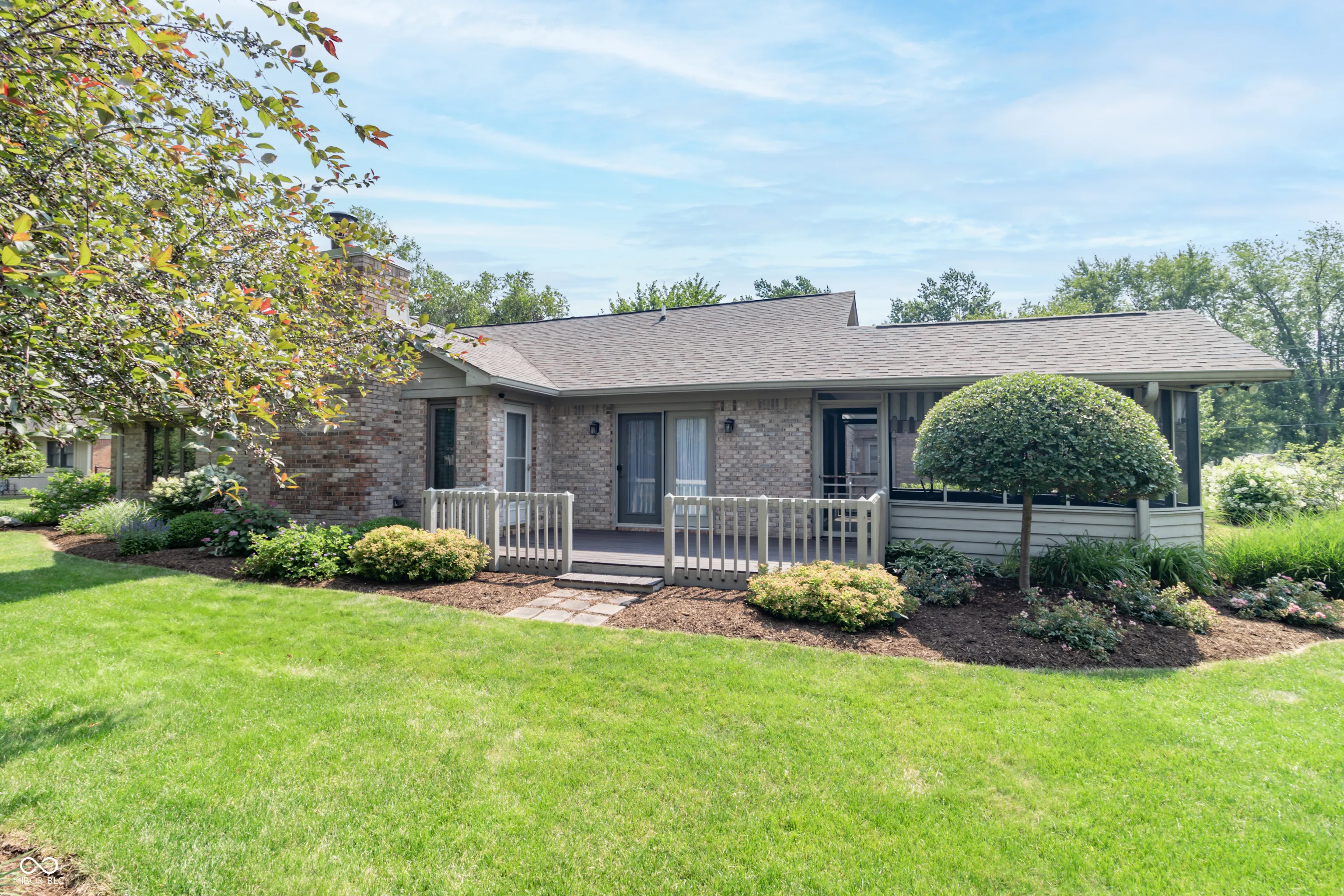 Check out this charming 3 bedroom two & half bath all-brick ranch with modern upgrades! With 2200 Sq. Ft. of living space, this property offers both comfort & convenience! The spacious kitchen boasts elegant quartz countertops & ample cabinet space. The large center island with cabinet storage underneath is great for meal prep and gatherings! All stainless steel appliances less than a year old! Enjoy casual meals in the eat-in kitchen or at the breakfast buffet with additional storage. Inviting family room (19×15) with cozy fireplace creates a warm & enticing ambiance! An access door that leads to the back deck is where everyone can relax & enjoy the well groomed landscaping or host dinner parties in the formal dining room with dual access to the back deck & screened in patio! Grill on the deck and savor your meal in peace on the screened in porch. Two big bedrooms (12×10) that share a full hall bath ideal for family or guest. Large (16×12) primary suite with vaulted ceiling, a large walk-in shower, skylight, dual sinks, & generous walk-in closet! Flexible office or craft area (23×8) offers lots of cabinet space for customization! Big fully finished two car garage & additional storage available in the mini barn out back (12×10).
