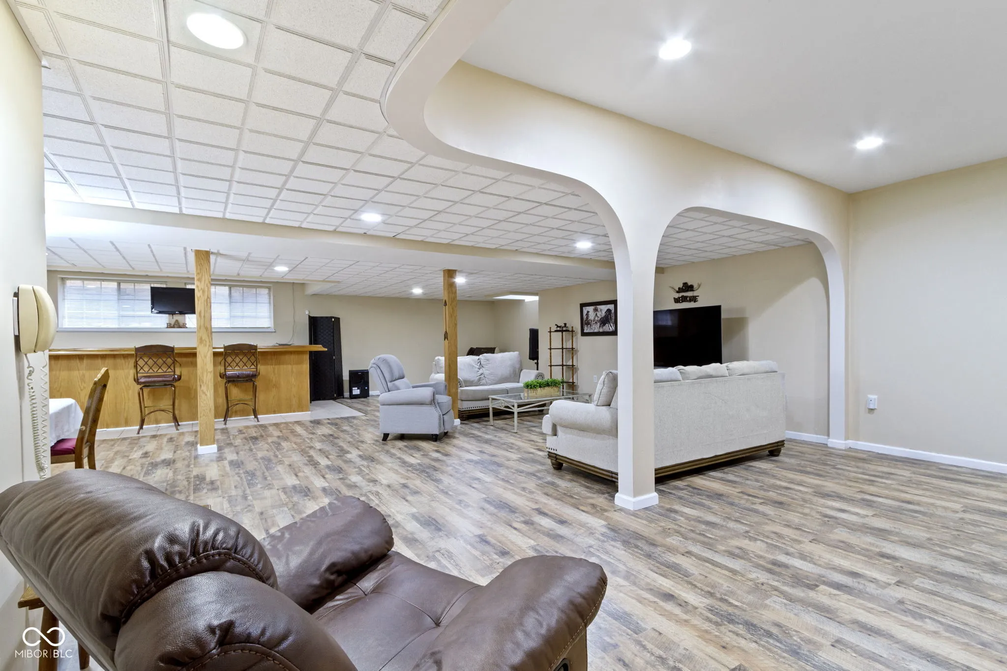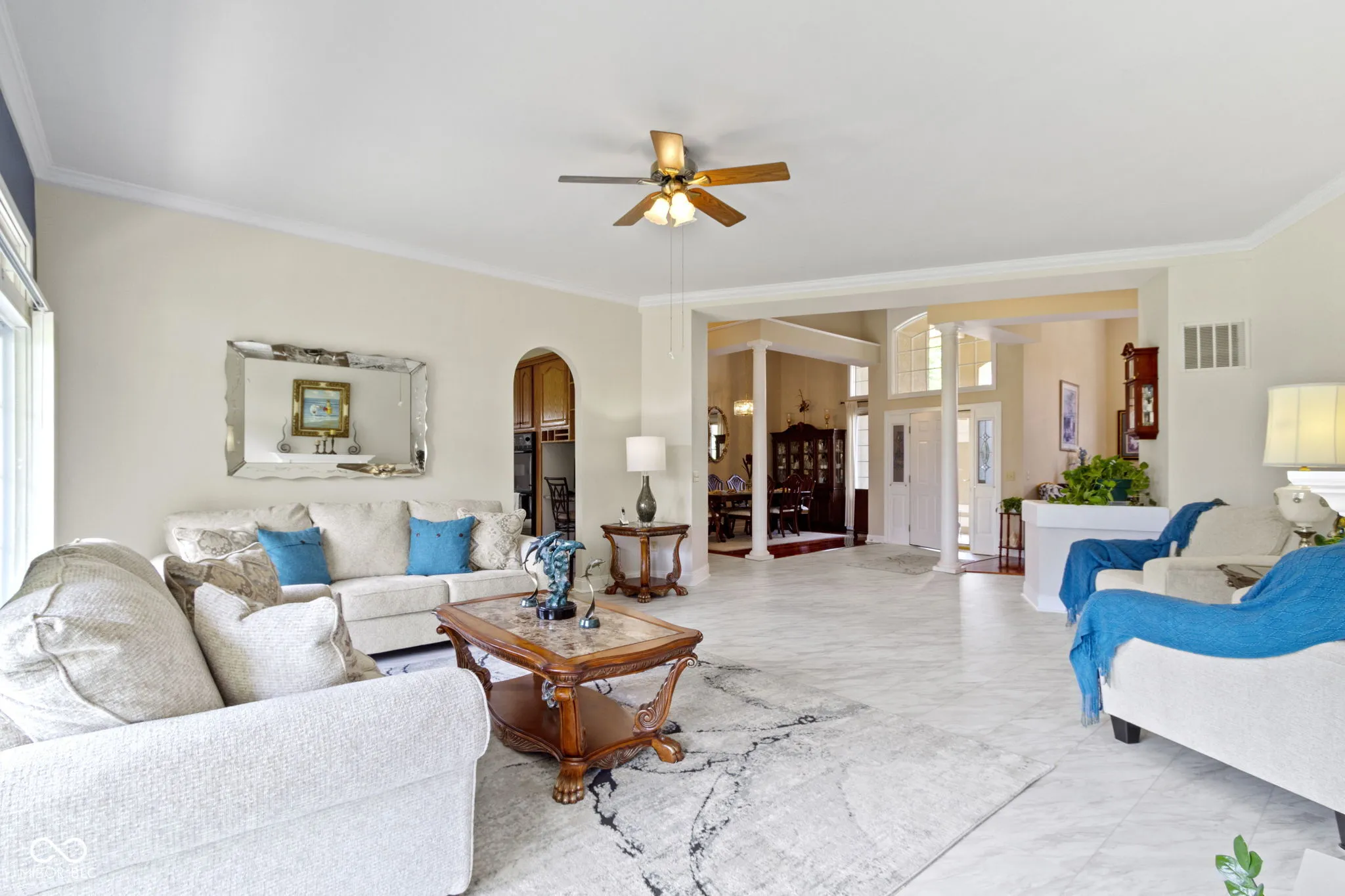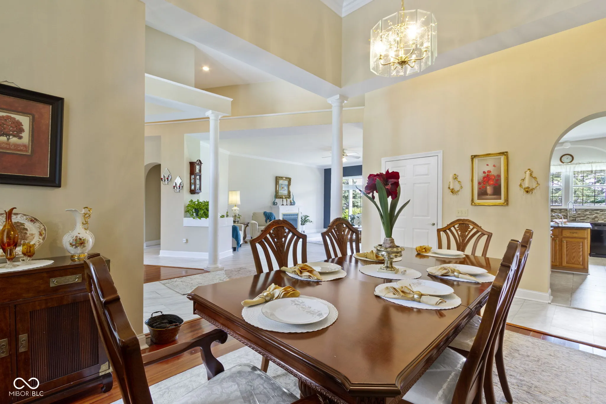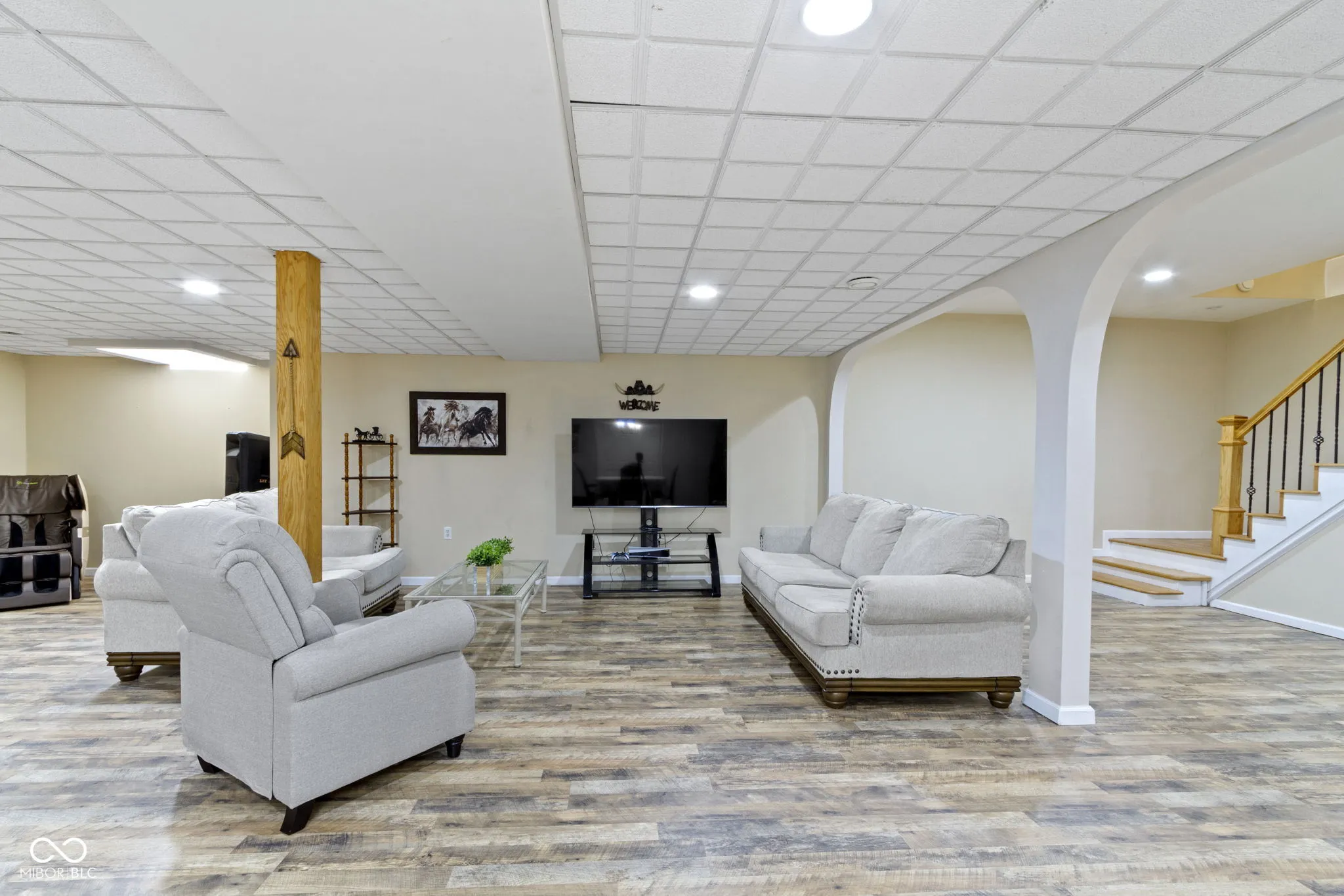 Welcome Home to Austin Place in desirable Springs of Cambridge! This 5 bed/4 bath ranch home welcomes you with stately curb appeal and covered front porch. Walk into the foyer drenched in natural light. The dining room and sitting room/office flank the foyer with beautiful hardwood floors. The large great room features a gas fireplace and two sliding patio doors with transoms for lots of natural light. Large kitchen with island, tile backsplash, plenty of cabinets, large pantry, and breakfast bar. Primary bedroom with beautiful hardwood floors and private entry onto the patio. En suite, primary bathroom featuring dual sinks, shower, and soaking tub. Two additional bedrooms and bathrooms on the main floor. You will be convenieced by a laundry room on each floor. Finished basement with luxury vinyl plank throughout perfect for entertaining or seperate living. Kitchenette, two additional bedrooms, and full bath complete the finished basement. Additional room added to the basement with a closet that can be used as a 6th bedroom, flex room or den. Backyard patio spans the entire back of the house and is nice for relaxing. Award winning HSE schools. Close to shopping, dining, and entertainment!