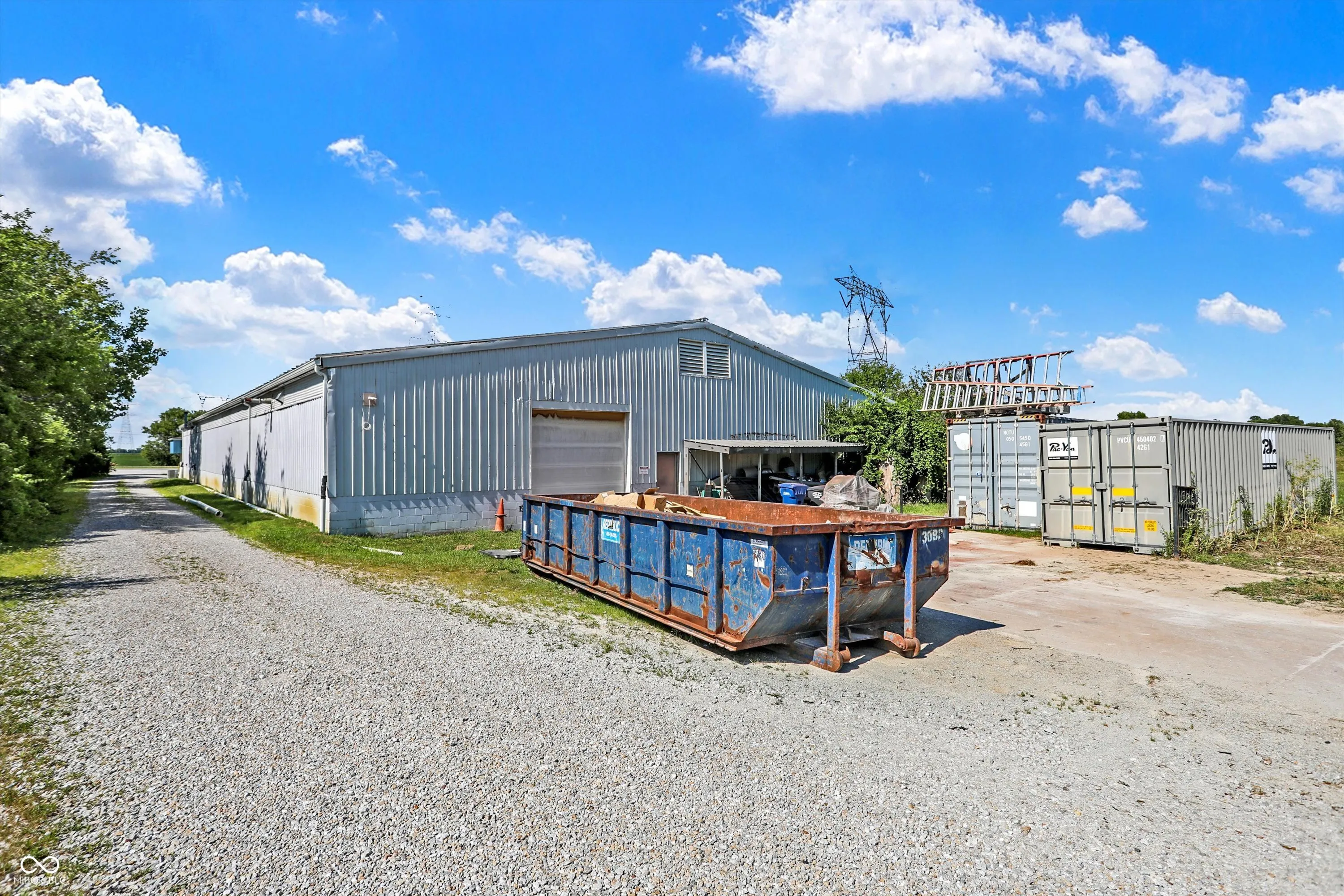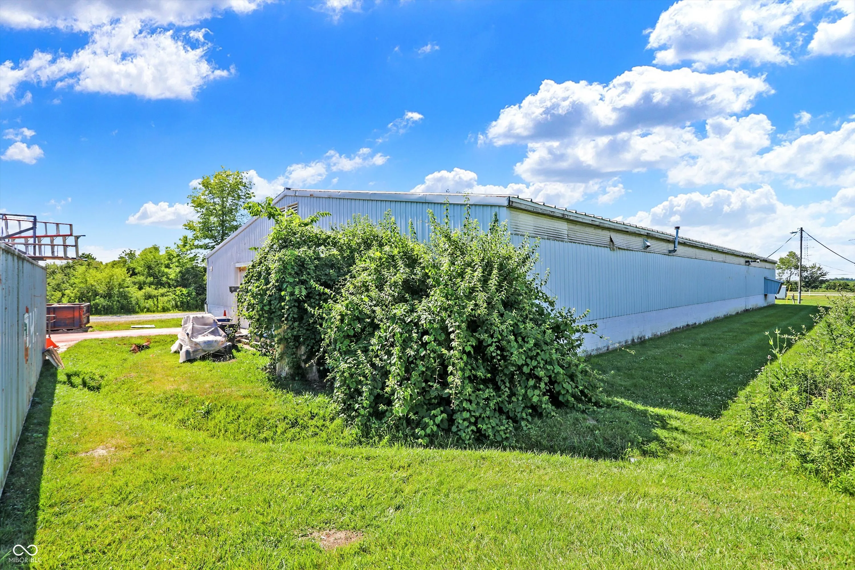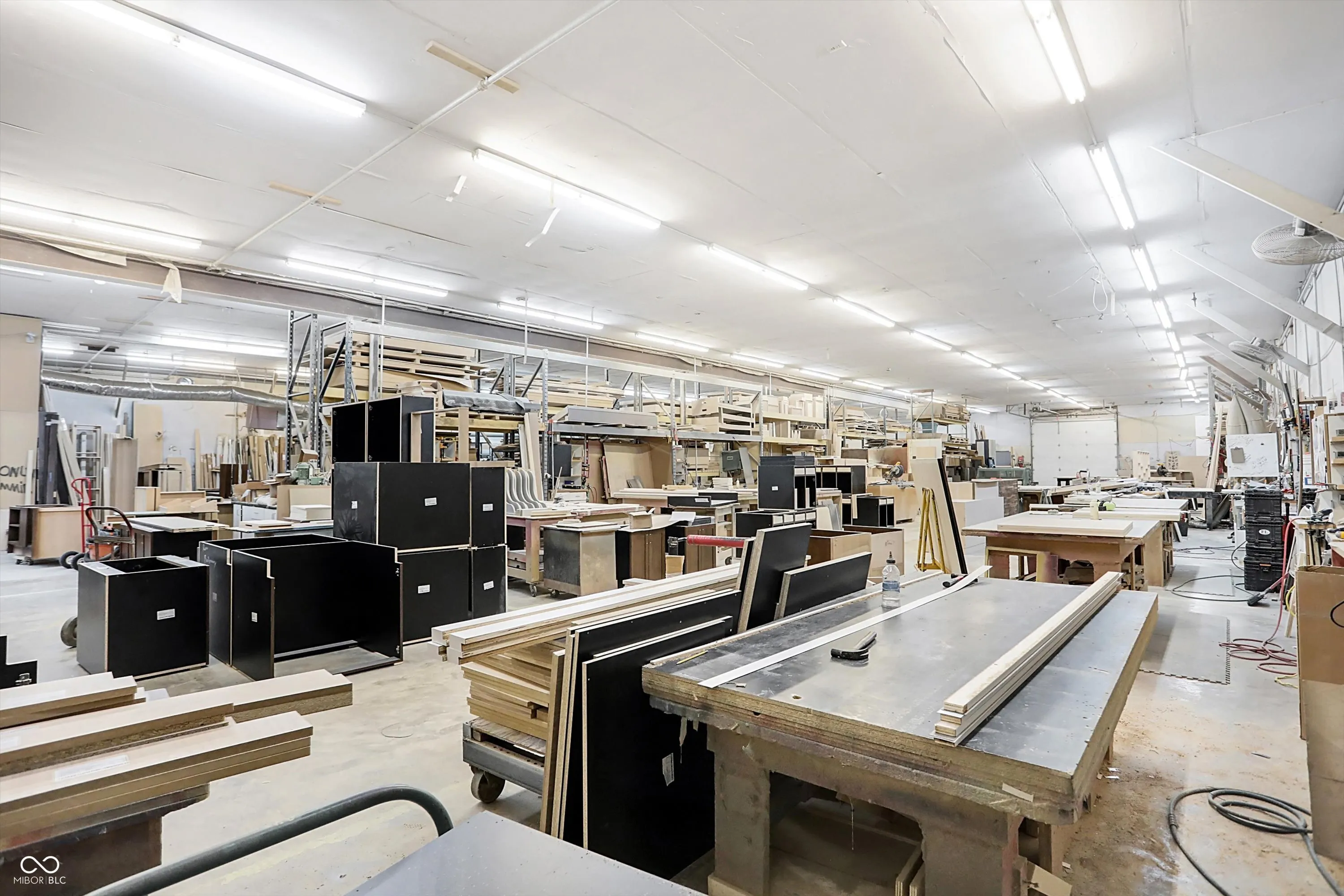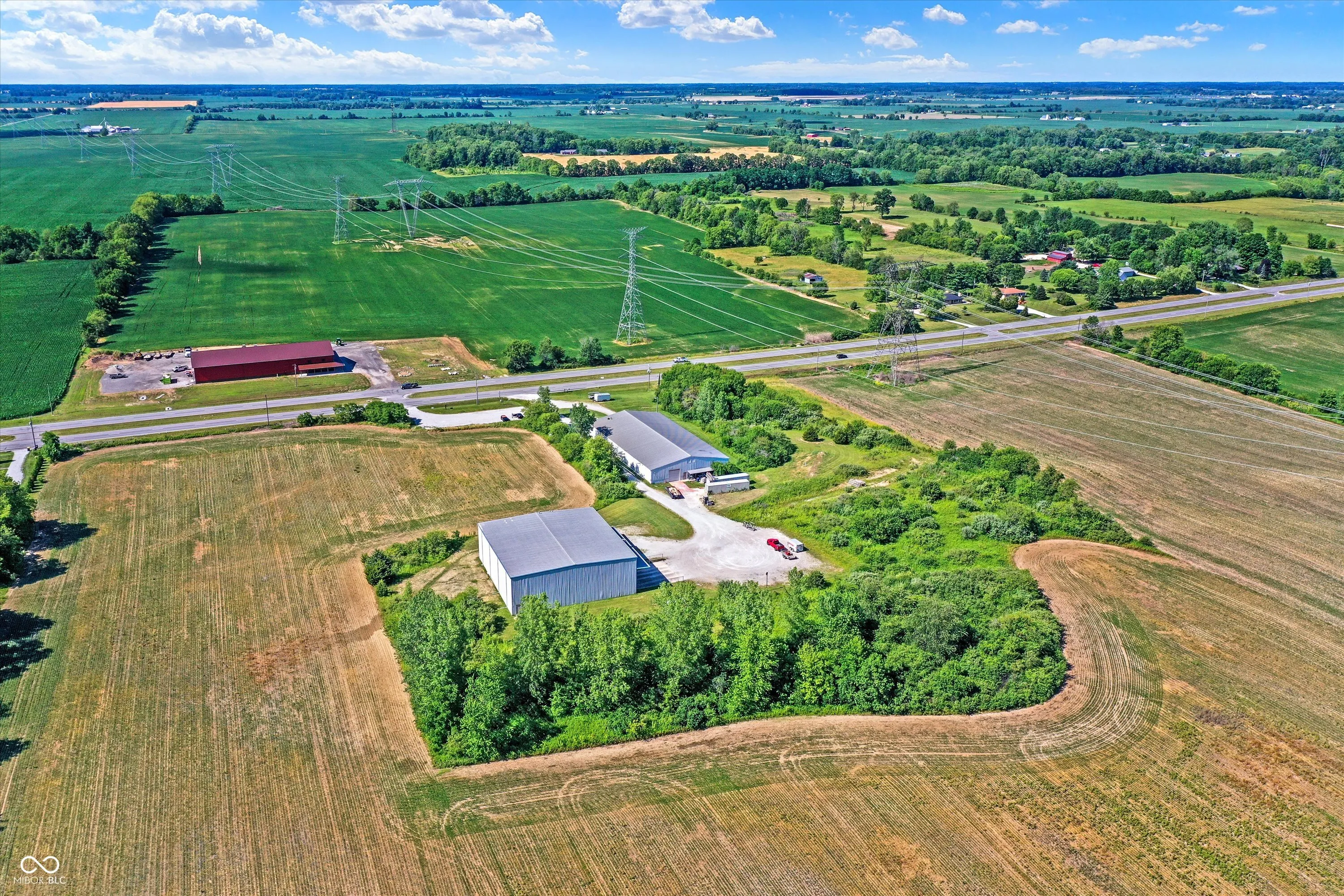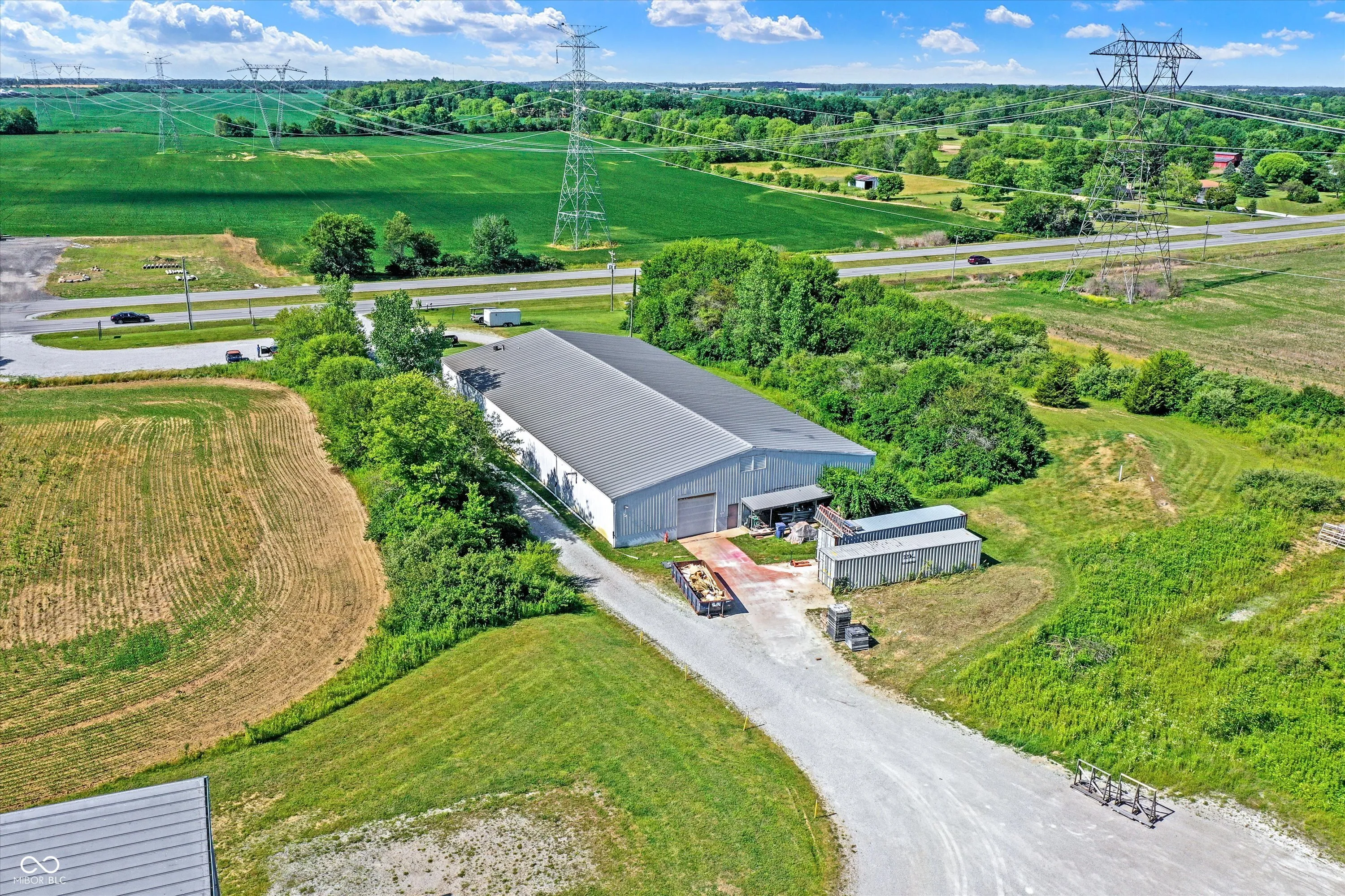 Steel building with loading dock & leveler, plus rear overhead door access. Present (cabinet company) and past use has been for manufacturing zoned “Industrial Light”. Small office area has gas forced air heat & central air, manufacturing area has gas space heaters. Has 12′ overhead door and 14′ ceiling height, center post support. Adjacent 16 acres can also be purchased for another owner. Driveway on west side of building has a permanent easement for use by adjacent property south.