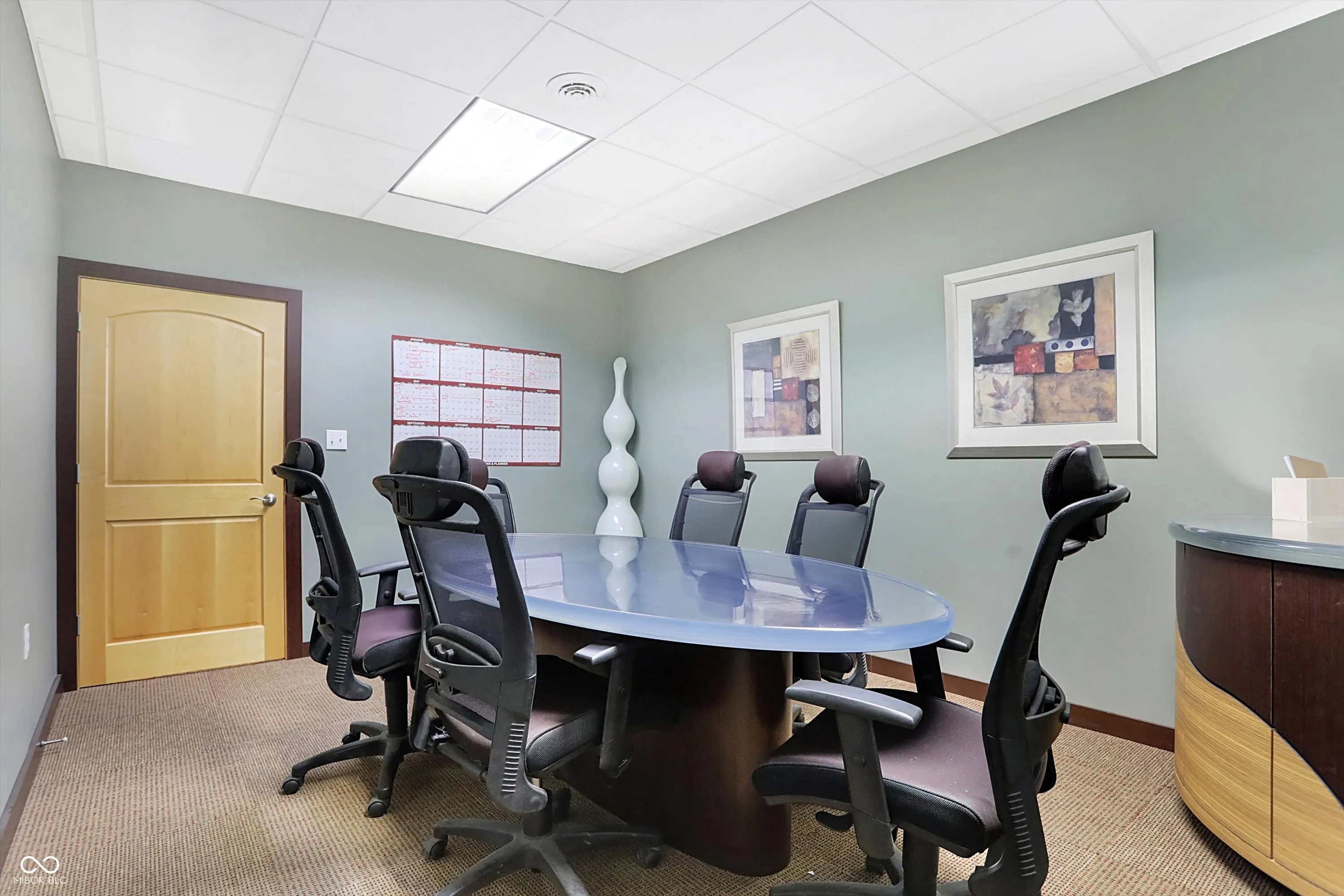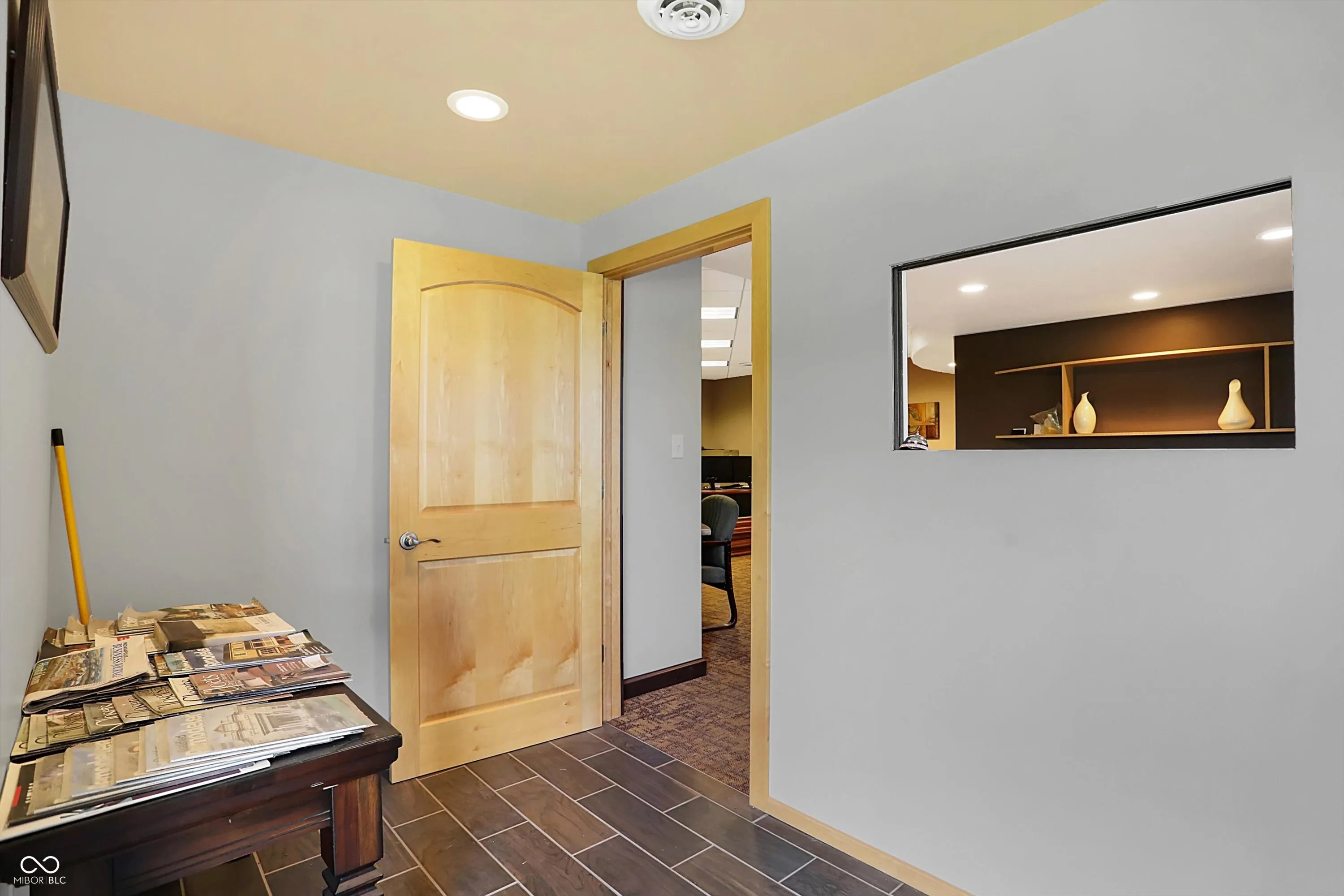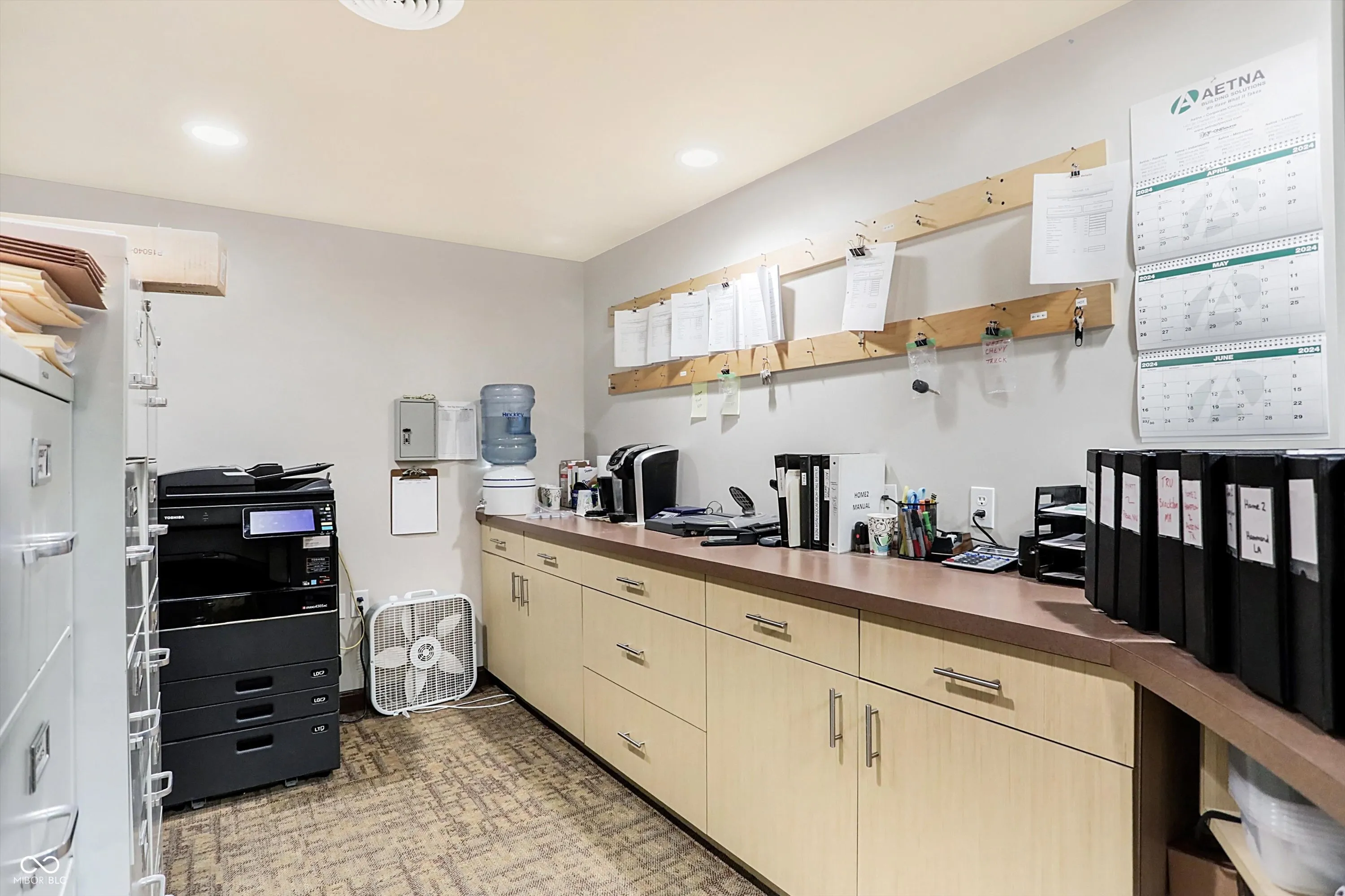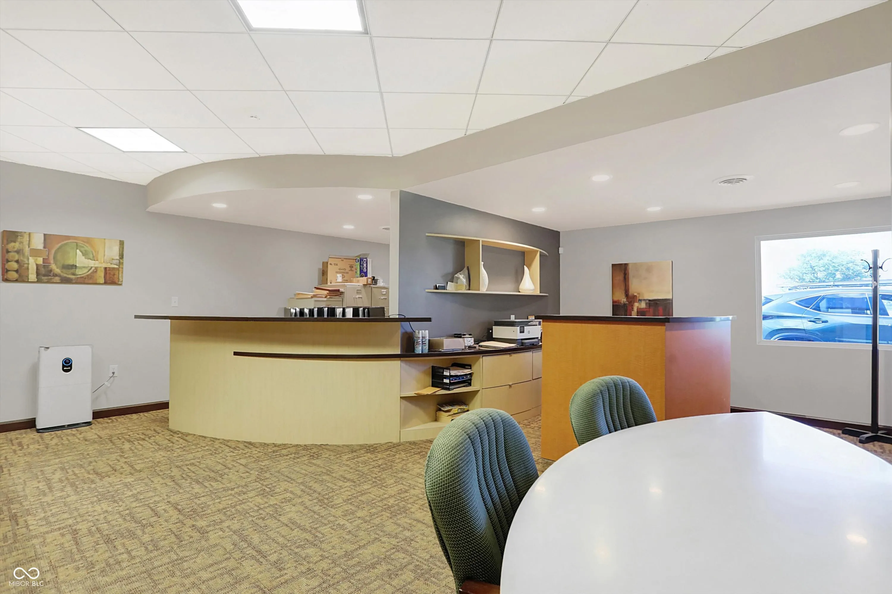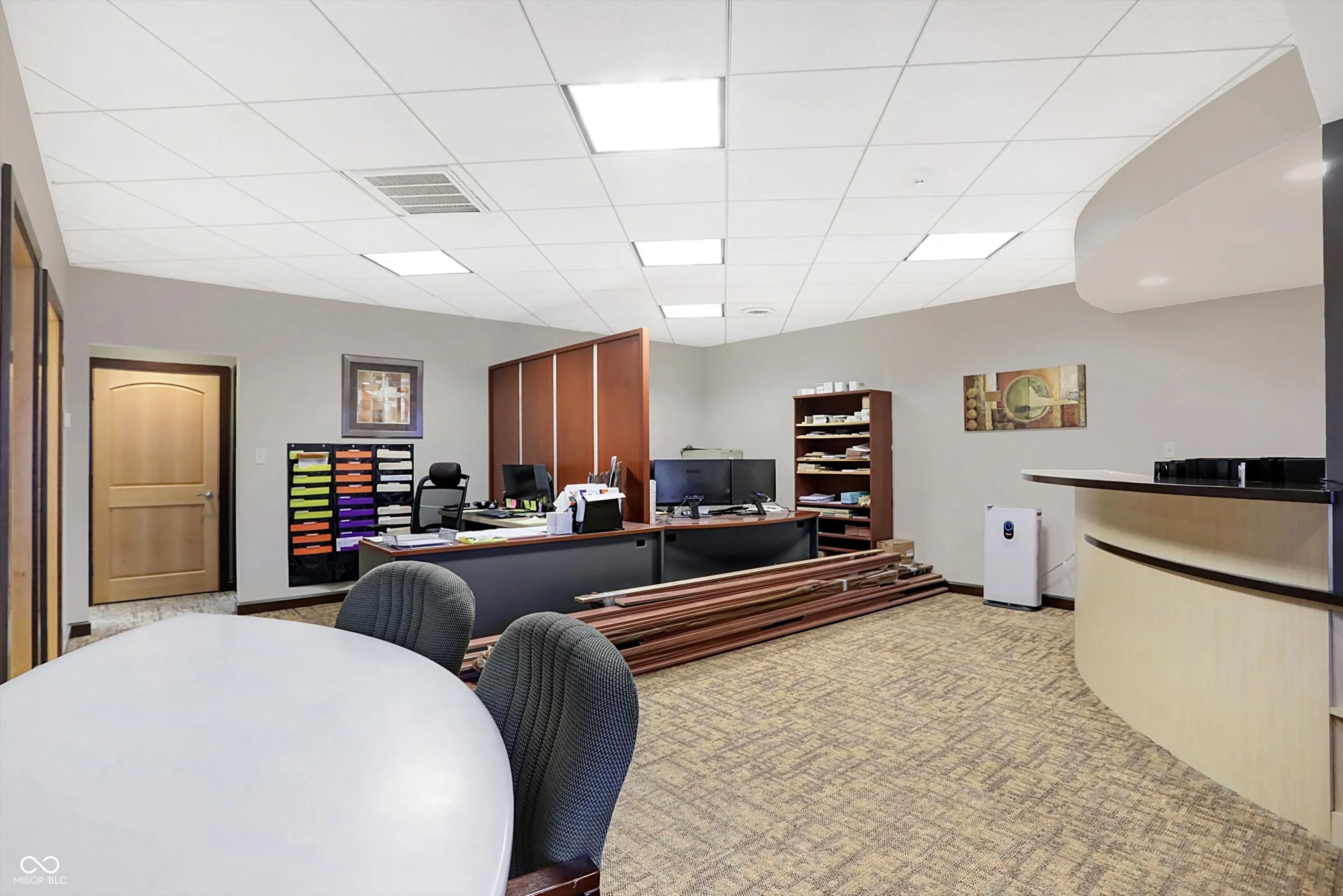 Steel building with loading dock & leveler, plus rear overhead door access. Present (cabinet company) and past use has been for manufacturing zoned “Industrial Light”. Small office area has gas forced air heat & central air, manufacturing area has gas space heaters. Has 12′ overhead door and 14′ ceiling height, center post support. Adjacent 16 acres can also be purchased for another owner. Driveway on west side of building has a permanent easement for use by adjacent property south.