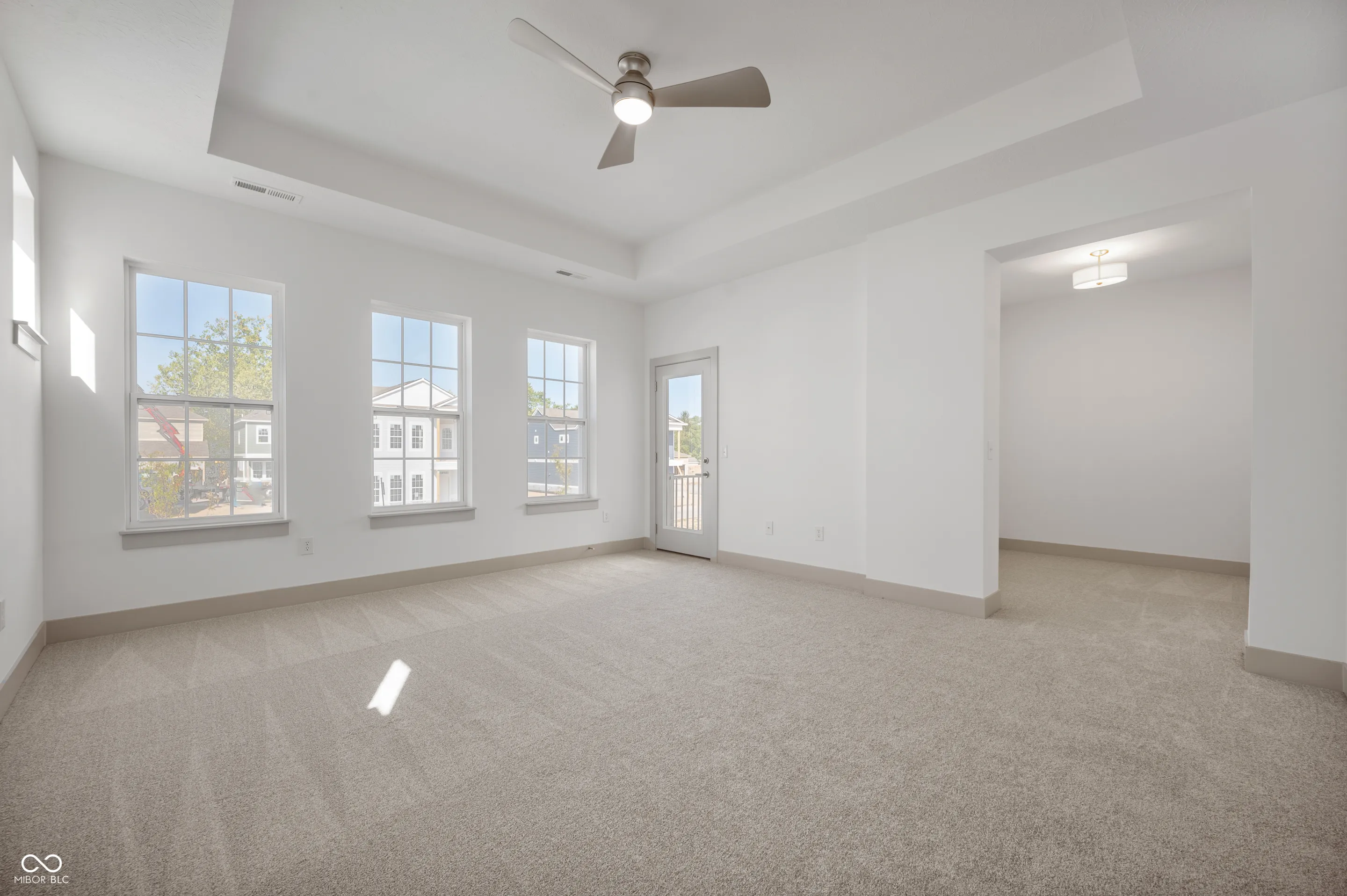 Beautiful large home! This spacious home plan will delight with 3 bedrooms, 2.5 baths and a two car 10′ ceiling finished garage with two remotes! Expansive main level with abundance of beutiful quartz counterspace throughout and a large quartz kitchen island to gather around with friends and family. This home features trendy kitchen cabinets, luxury laminate wood flooring, in main areas, stainless steel appliances with gas range, refreshing tiled walk in shower, spacious owner’s retreat with two walk in closets, den/office, balcony out of owner’s retreat and more! Our home feature 9′ and 10′ ceilings. Community pool and a pool house are our top amenities and you will be within walking distance to the Monon Trail, the Palladium, Farmer’s Market, gourmet restaurants, Arts and Design District, galleries and all other that Carmel downtown has to offer!