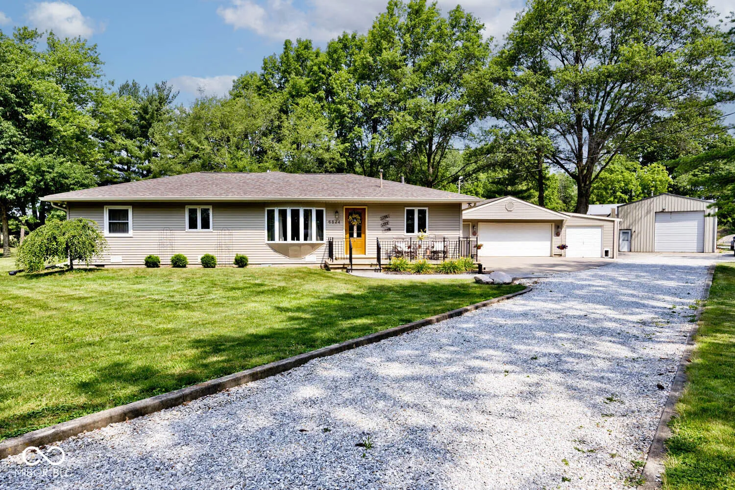Gorgeous Updated 2,281 SF Ranch on 2.381 Acres w/Oversized 3 Car Det. Garage w/Separate Storage Area (36’x12′) PLUS 2 Pole Barns w/Electricity/12′ & 10′ Doors/Concrete Flooring in New Palestine!!! Meticulous Inside & Out! Lg Front Porch w/Custom Concrete Welcomes Guests to your New Home! Kitchen has been Updated w/Lots of Maple Kline Cabinetry, Corian Countertop, SS Kitchen Appliances along w/Recessed Lighting Overlooks Spacious Great Rm w/Corner Gas Frplc! Updated Hall Bath w/Tub w/Air Feature & Shower! Large Bedrms! Primary Bedrm w/Updated Bath w/Shower! Huge 28’x22′ Bonus Rm w/Cathedral Ceiling & Full Wall of Windows Overlooking Screened Patio & Open Patio w/Pergola w/Cover & Firepit! Only Greenspace Behind You w/Mature Trees & Wooded Area in Rear! Roof-4 yrs old! Furnace/C/A & Water Heater-Approx. 6 yrs old! Septic Pumped-Approx. 2 yrs ago! Great Home for Entertaining or Just Enjoying Life!!! Then there’s 2 Separate Pole Barns for Equipment Storage or Workshops!! Lot is Shaped like a Flag so Please Do Not Enter onto Property unless You have An Appointment!