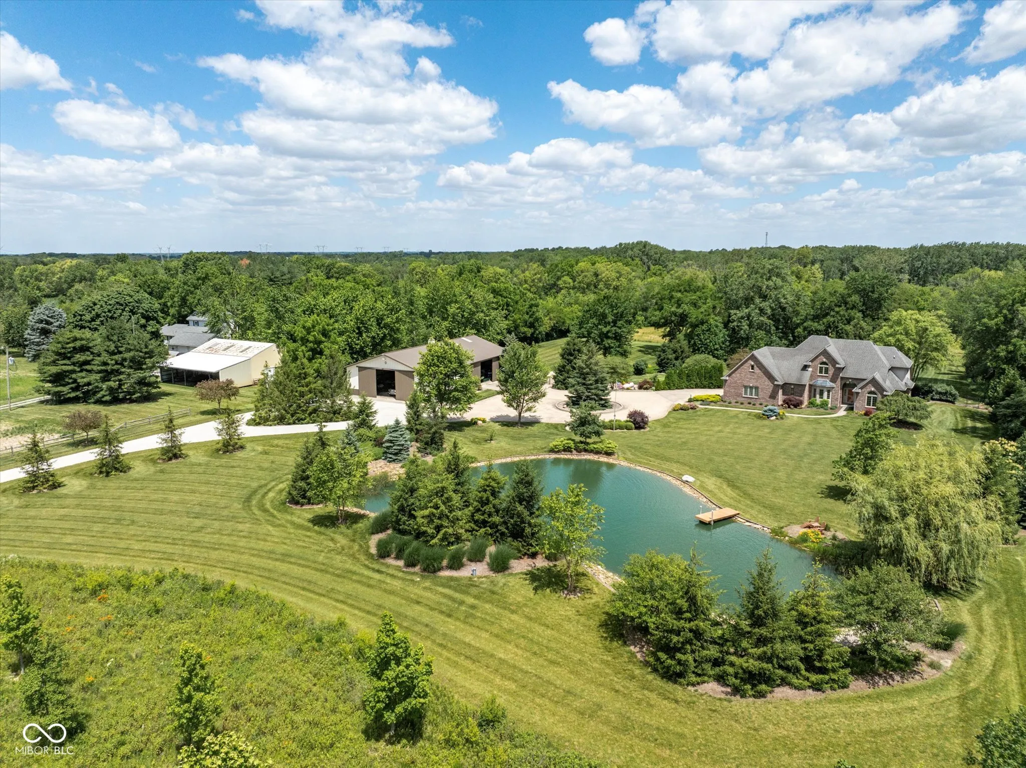 Nestled ~750 feet back off the road on an expansive property just shy of 13 acres, this estate is truly breathtaking. It features meticulously landscaped front and back yards, gardens, tons of added trees, dense backyard woods, open pastures, a stunning custom-built home, AND a massive 80×50 cement floored pole barn with 50-amp service, ~14+ foot barn doors, and conditioned office space. Upon driving down the driveway and entering the home, you’ll be greeted by an open and airy front foyer, vaulted ceilings in the great room, a cozy updated fireplace, and brand-new luxury vinyl plank floors. The primary bedroom suite is located on the main floor. The home offers 3 additional upstairs bedrooms, 3.5 baths, a fully finished basement with custom wood plank ceilings is ready for entertaining, and a basement bonus exercise room. Let your imagination run wild in the 26X15 unfinished second floor “bonus” room/attic space. The open-concept kitchen with Petrastone porcelain stone floors, granite center island and breakfast bar leads to a charming informal breakfast space. A separate more traditional formal dining room sets the stage for many memorable gatherings. The office provides a tranquil work setting with beautiful views of the property’s personal 1/4 of an acre pond with its own well, dock, and custom waterfall feature. Whether you are relaxing in the morning with a cup of coffee and/or unwind in the afternoon with a glass of wine the fabulously transformed four seasons sunroom with heated floors might end up being your favorite spot in the whole house. The paver patio with firepit and separate solid roof gazabo (with electric) allows you to sit outside and enjoy nature in every direction. HSE Schools plus private rural living while being 15 minutes from Hamilton Town Center and Downtown Noblesville and only 20 minutes from Fisher’s Market District is fantastic!!
