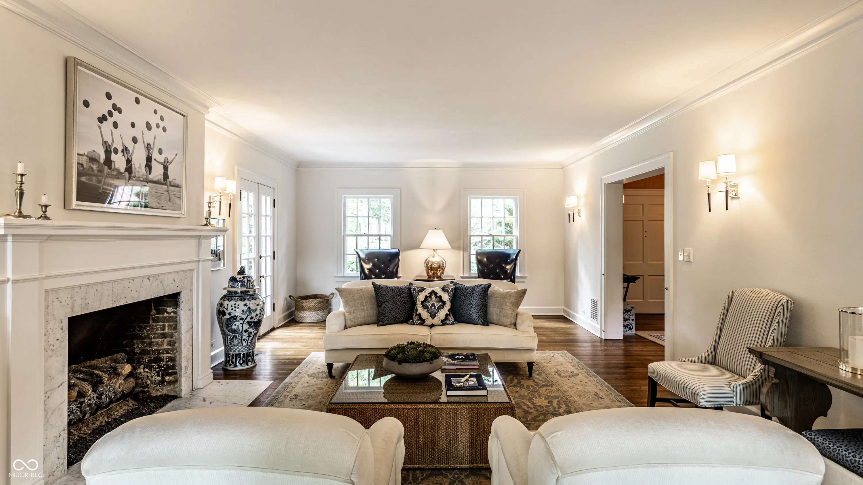 A neighborhood favorite could finally be yours! Owned by only 4 families in 60 years, this meticulously maintained 1930’s residence – once featured in a national commercial with Peyton Manning – has been reimagined for modern living. Recently renovated by the renowned builder Steve Hoss & architect Gary Nance with interiors professionally curated by the highly sought after Barclay Butera Interiors, no detail has been overlooked. Situated on a gated lot stunning landscaping surrounds the property, leading you along charming walkways to the inviting front entry porch. Imagine evenings spent on the expansive 700 sq. ft. covered patio, or cozy nights by one of three Carrara marble fireplaces. Step inside to soaring 9-foot ceilings adorned with Ralph Lauren lighting and Rocky Mountain hardware. Hardwood floors flow throughout past original woodwork and custom built-ins. A chef’s dream kitchen awaits with Sub-Zero and Wolf appliances, honed soapstone countertops, and a wet bar for seamless entertaining. Unwind in the luxurious primary suite featuring a private setting area with French doors, vaulted ceilings with a fireplace, coffee/wet bar, and a walk-in closet fit for royalty. A must-see primary bathroom boasts Carrara marble, Rohl fixtures & cast-iron tub. The outdoor oasis is perfect for entertaining & parties with two distinct entertaining areas. One features a built-in fireplace, TV, and Lynx grill, perfect for alfresco gatherings. The custom treehouse, barn, and garden in the backyard enhance the charm! This prime location just blocks from shops, cafes, and dining is a rare opportunity.