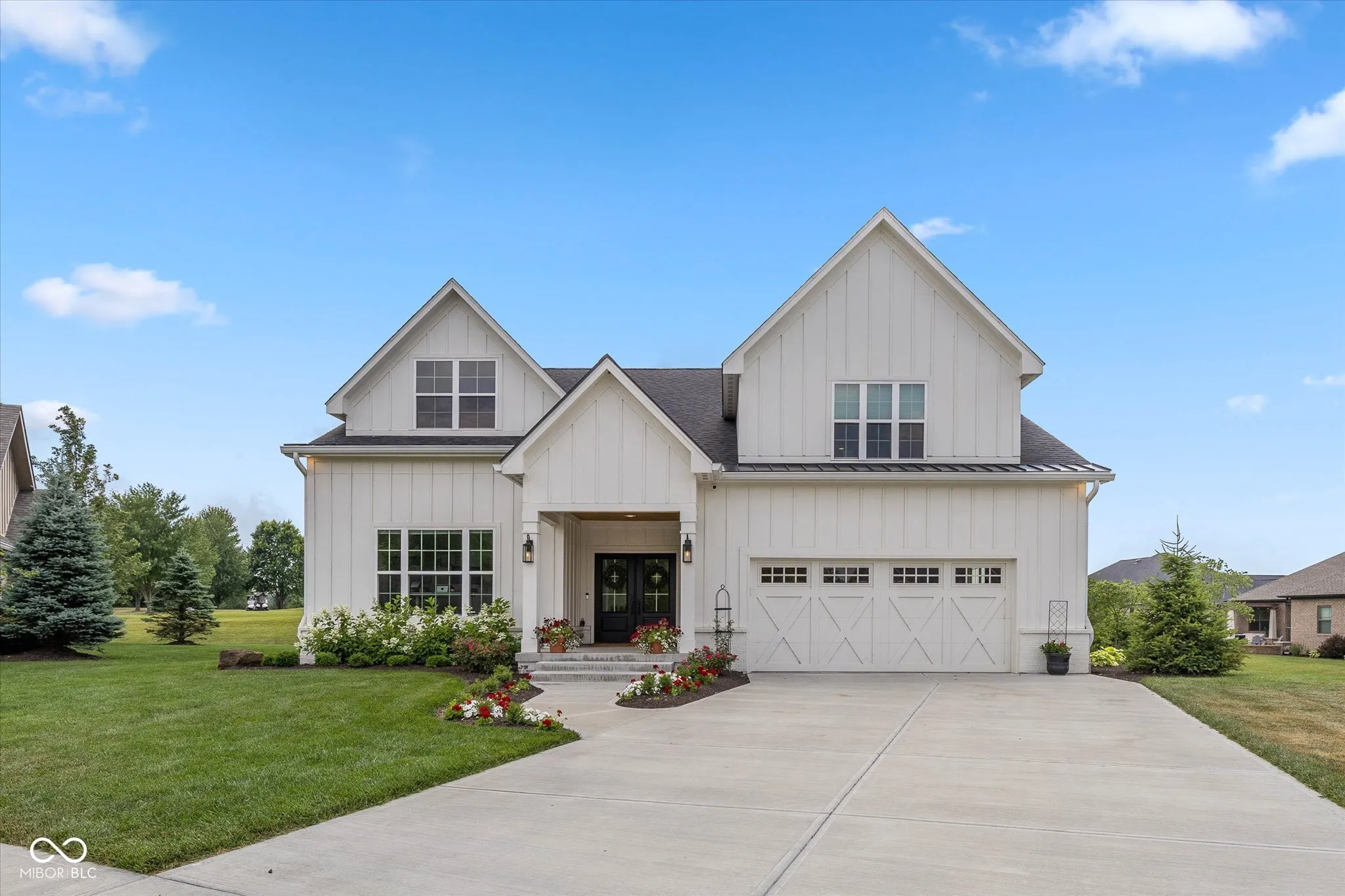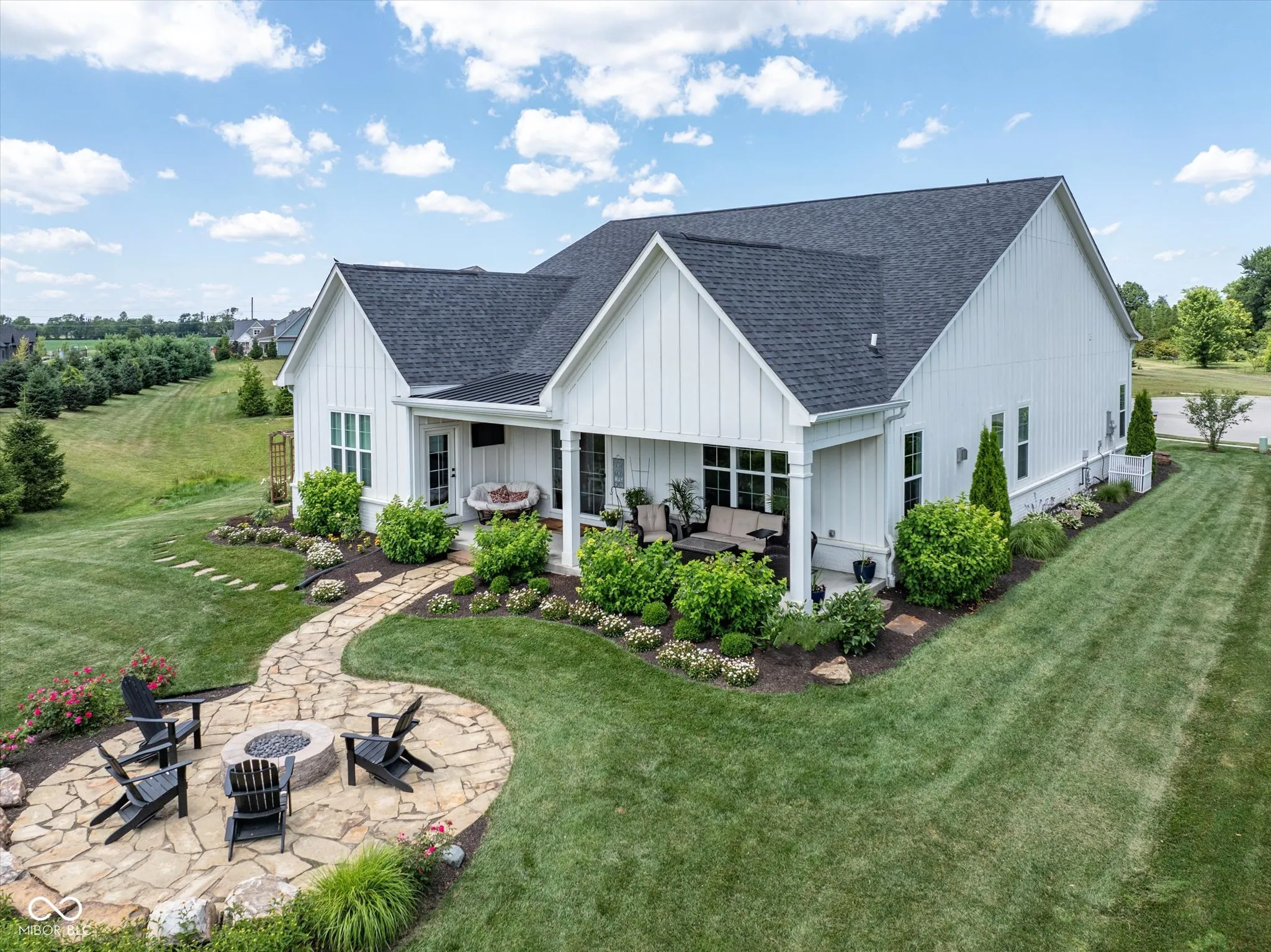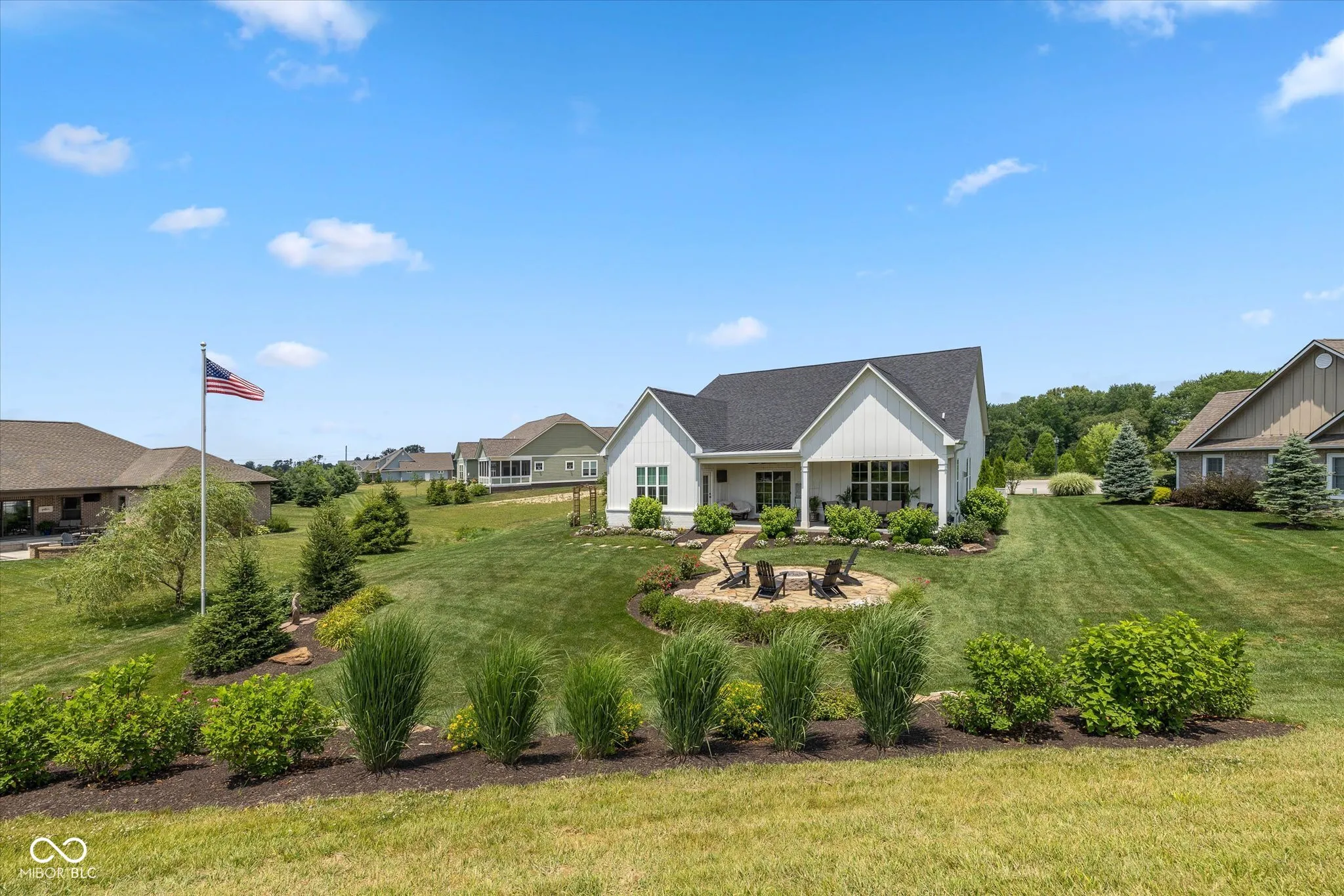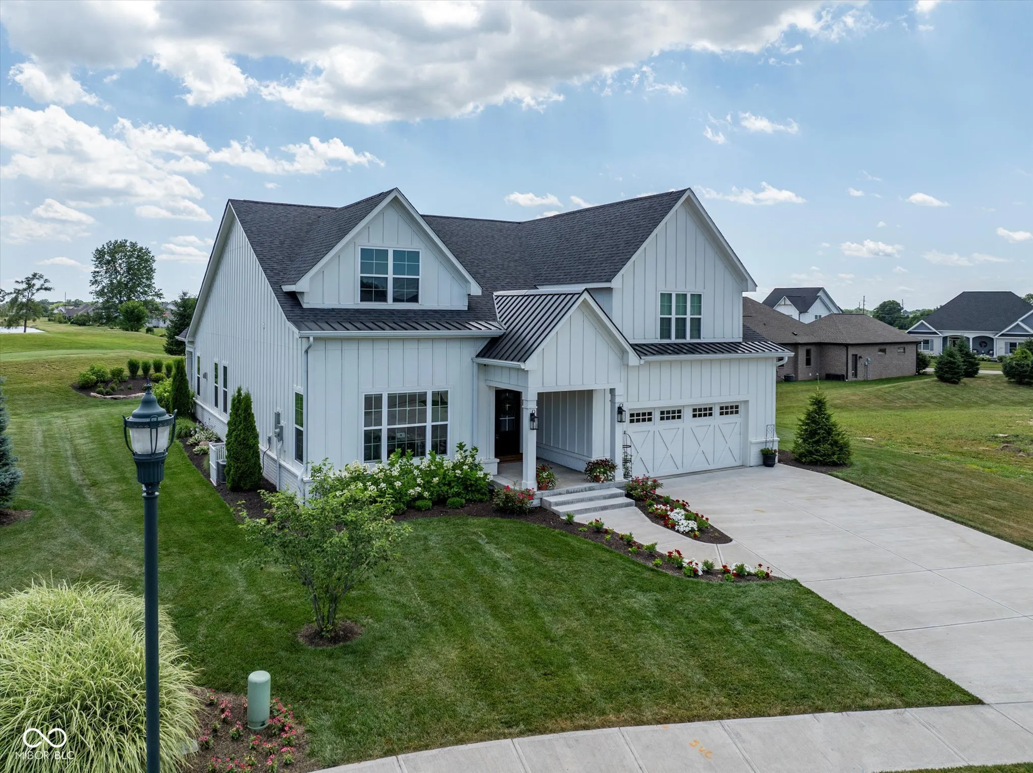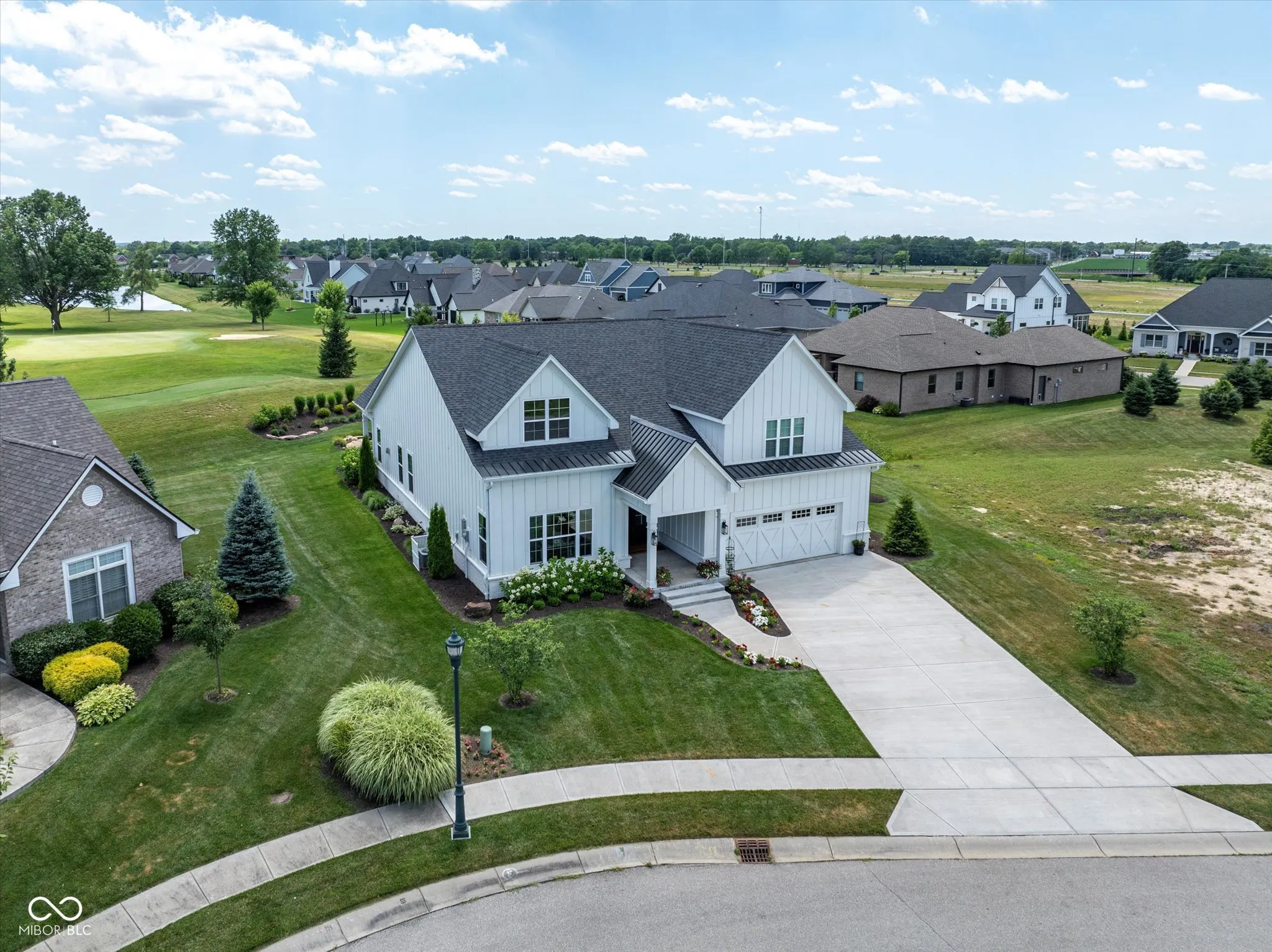 Modern Farmhouse on The 11th hole of the Hillview Golf Course! Nestled in a cul-de-sac, this custom home w/tons of landscaping has much to offer. Large entry w/9′ ceilings, recessed lights & Engineered Hardwood flooring invite you into this spacious living area. Custom kitchen w/Quartz counters, SS farm sink, Cabinets w/soft close drawers & doors & tons of pull-outs. Zline 6-burner gas range w/exhausted hood & Blt-in double oven add to the highlights along with the Walk-in Pantry & Pot filler at your coffee center w/Bev. Refrigerator. Kitchen is open to the large Living area w/Ship-lap wall accenting the slate brick fireplace & wood beam mantle. Windows line back of the house filling the living/kitchen/dining area w/tons of natural light & looks out to the large 33×9 covered back porch area w/cedar plank ceiling. Primary Bedroom W/trayed ceiling & private door to back porch & lots of windows as well. Primary bath has 9′ vanity w/Double sinks & lots of drawers, Tiled Walk-in shower & custom organized walk-in closet. Bedroom 2 & 3 BOTH have walk-in closets & their OWN full bathrooms as well! Loft has 1/2 bath & closet & is setup to be a 4th bedroom or a movie theater space w/the 120″ motorized screen that drops from the ceiling to be used with the included projector & sound system. Walk-in Attic could be finished for Bdrm. Garage has back bump for A golf cart w/electric charger station. Enjoy view of the golf course from your covered porch. Stone walk-way leads from covered porch to custom stone gas fireplace to enjoy the dark starry nights. HOA fee includes water for irrigation system, lawn cutting, bush trimming and front area mulching. Amazing views of Hillview Golf & Country Club which is one of the most affordable private clubs in central Indiana. Membership gives you access to golf, swimming pool, pickle ball courts, short game & practice range along with enjoying food at Lou’s Den or Big Woods. All just a couple minute walk/golf cart drive from your back yard.