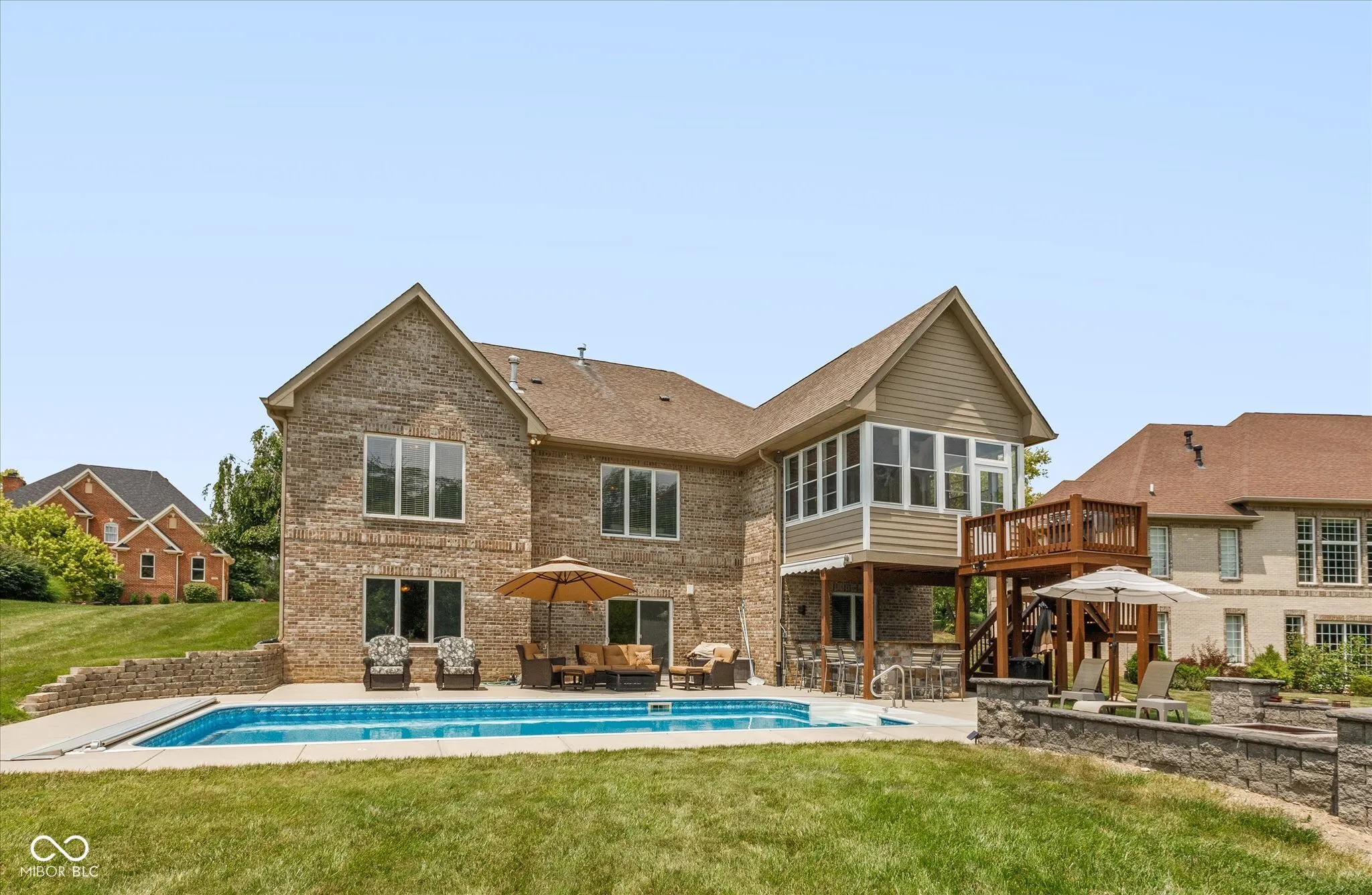 Welcome to your luxurious retreat, masterfully crafted by renowned builder Executive Homes. This exquisite property offers an unparalleled living experience, combining elegant design with state-of-the-art amenities. Step outside to your personal oasis featuring a 16×32 heated “sport” pool with an automatic cover, perfect for leisurely swims or active play. The poolside is complemented by a cozy fire pit and a fully equipped outdoor kitchen, ideal for alfresco dining and entertaining. The backyard is a haven of tranquility, bordered by a lush tree line and a picturesque creek, providing serene views and privacy. Enjoy the beauty of nature from your 3-season room overlooking the pool, offering a perfect blend of indoor and outdoor living. Car enthusiasts and hobbyists will appreciate the oversized, heated 3-car garage, complete with a workshop area for all your projects. Inside, the home continues to impress with a fully finished basement designed for ultimate recreation and relaxation. The basement boasts a separate kitchen, a theater room for movie nights, two bedrooms, and a huge family room perfect for gatherings and celebrations. The main living areas exude quality and style, reflecting the craftsmanship and attention to detail synonymous with Executive Homes. From the gourmet kitchen to the spacious bedrooms and luxurious bathrooms, every aspect of this home has been thoughtfully designed to cater to your lifestyle. This home is not just a place to live but a sanctuary where every day feels like a vacation. Experience the perfect blend of elegance, comfort, and convenience in this exceptional property. Welcome home to a life of luxury and serenity. Roof, gutters and pool cover are brand new!