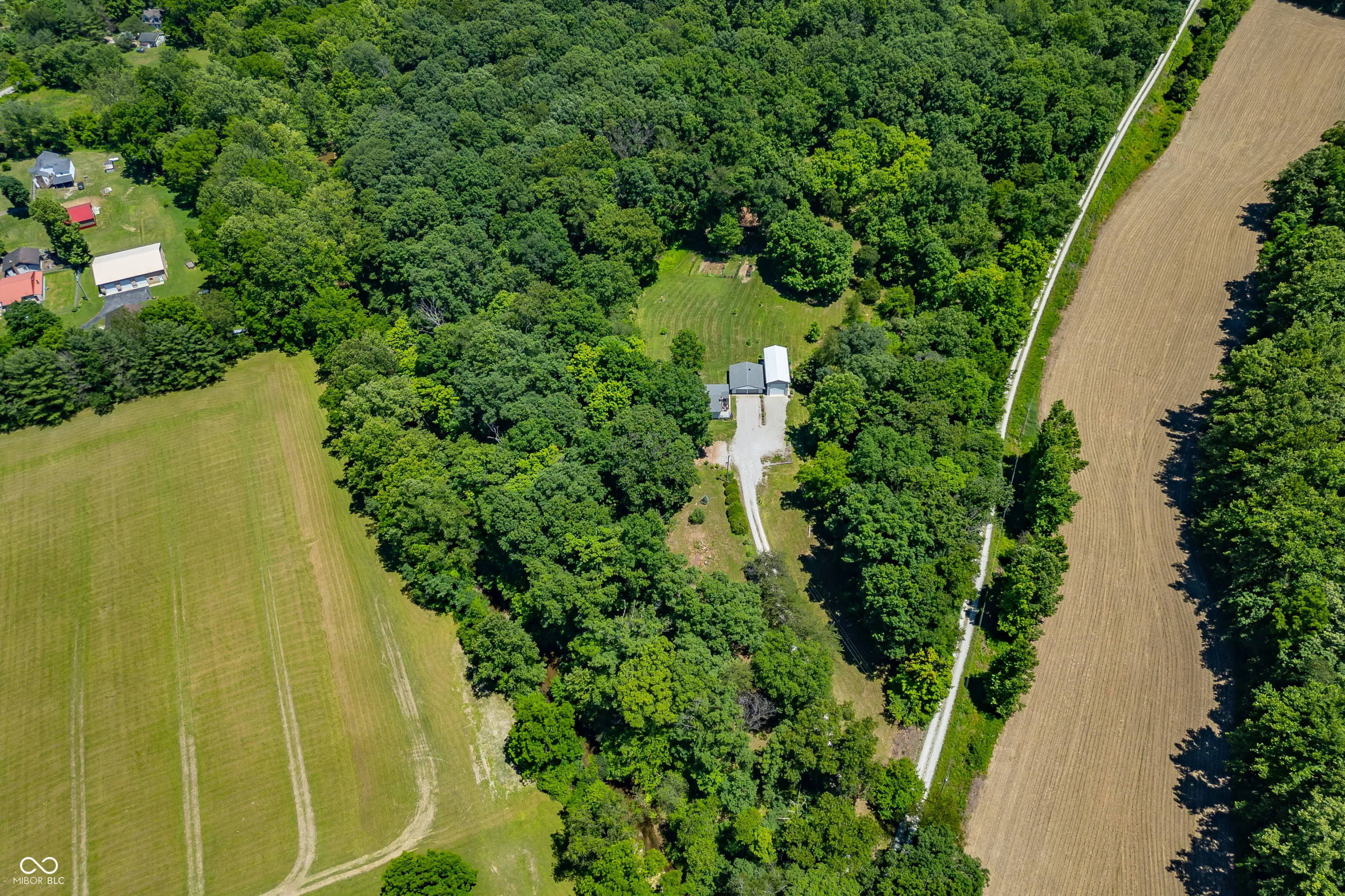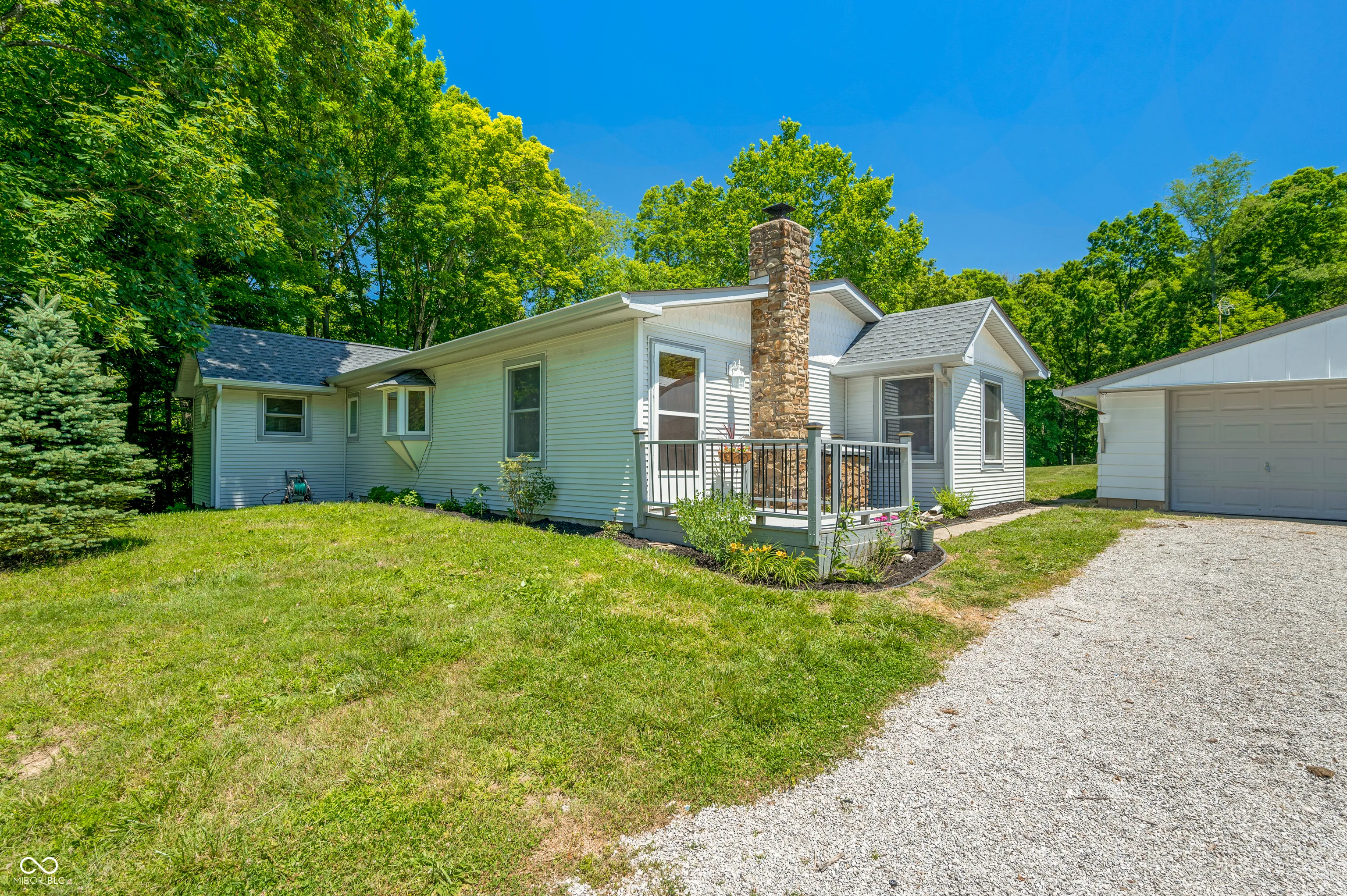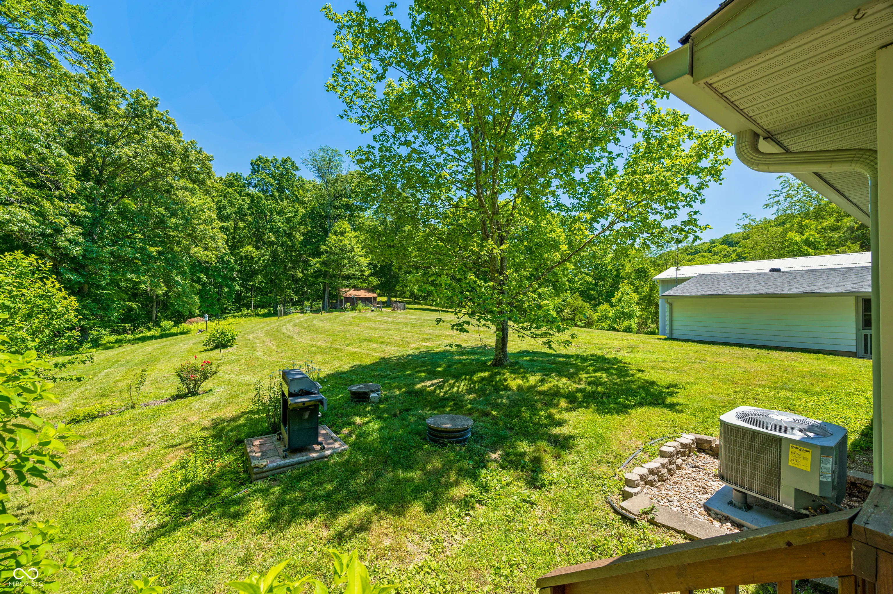 Escape the ordinary and discover your own private paradise just outside the heart of Nashville, Indiana! This idyllic 5.5-acre property offers the perfect blend of peaceful country living and convenient access to town. The charming 2-bedroom, 1-bathroom home provides a comfortable haven, complete with a cozy wood stove for chilly nights. Relax on the freshly stained deck overlooking your land, knowing you have a whole-home chlorination system for fresh, clean water. The fenced garden and established fruit trees, featuring cherry plum and apple varieties, promise bountiful harvests, while the barn and large pole barn offer ample space for animals, equipment, or pursuing hobbies. High-speed fiber internet keeps you connected, the freshly graded driveway ensures easy access, the roof is only three years old and the HVAC is less than a year old. Plus, the convenience of a washer and dryer, less than 6 months old, makes this move-in-ready retreat even more appealing. This secluded property boasts complete privacy, yet allows you to enjoy the convenience of nearby amenities. Don’t miss this incredible opportunity to create a self-sufficient lifestyle or simply enjoy the serenity of nature. Sellers are very motivated!