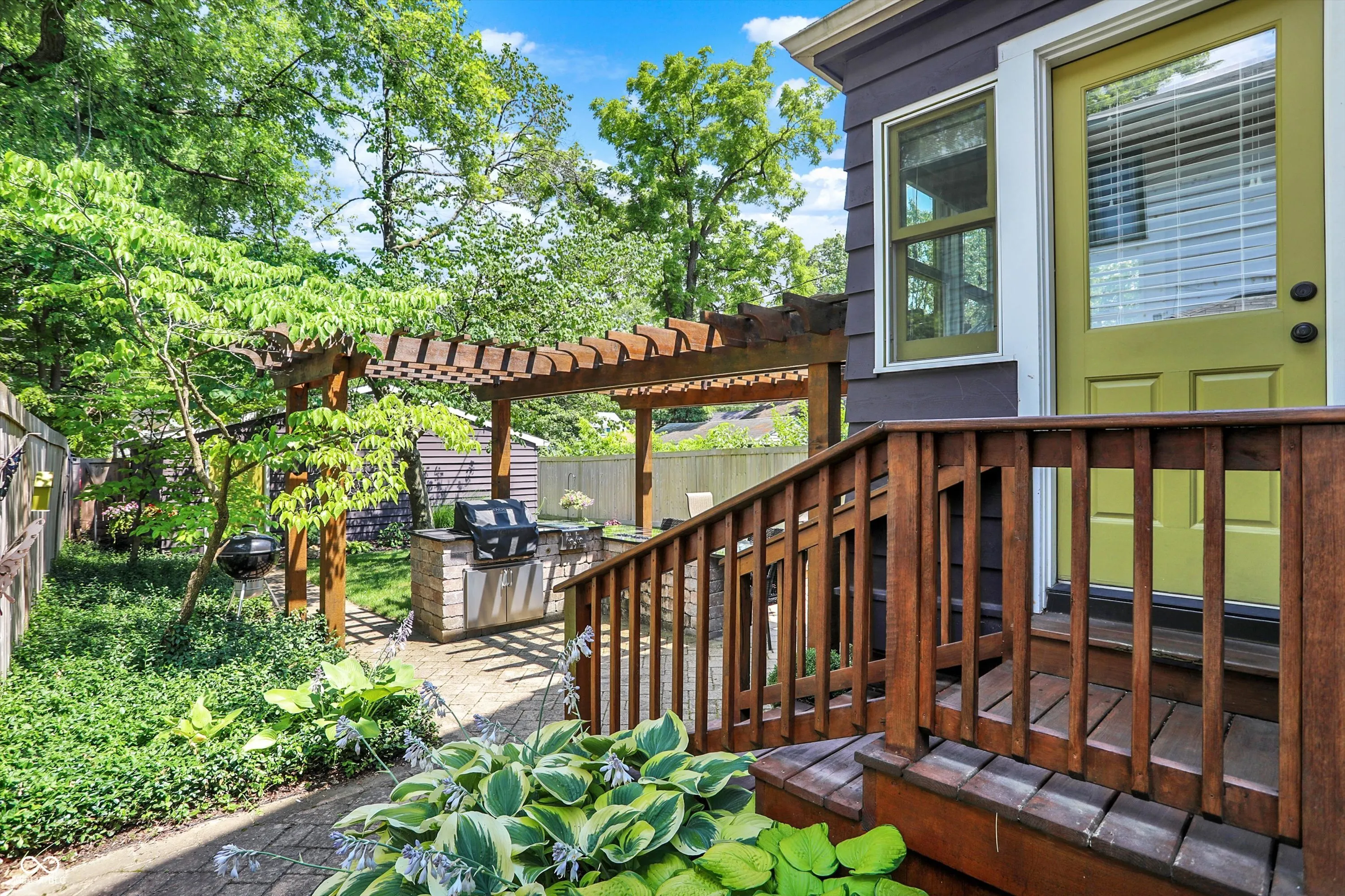 Welcome to 333 North Layman Avenue, an updated 3-bedroom home with the perfect blend of style and comfort located in the heart of Irvington! As you step inside, you’ll be greeted by a warm and inviting living space with built-in custom cabinets and wood burning fireplace. Off of the living room you will find a dining room with original wood pocket doors. This home features a beautiful updated kitchen with Amish crafted cabinets, unique glass tile, ocean black soapstone countertops and black stainless steel appliances, creating a stylish and functional space for cooking and entertaining. Additionally, the recessed lighting and induction cooktop add a modern touch. The charming wood-grain butcher block mosaic floors, infuse this space with warmth and character, giving the finishing touch on a stunning kitchen. The primary bedroom has two walk-in closets, providing ample storage for all of your wardrobe essentials. Two additional bedrooms offer the flexibility of a home office or guest accommodations. One of the many highlights of this home is the finished attic, featuring rustic charming wood floors and a convenient half bath. The outdoor space of this property is truly exceptional, offering an enticing combination of amenities for outdoor living. The inclusion of an outdoor kitchen, natural gas fire table, paver patio, pergola, and an additional fire pit with a seating area, all surrounded by beautiful landscaping, creates the perfect setting for relaxation and entertainment. Just minutes from downtown Indianapolis, this home offers easy access to all the city has to offer while providing a peaceful retreat to come home to. Schedule your showing today!