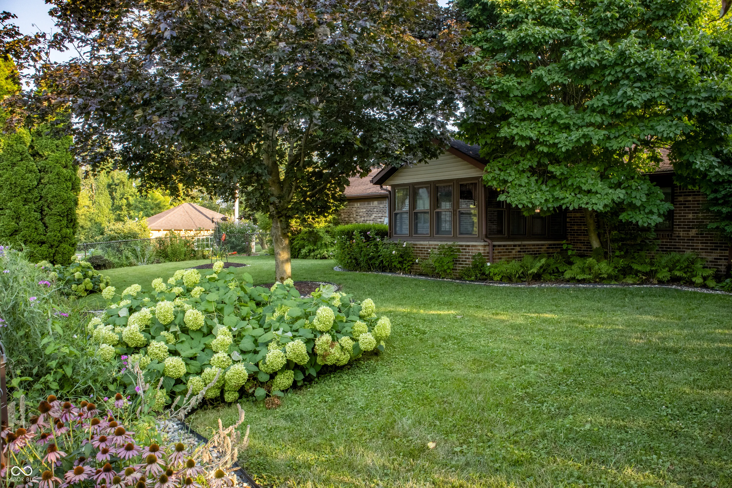 Quality 3 bedroom 2.5 bath Brick Ranch offering multiple garages; 2 car attached garage with extra storage and 1/2 bath, and a 2 car detached block garage. Wonderful sunroom overlooking the fully fenced back yard with beautiful landscaping. Primary Bedroom w/walk in closet and bath. Kitchen /Dining combination with breakfast bar. Separate Living room to offer some separation and privacy. Dual heating systems with electric base boards and forced air electric furnace and central air. Guards on the gutters allow maintenance free living. Peaceful small town living and off of the beaten path but Close access to I74! Do not miss this solid quality home!