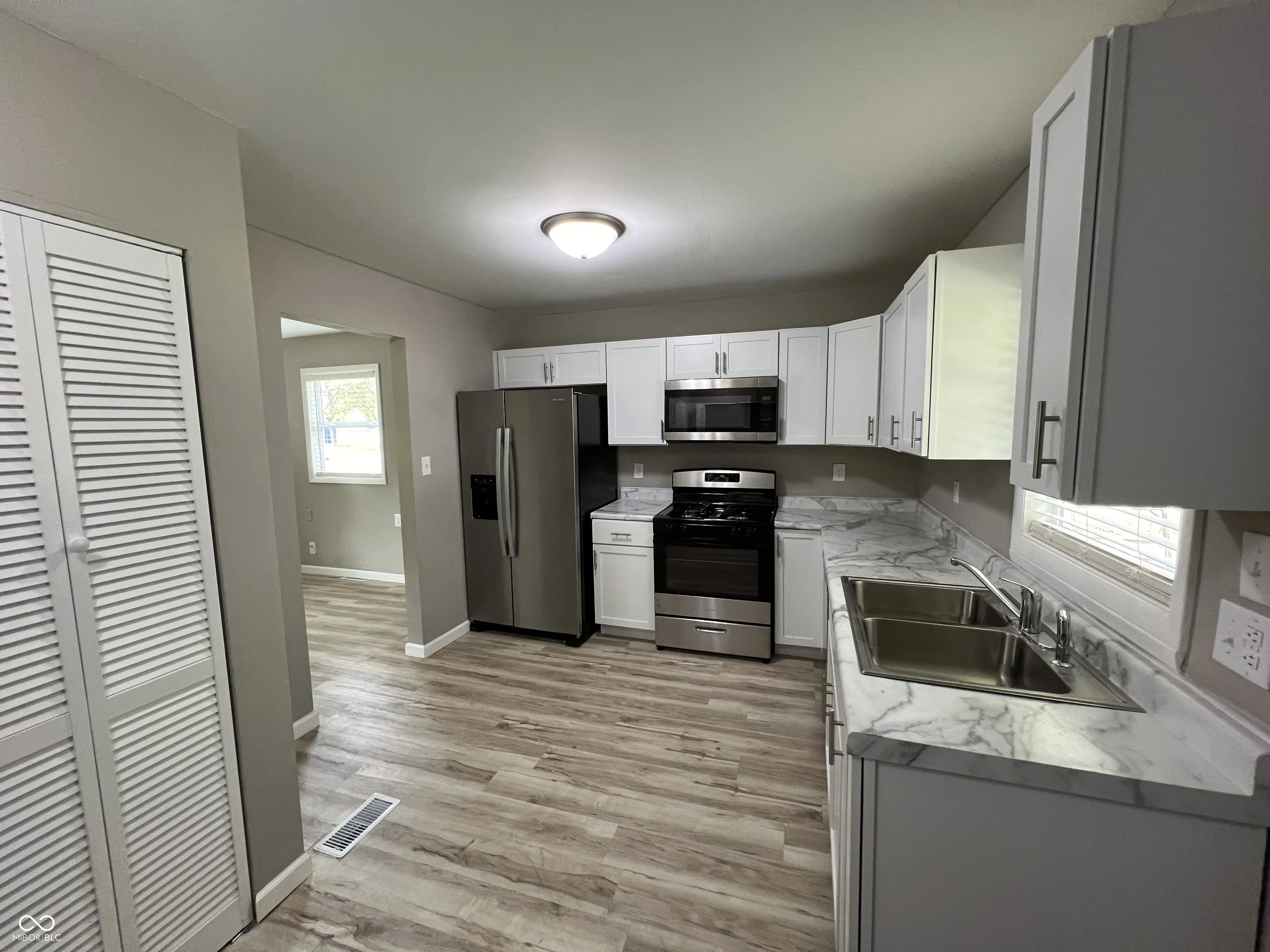 One-of-a-kind fully renovated ranch home in close proximity to the west 86th Street shopping corridor and downtown Indianapolis! Washington Township School System! The exterior features a brand new architectural shingle roof, new gutters, air conditioning system, exterior paint, front entry steps and rail, crawl space vents and vapor barrier and rear deck landing! New Luxury Vinyl Plank flooring in kitchen, dining room, great room, hallway and bathroom! New carpeting in all bedrooms! New 2″ white cordless Faux wood window blinds throughout! New interior and exterior doors and door hardware throughout! New interior trim throughout! New floor registers throughout! New interior and exterior light fixtures throughout with LED bulbs! New white electrical outlets and outlet cover plates and new white electrical switches and switch plates throughout! The kitchen has brand new white cabinets, counter tops, stainless steel sink, faucet, garbage disposal, doors, stainless steel refrigerator, dishwasher, gas range, and built-in microwave! New washer and dryer! The bathroom is all new with a new sink vanity, countertop, faucet, tub, tub surround, tub and shower faucets, and toilet! New in-line water filtration system! Five new smoke detectors and a new carbon monoxide detector! The gas furnace is only two years old! 1/4 Acre home site with a huge rear yard! This is an incredible value and a must see home!
